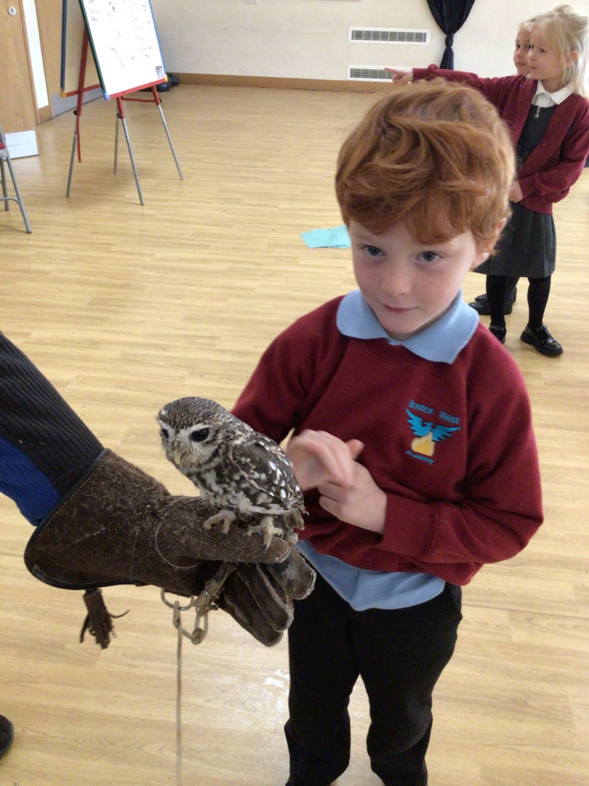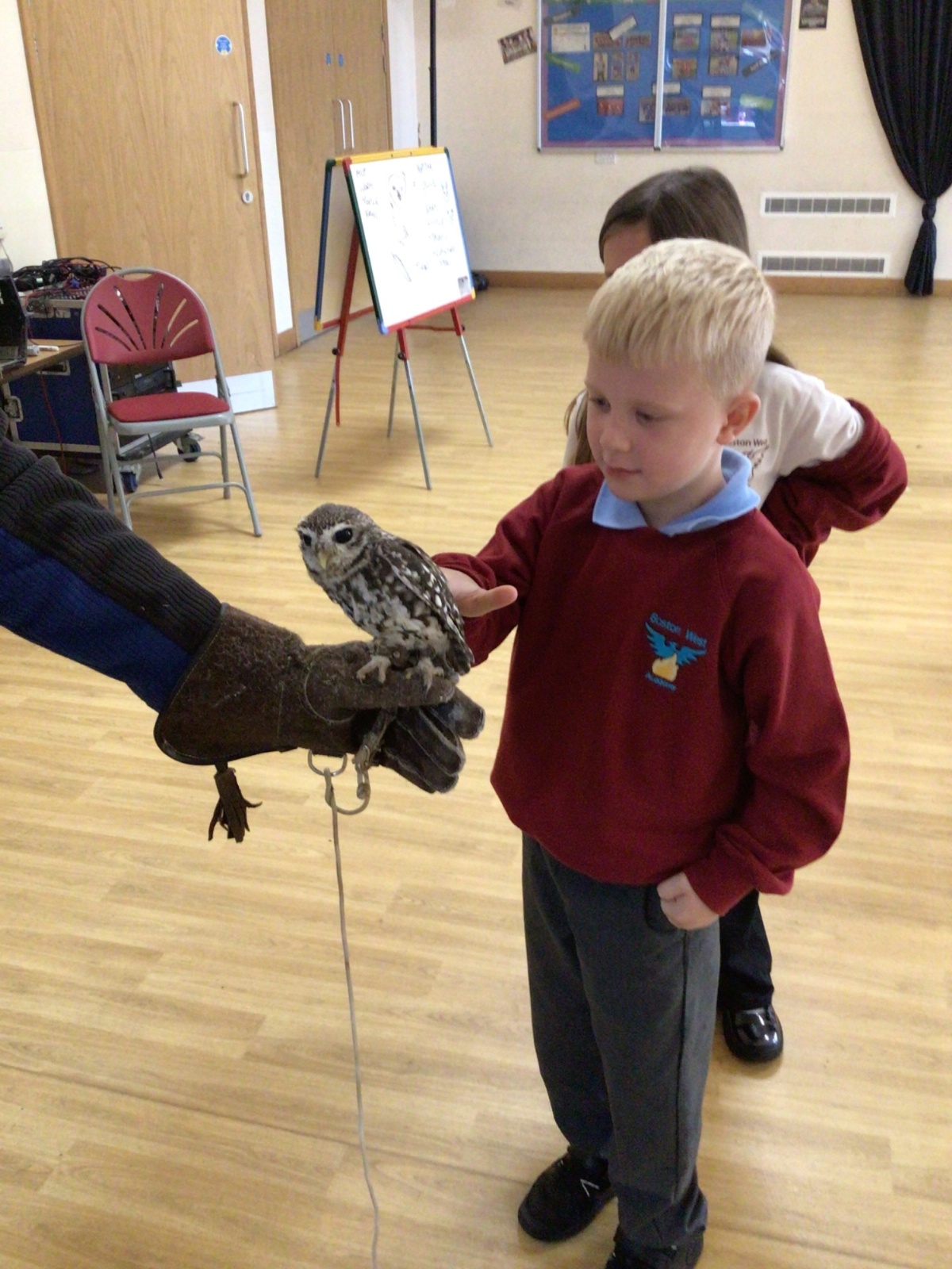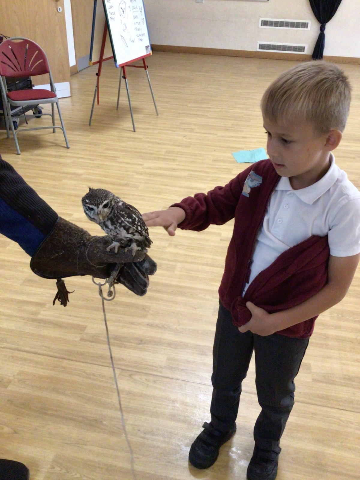 As part of our science learning today, we had a visitor come in to tell us about owls. We even got to see two owls.