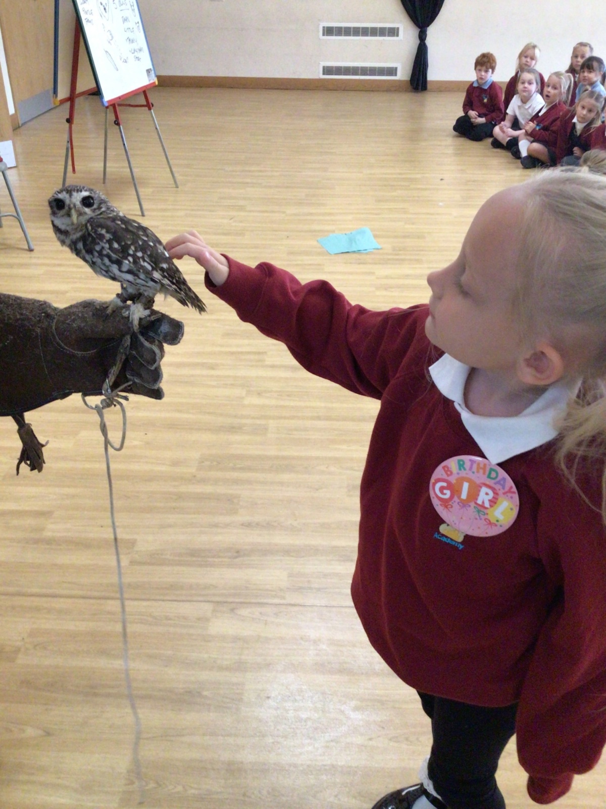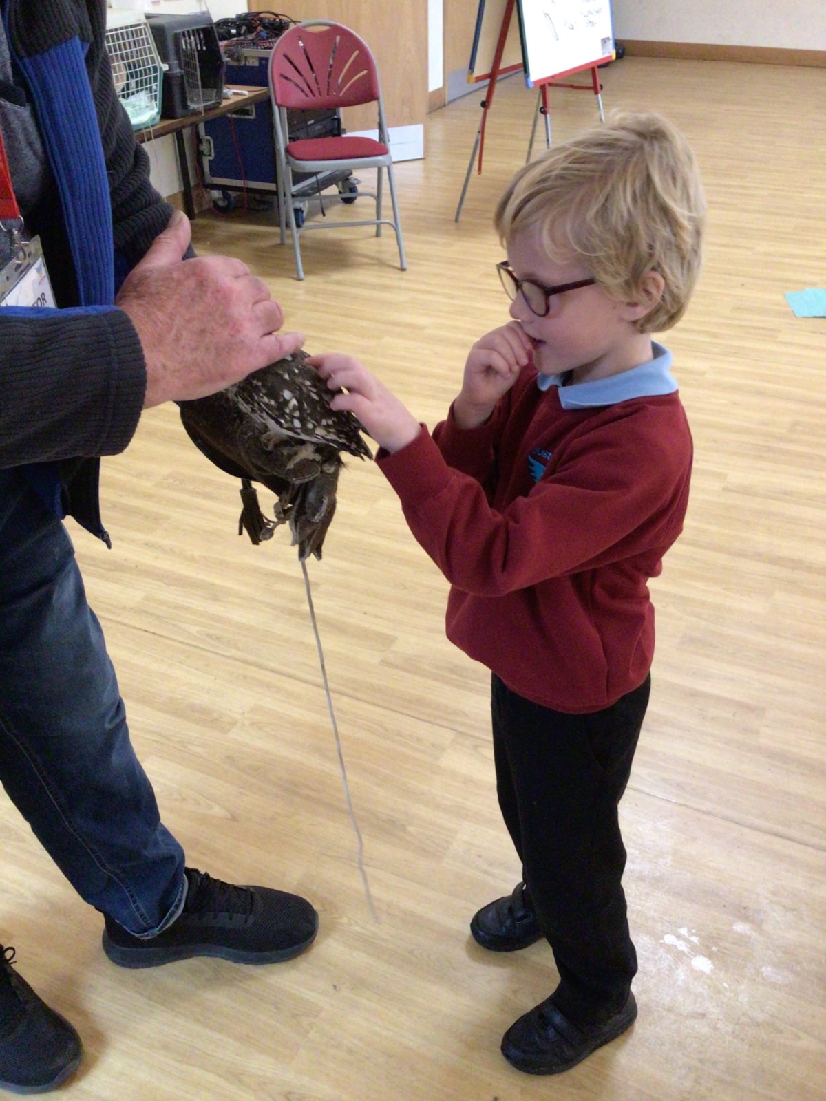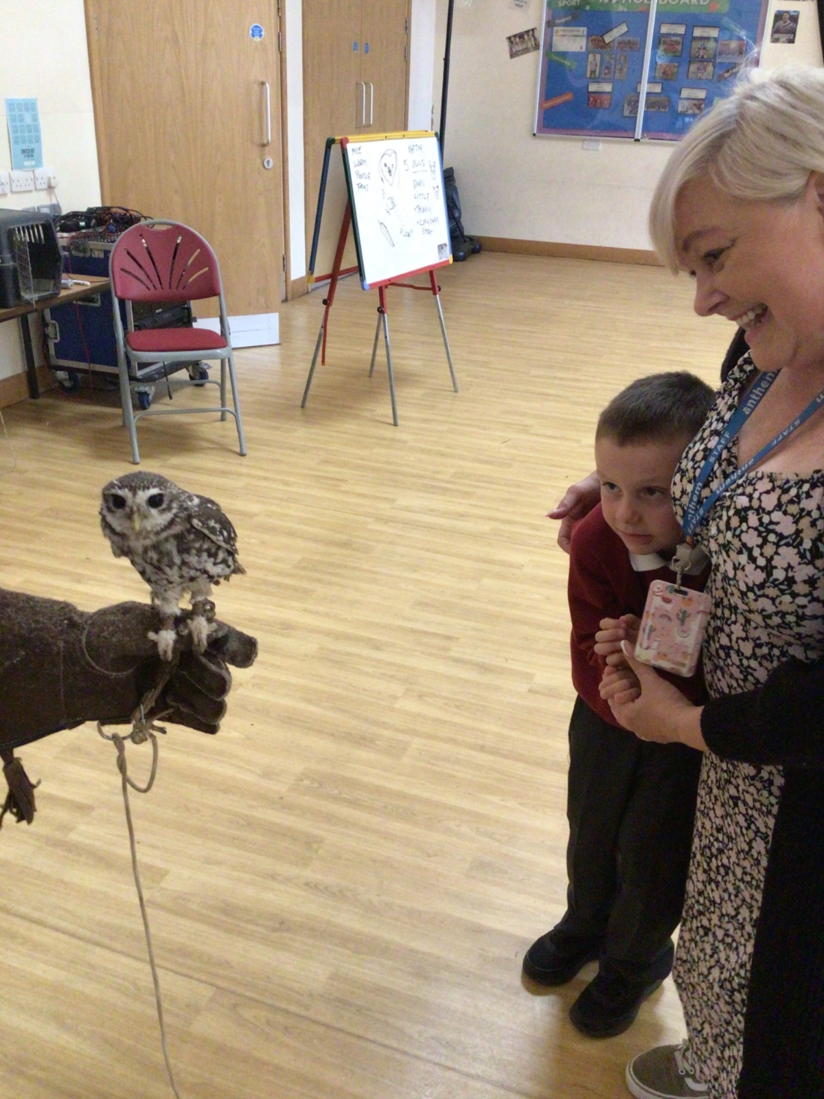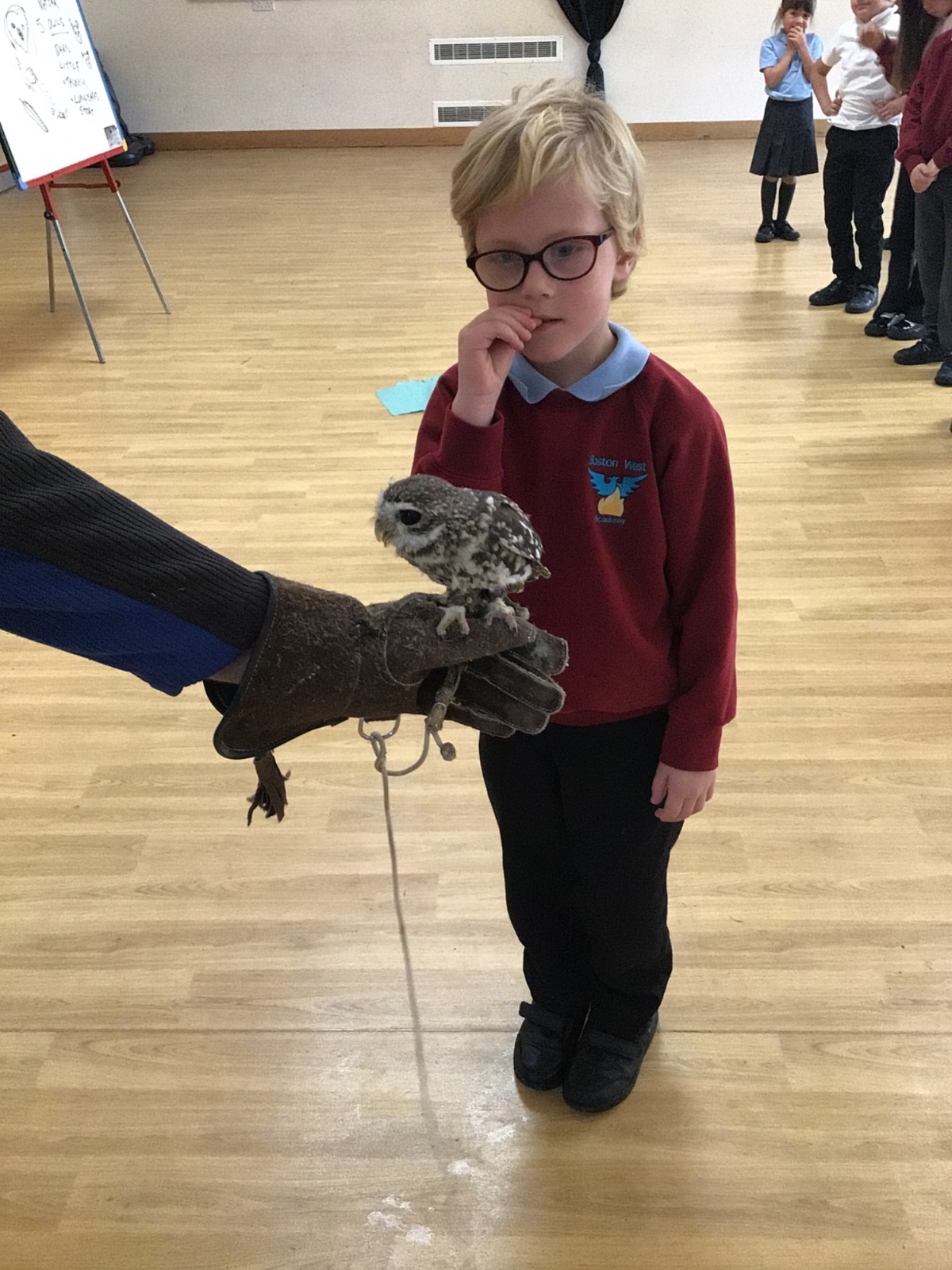 As part of our science learning today, we had a visitor come in to tell us about owls. We even got to see two owls.