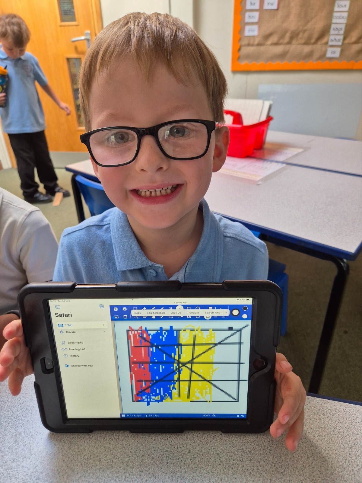 As part of our computing unit using Paint, the children learnt about the artist Piet Mondrian and created their own versions. They had to select and use the appropriate tools and colour in their artwork in the style of Mondrian. Look at all their wonderful creations!