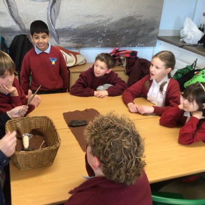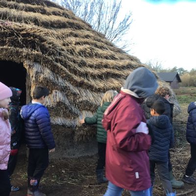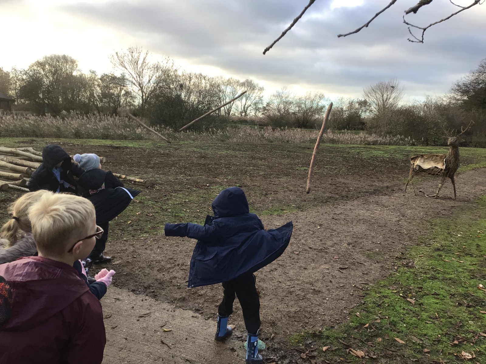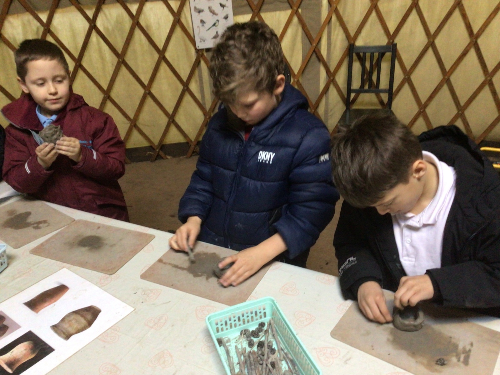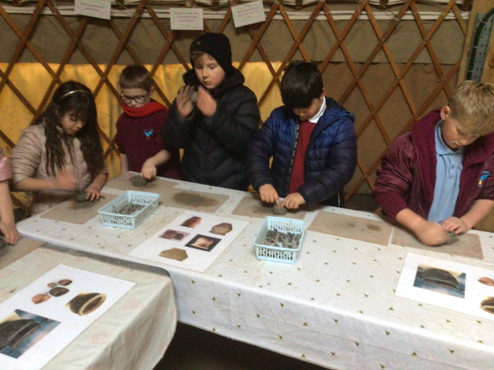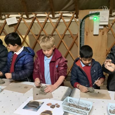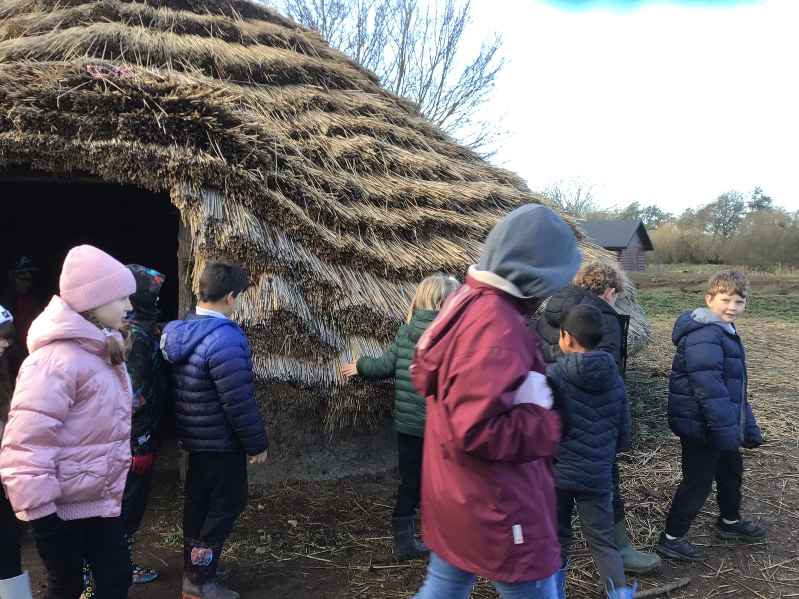 Year 3 visited Flag Fen in Peterborough and handled several artefacts and replicas from the Stone Age, Bronze Age, Iron Age and Roman times. Children worked together to build a wattle and daub wall and to create rock art using charcoal, chalk and berries. Later, they had the opportunity to make their own clay pot, imprinting patterns on them using natural materials. After lunch, they aimed their spears at a deer, discovered what the parts of a deer would have been used for during prehistoric times and spent some time around a fire in a round house.