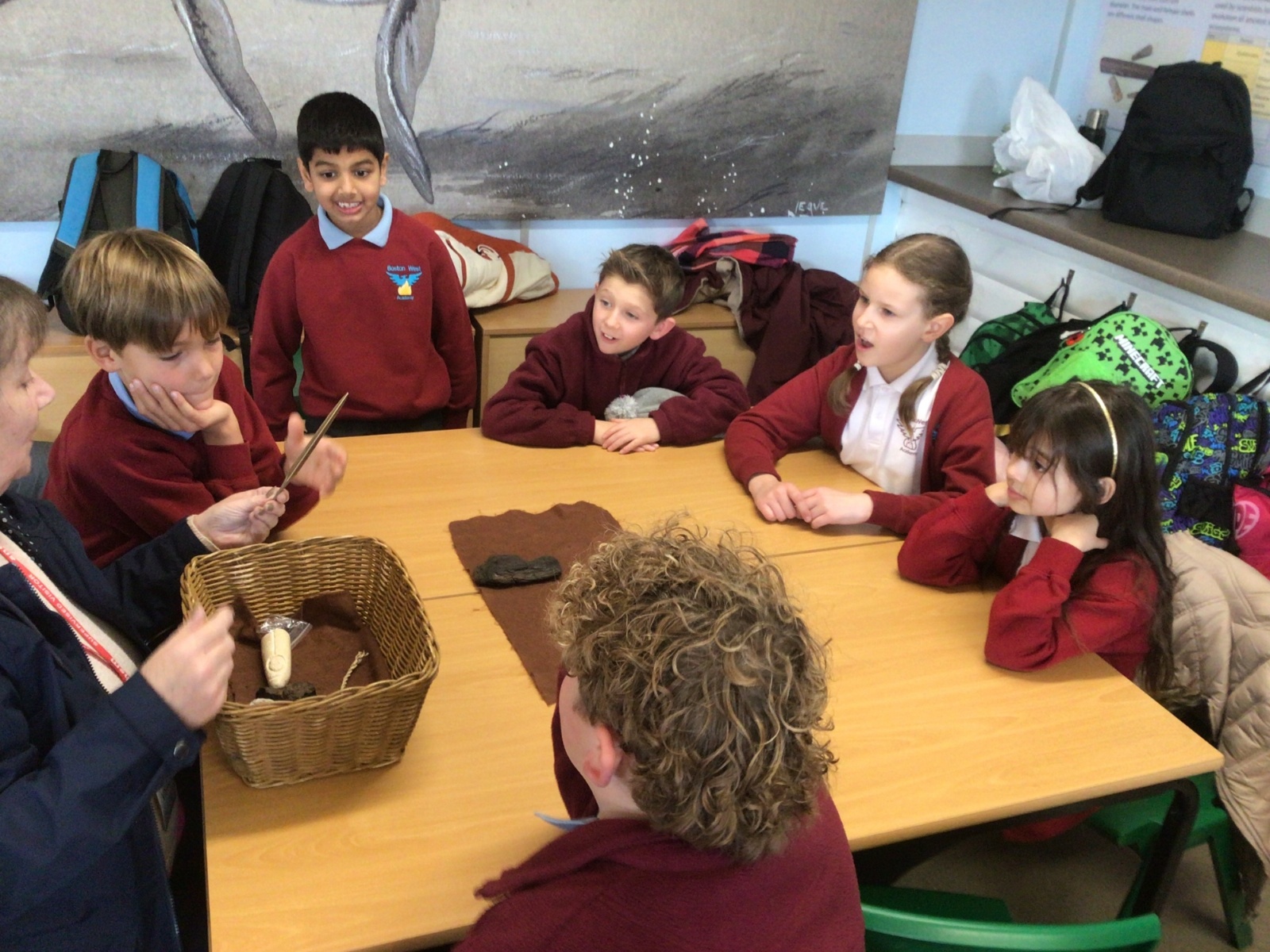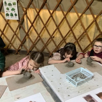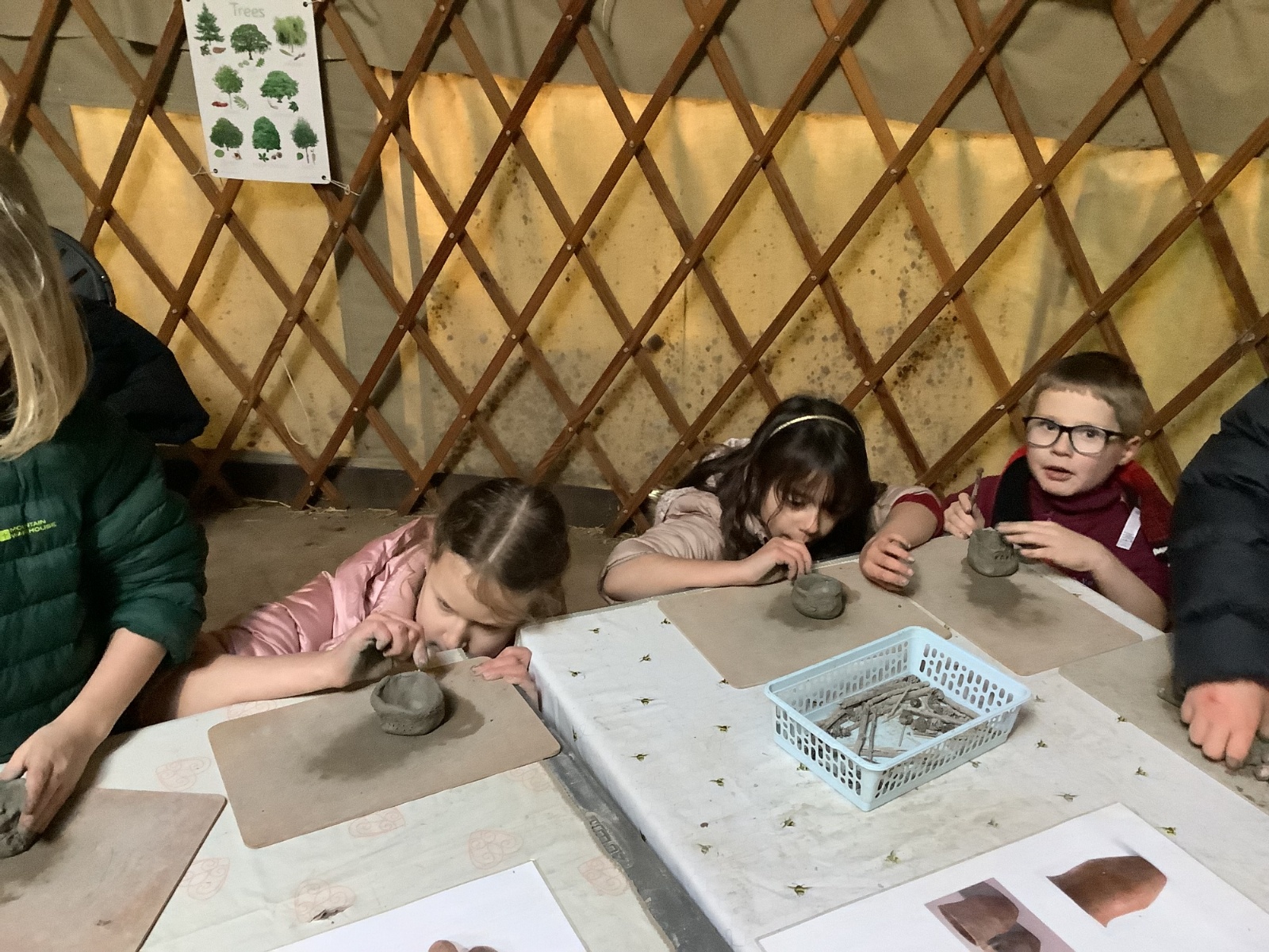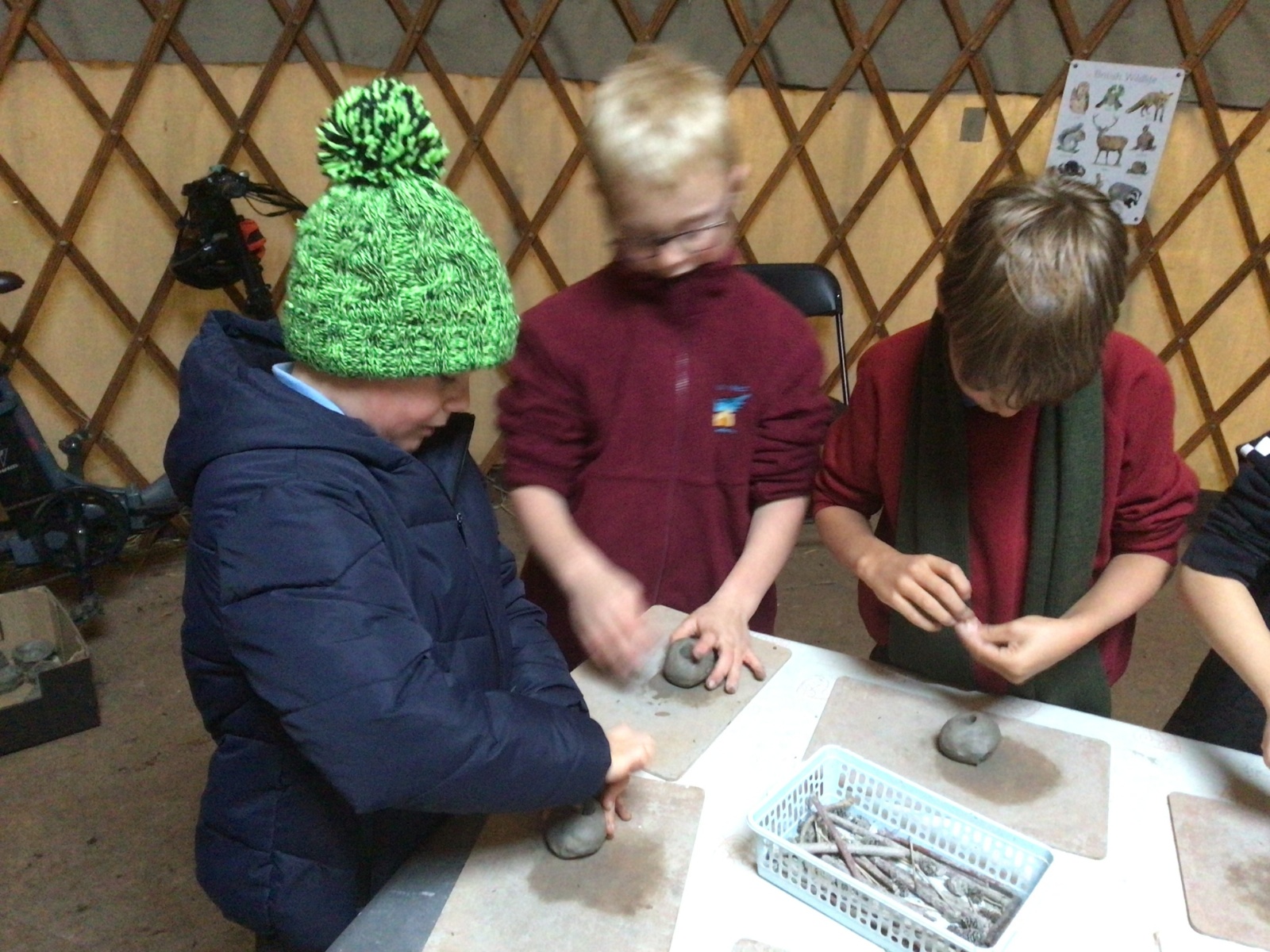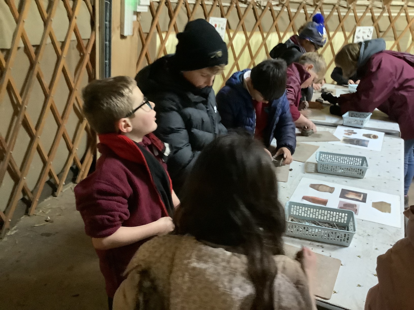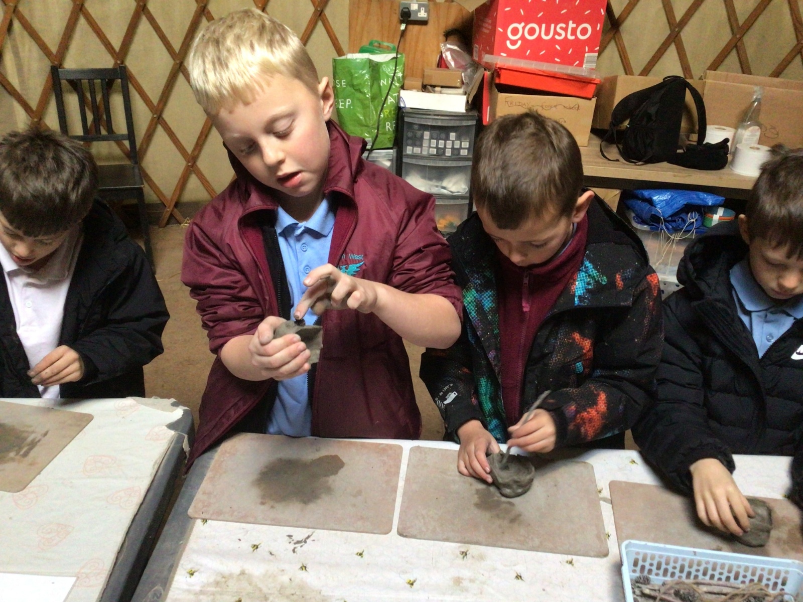 Year 3 visited Flag Fen in Peterborough and handled several artefacts and replicas from the Stone Age, Bronze Age, Iron Age and Roman times. Children worked together to build a wattle and daub wall and to create rock art using charcoal, chalk and berries. Later, they had the opportunity to make their own clay pot, imprinting patterns on them using natural materials. After lunch, they aimed their spears at a deer, discovered what the parts of a deer would have been used for during prehistoric times and spent some time around a fire in a round house.