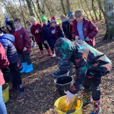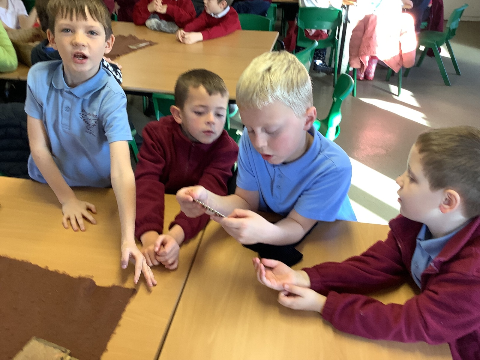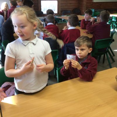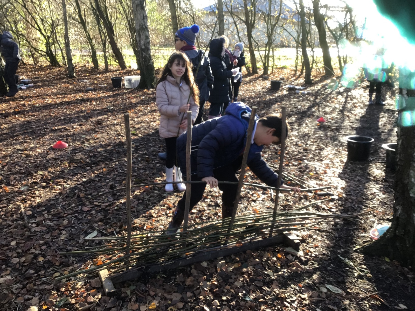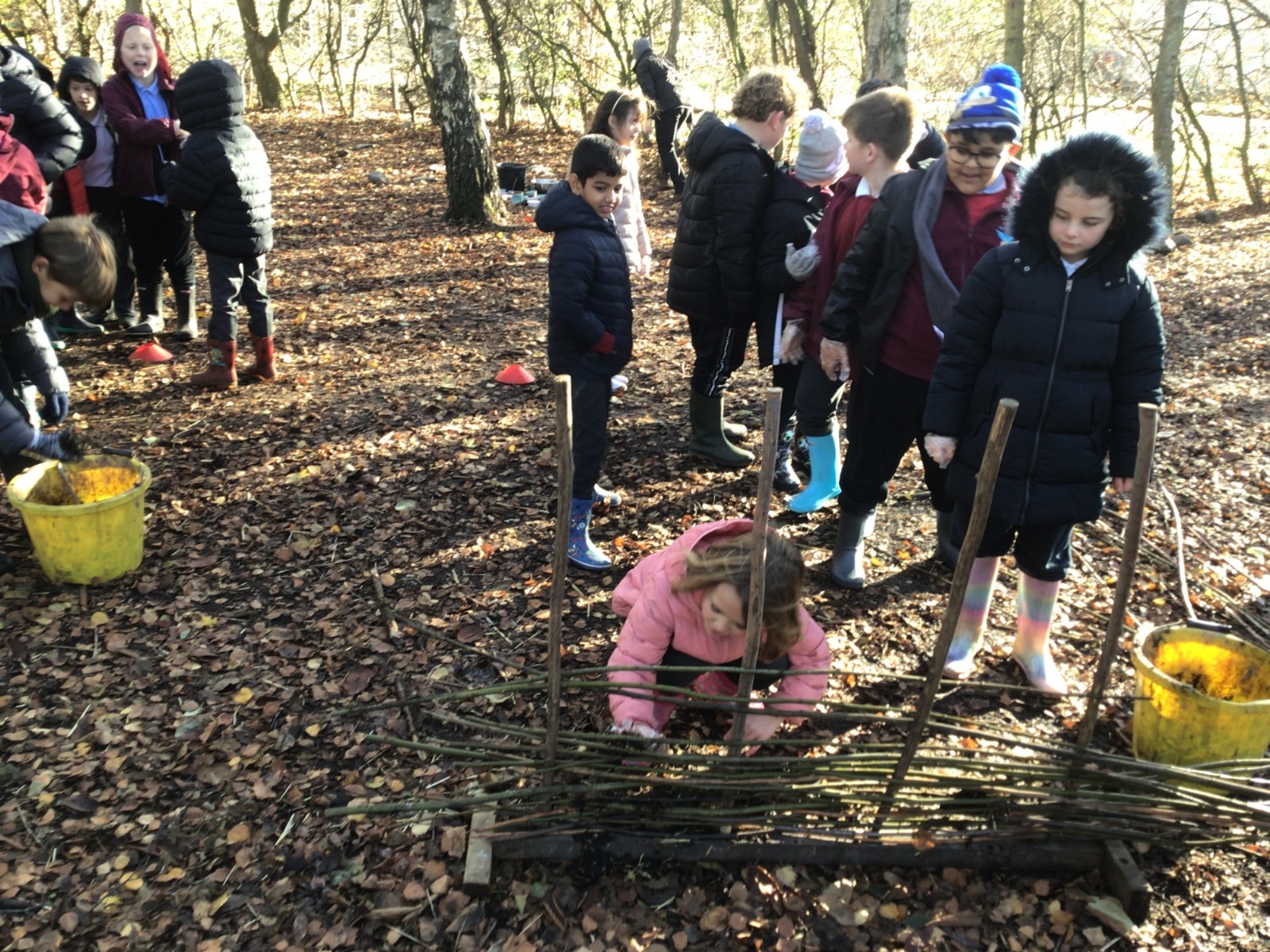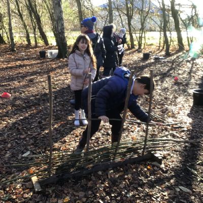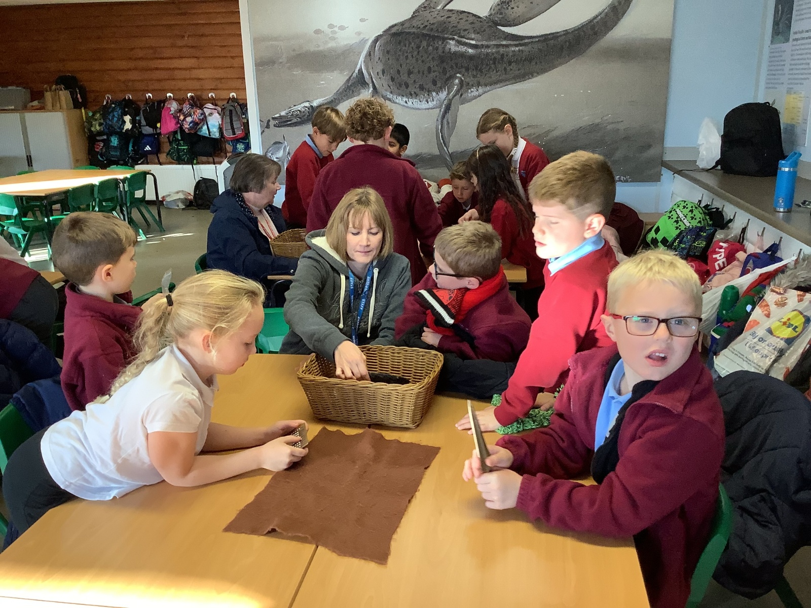 Year 3 visited Flag Fen in Peterborough and handled several artefacts and replicas from the Stone Age, Bronze Age, Iron Age and Roman times. Children worked together to build a wattle and daub wall and to create rock art using charcoal, chalk and berries. Later, they had the opportunity to make their own clay pot, imprinting patterns on them using natural materials. After lunch, they aimed their spears at a deer, discovered what the parts of a deer would have been used for during prehistoric times and spent some time around a fire in a round house.