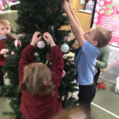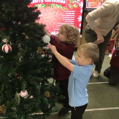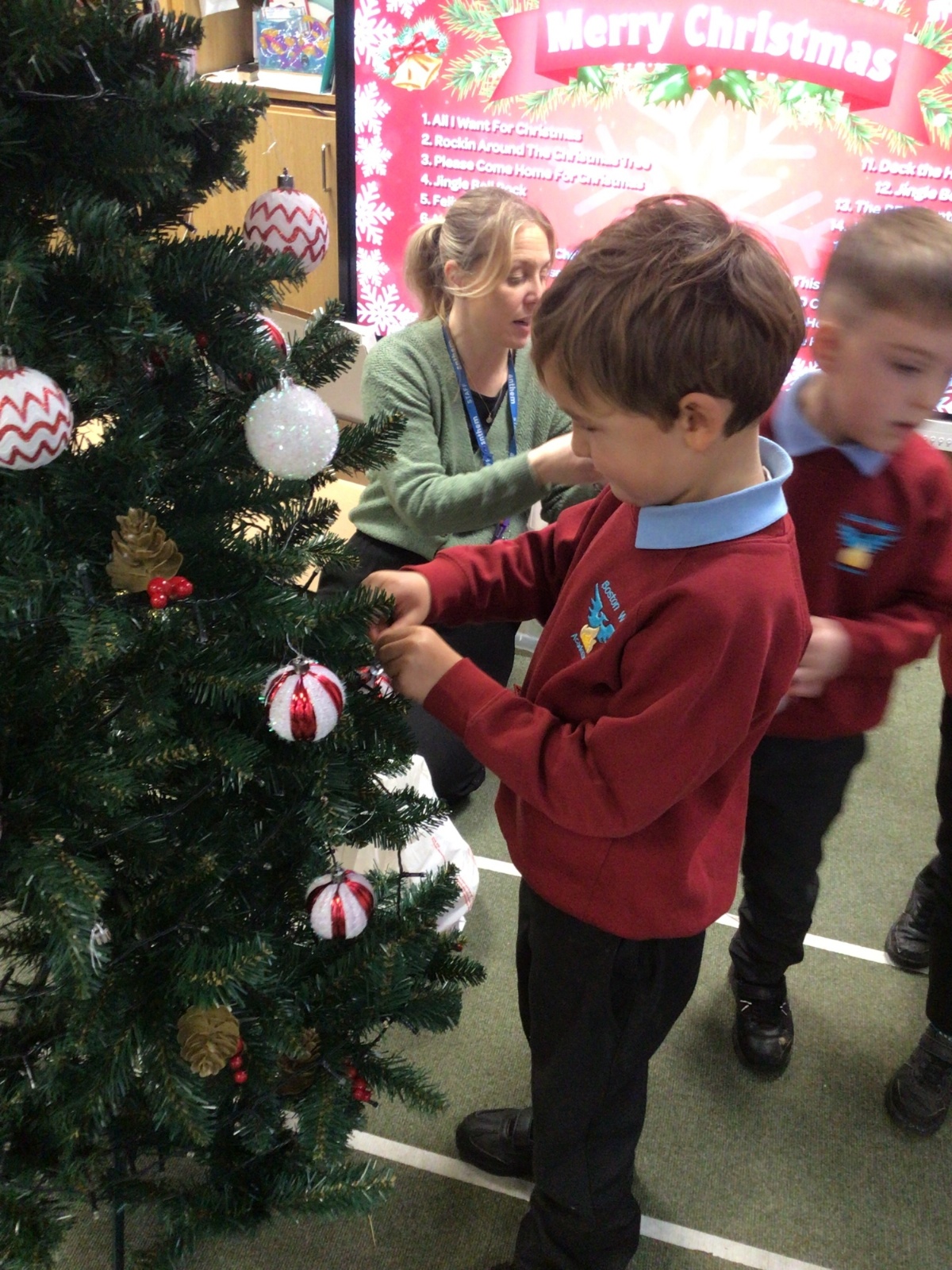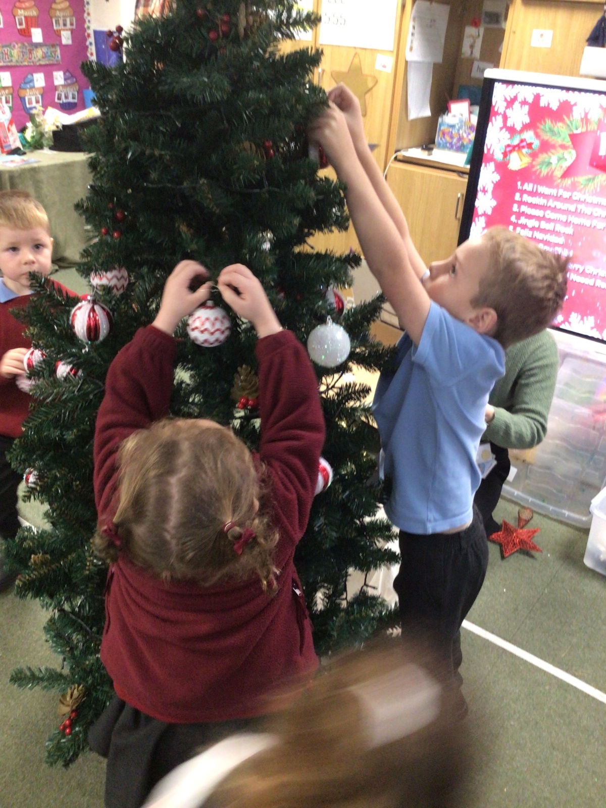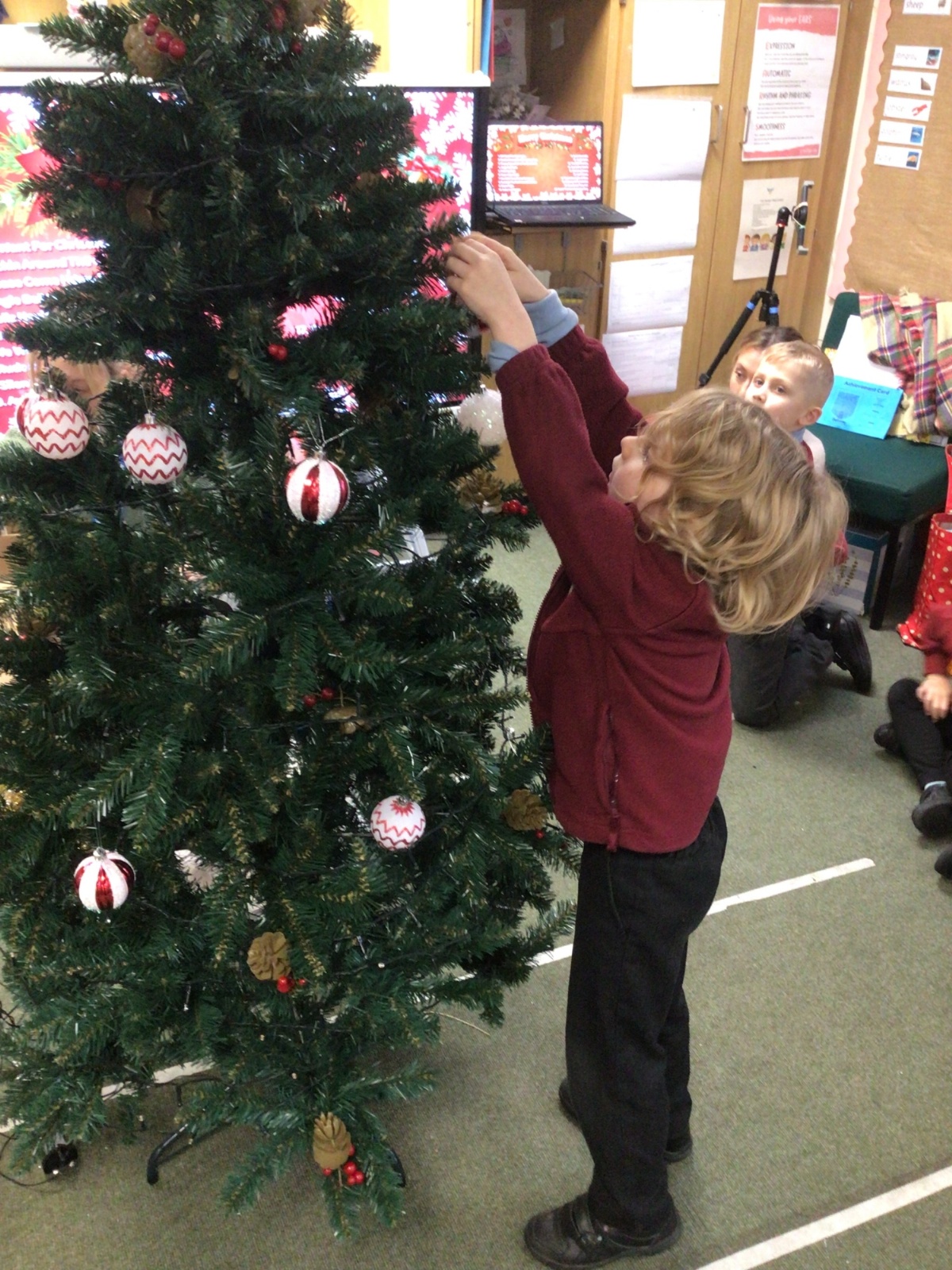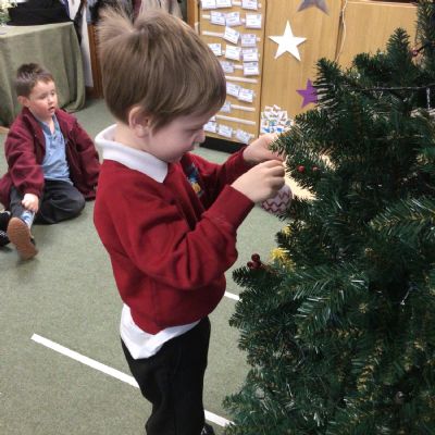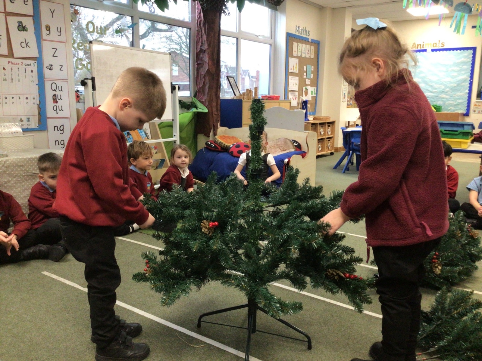 The children enjoyed decorating our class Christmas tree. They helped to build the tree, spread out the branches and put the lights, baubles and tinsel on. They were very proud of the end product!