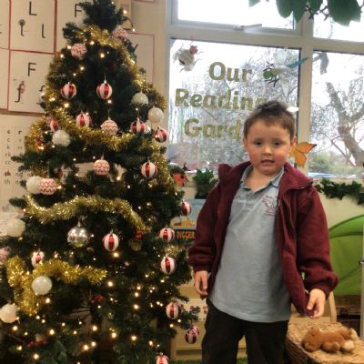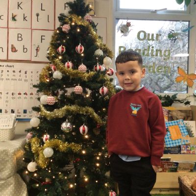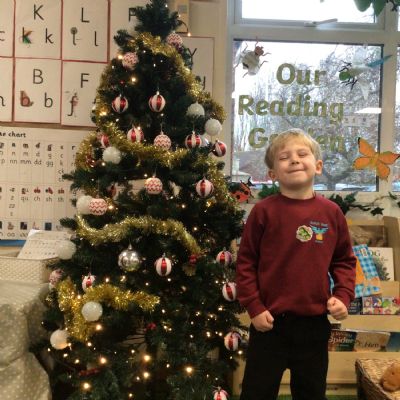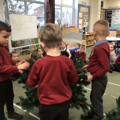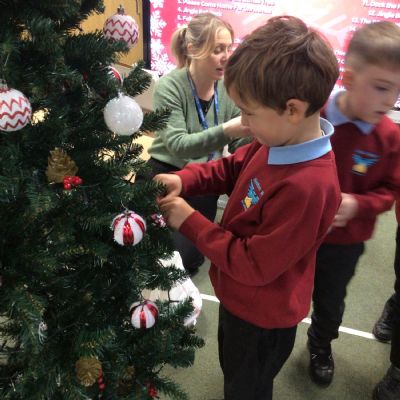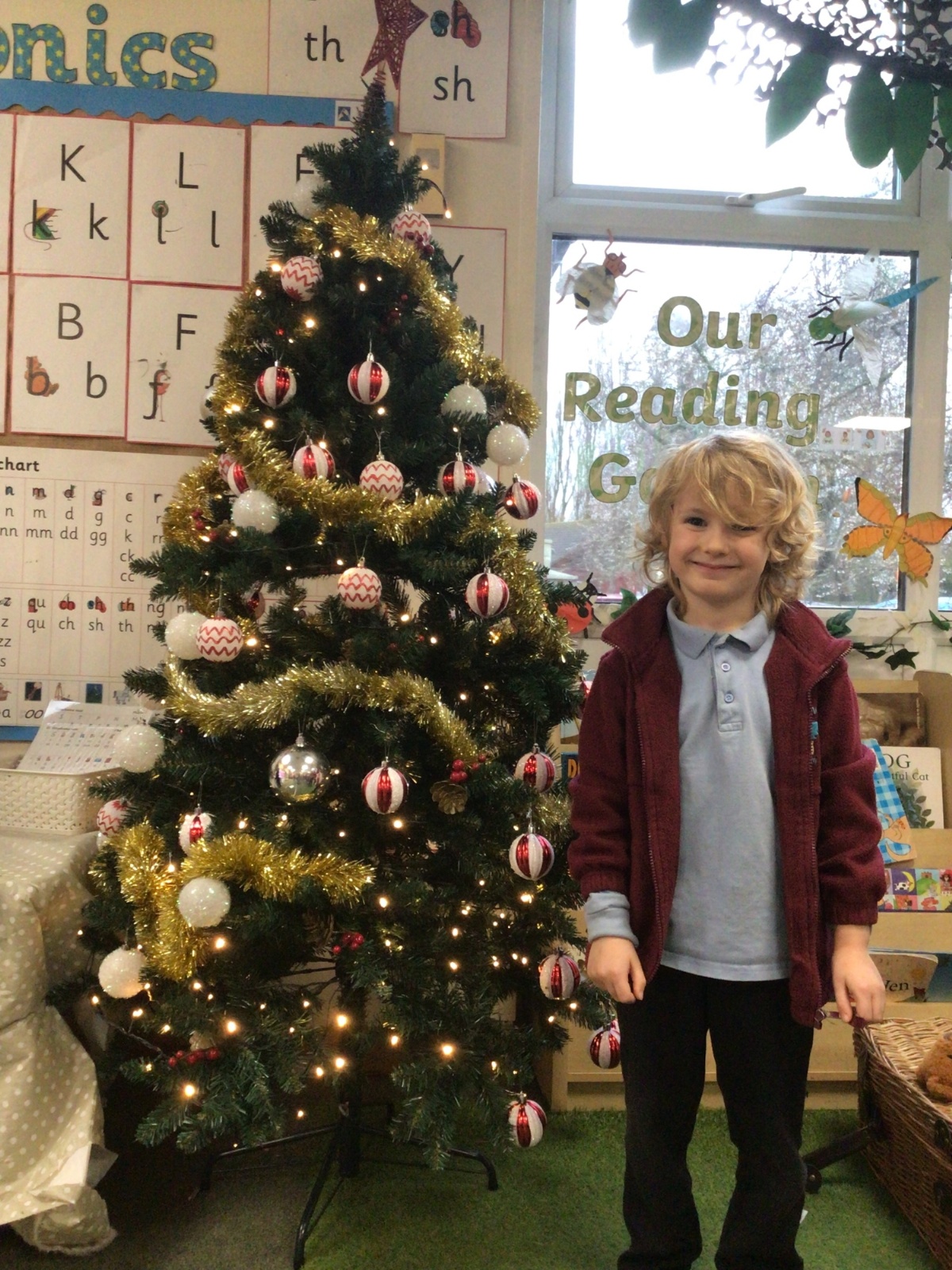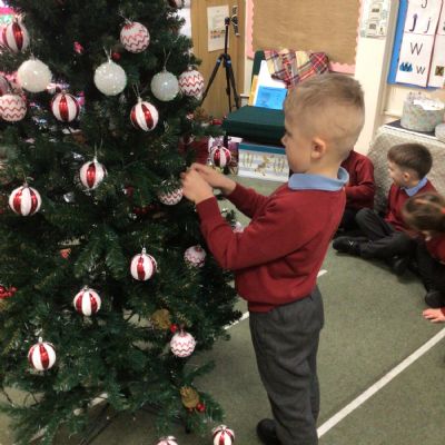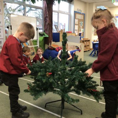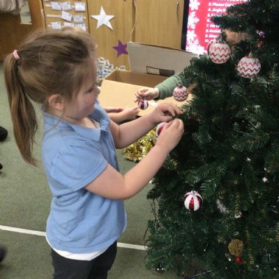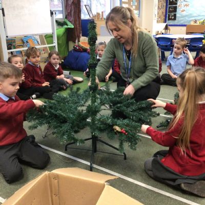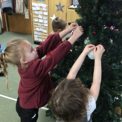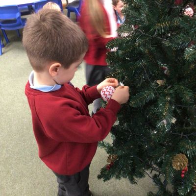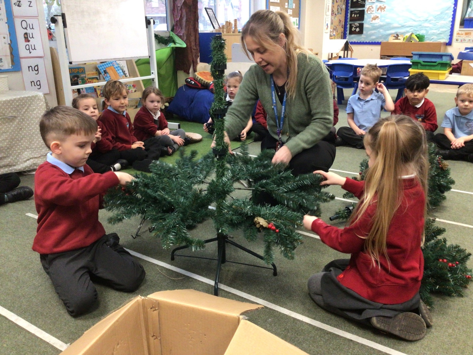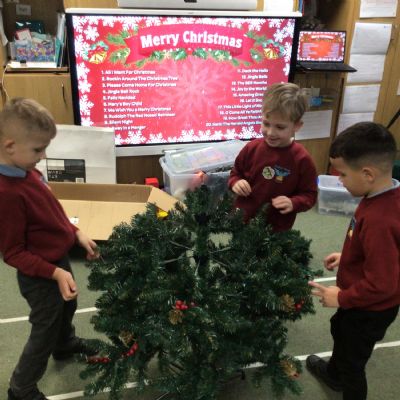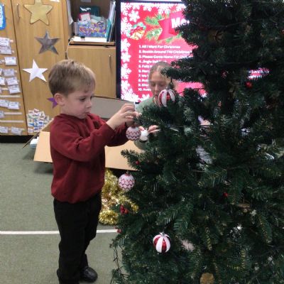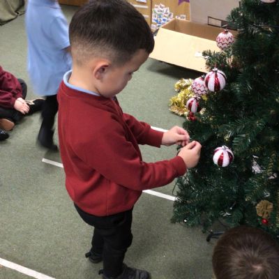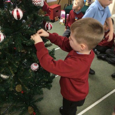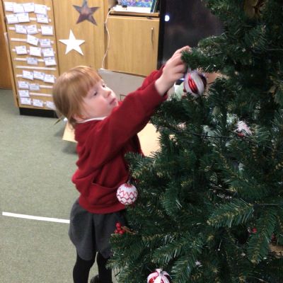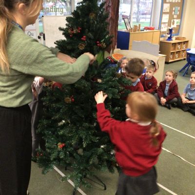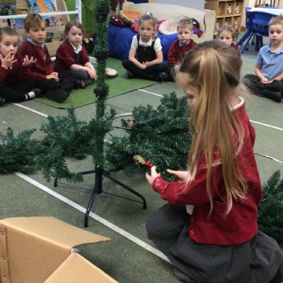 The children enjoyed decorating our class Christmas tree. They helped to build the tree, spread out the branches and put the lights, baubles and tinsel on. They were very proud of the end product!