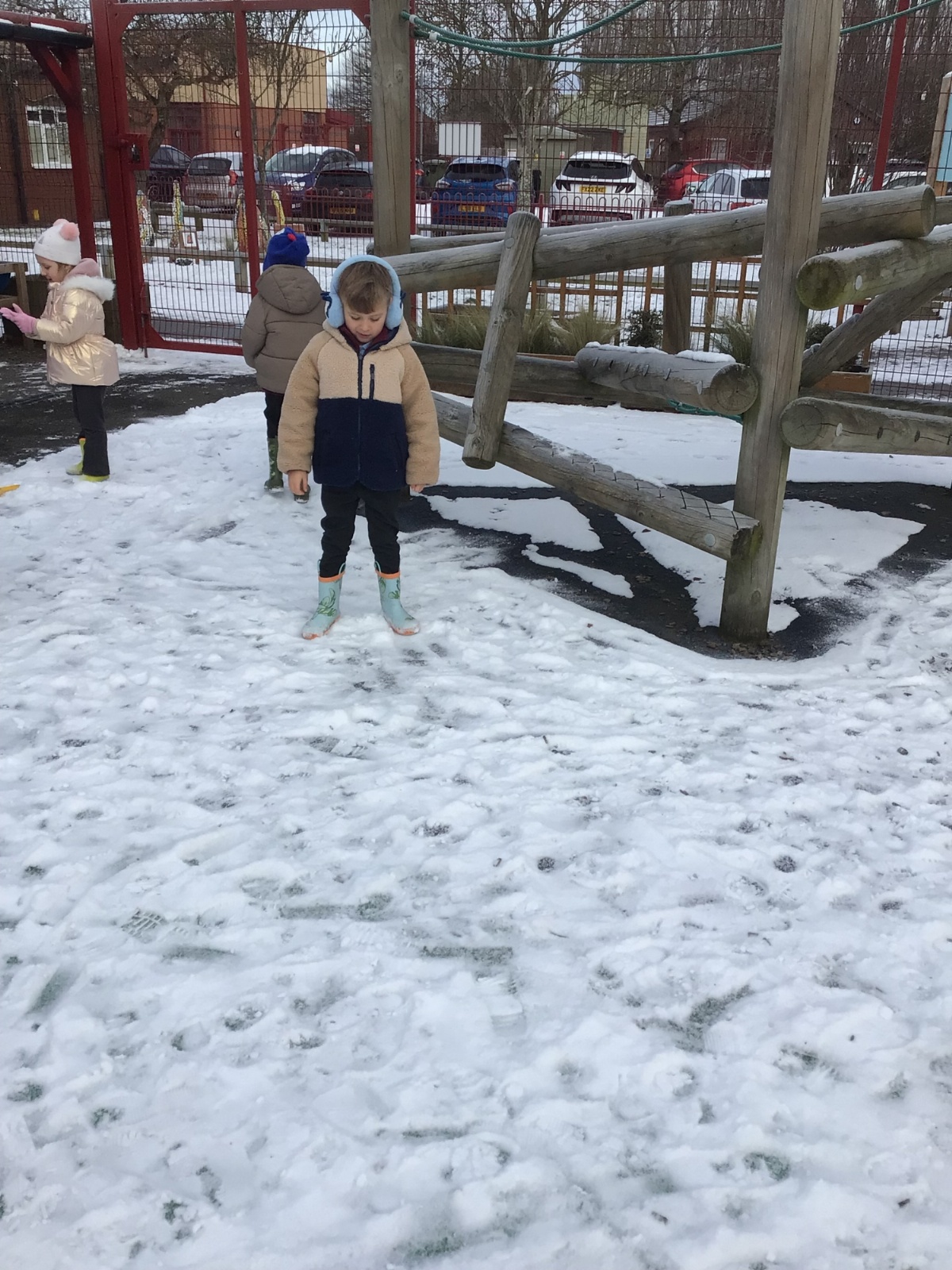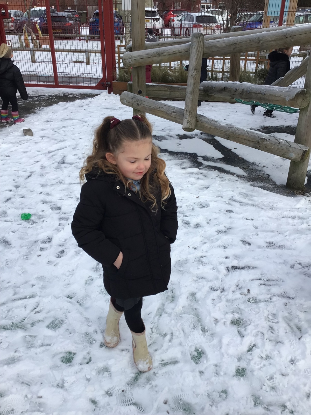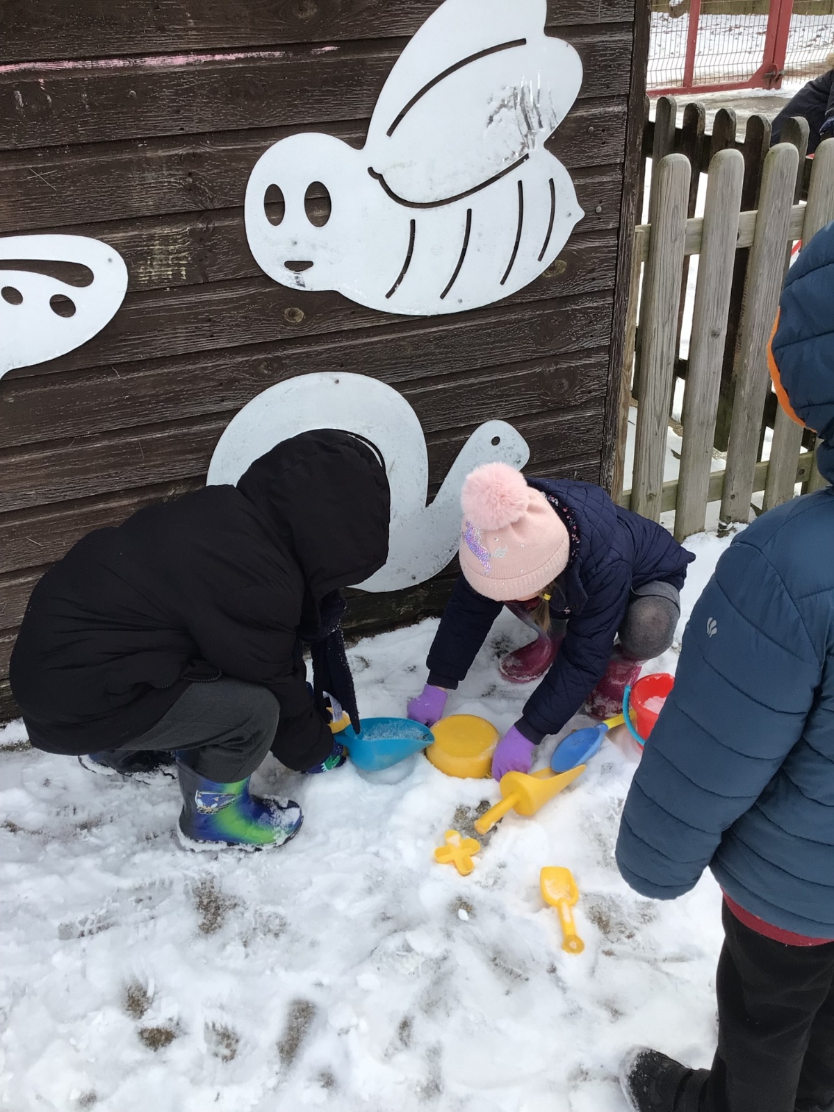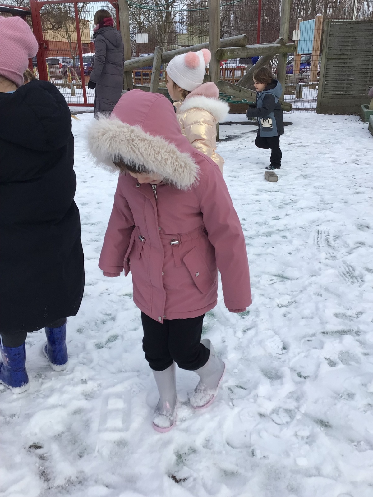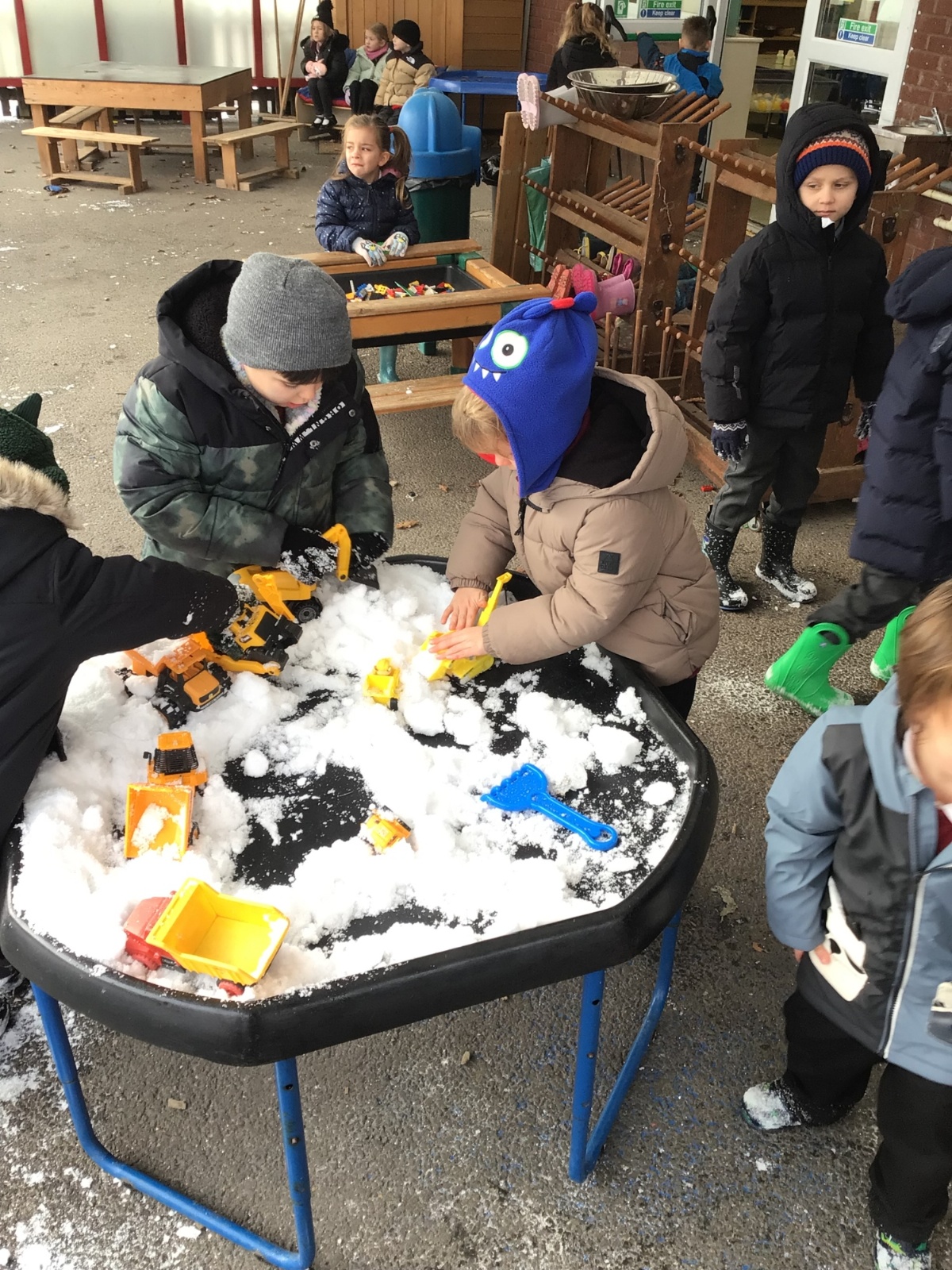 The children spent some time today exploring the snow within their school environment. This gave the children a hands-on opportunity to explore natural changes. We wrapped up well and went out to create shapes, footprints, marks, along with using equipment to build. The children worked individually or in teams to safely develop their physical skills while having fun. What a lovely way to start our new term.