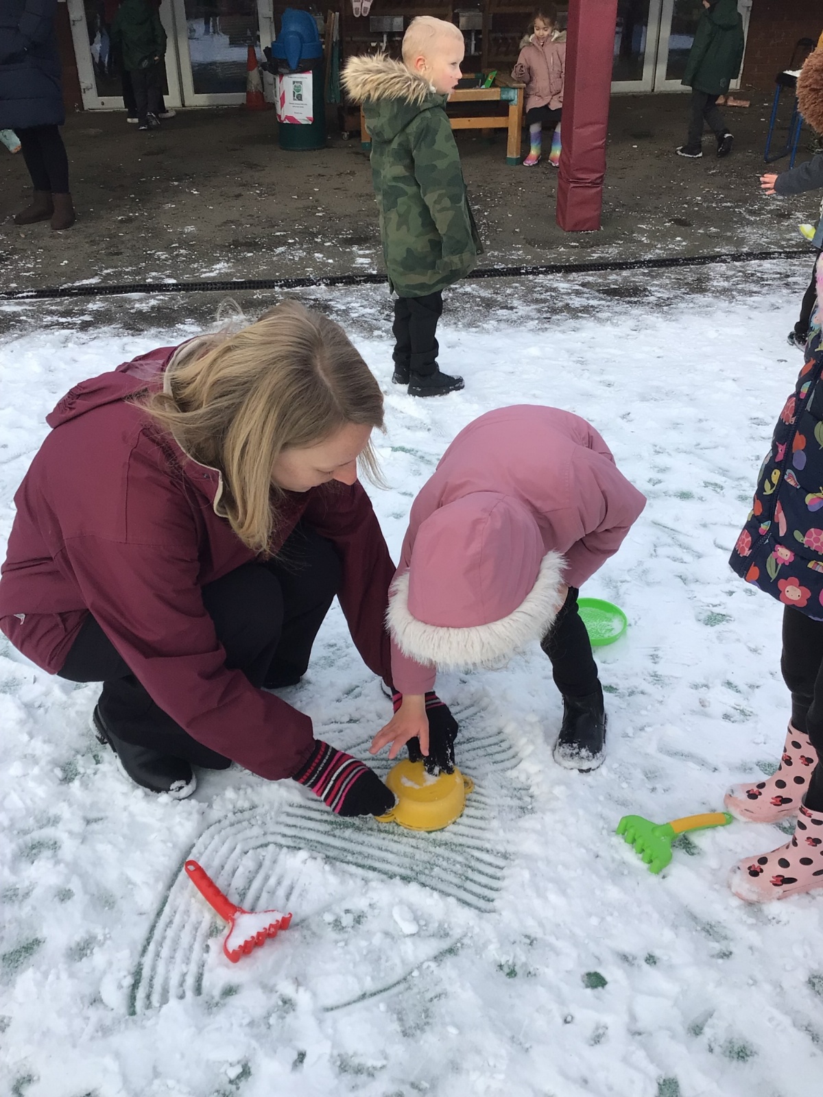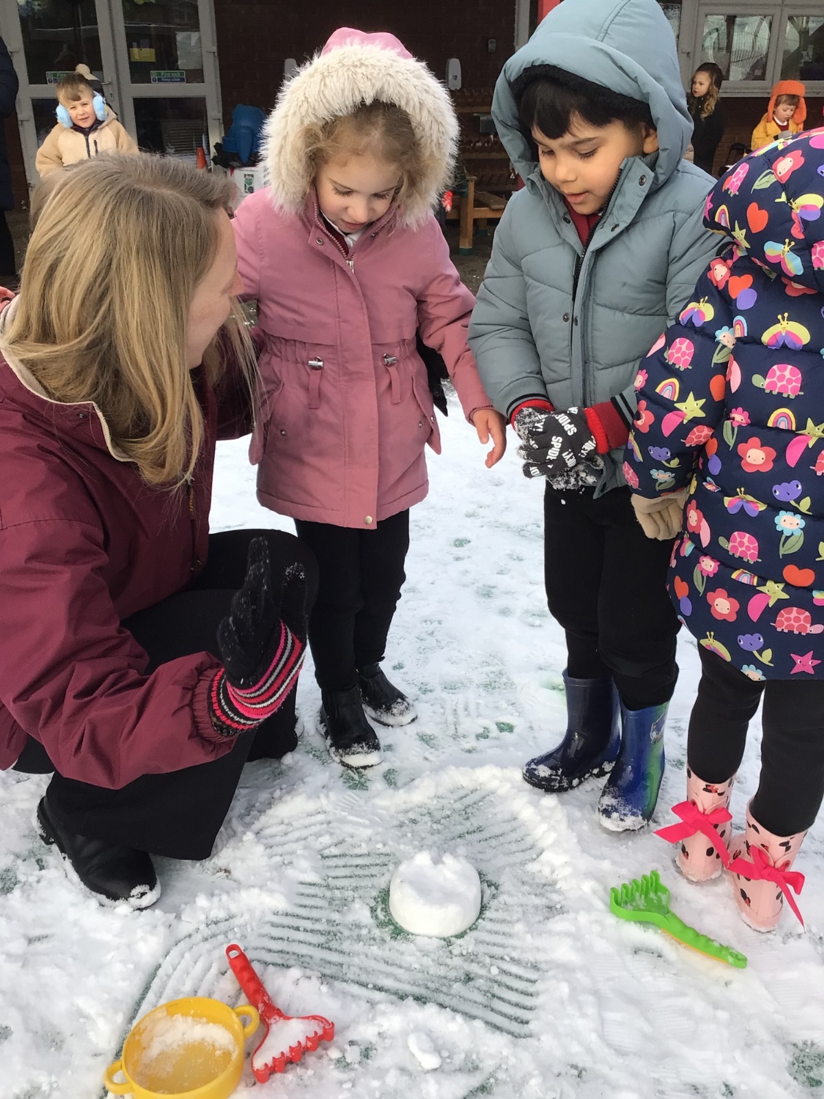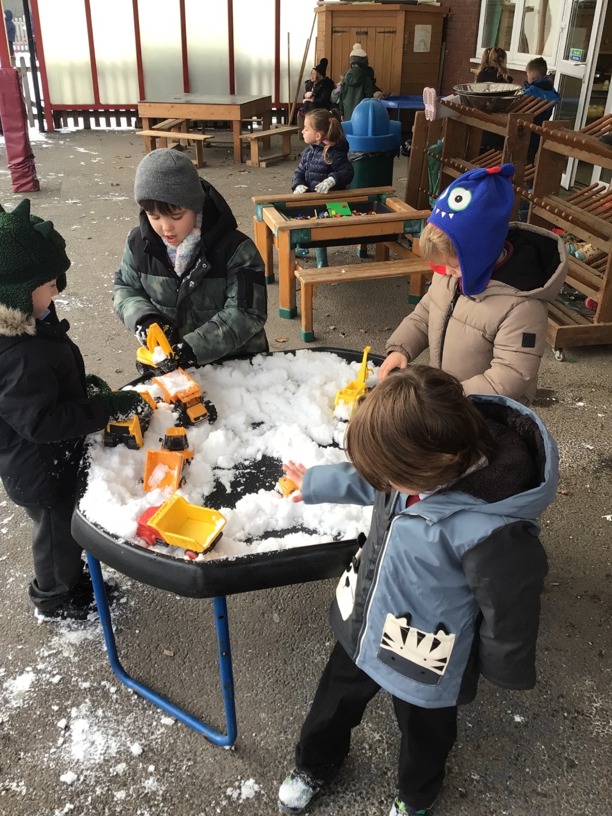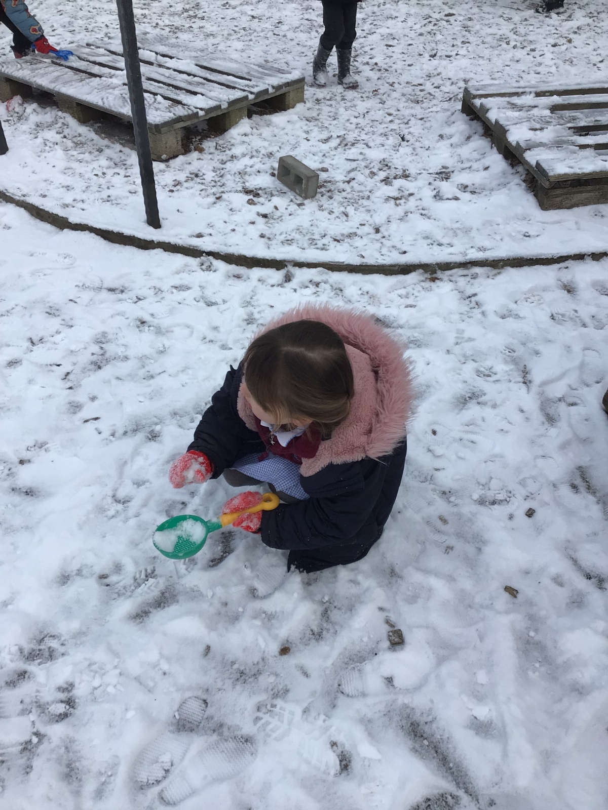 The children spent some time today exploring the snow within their school environment. This gave the children a hands-on opportunity to explore natural changes. We wrapped up well and went out to create shapes, footprints, marks, along with using equipment to build. The children worked individually or in teams to safely develop their physical skills while having fun. What a lovely way to start our new term.