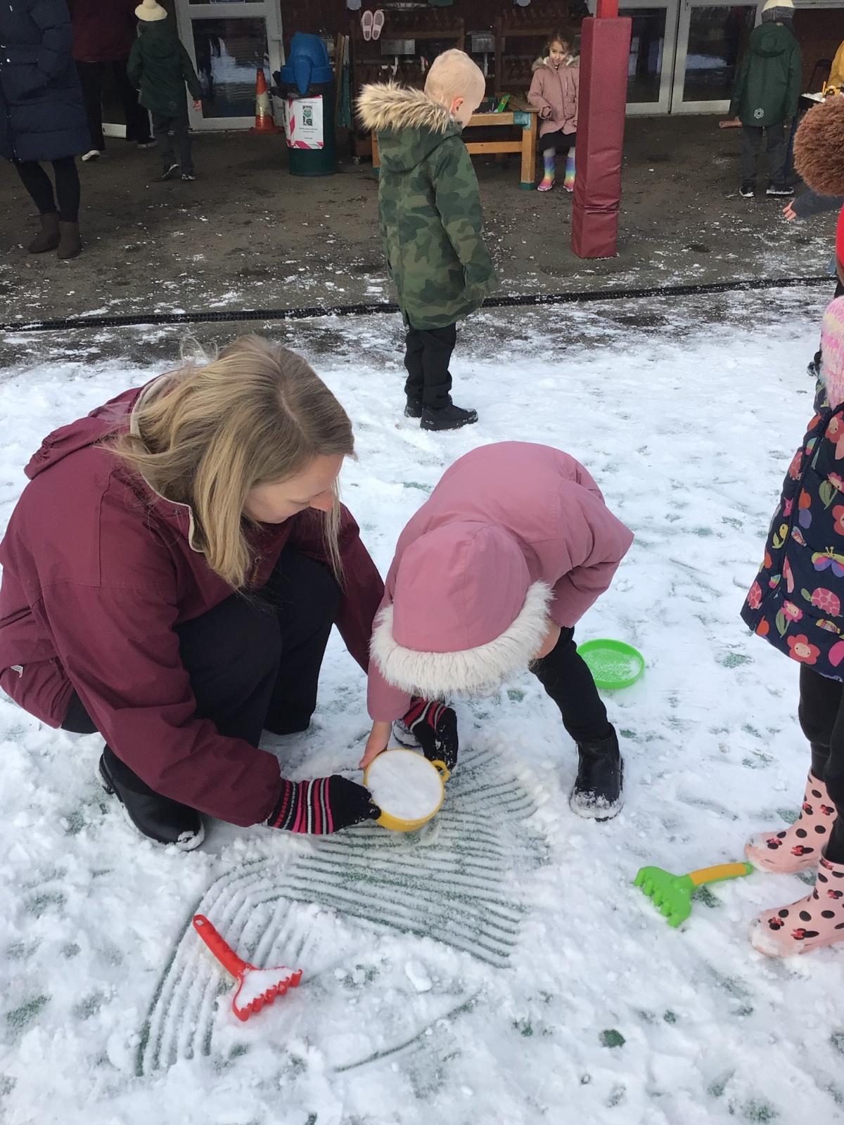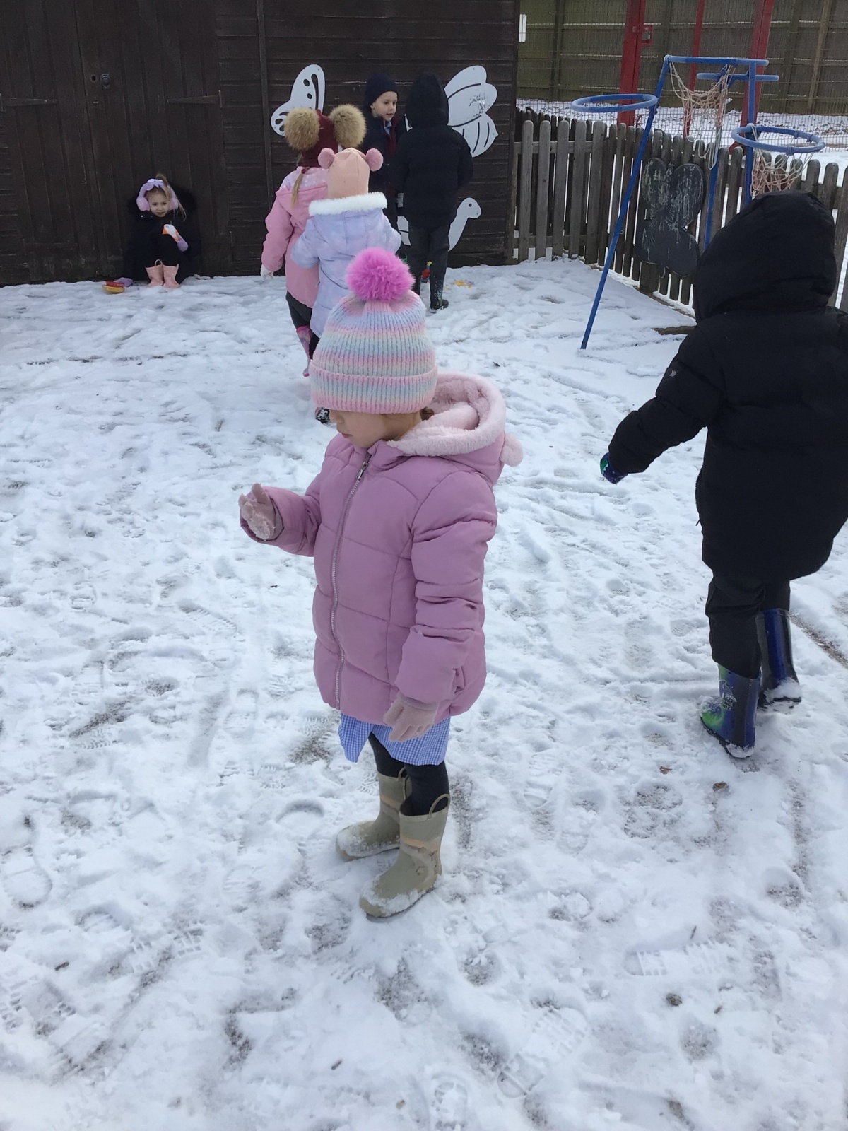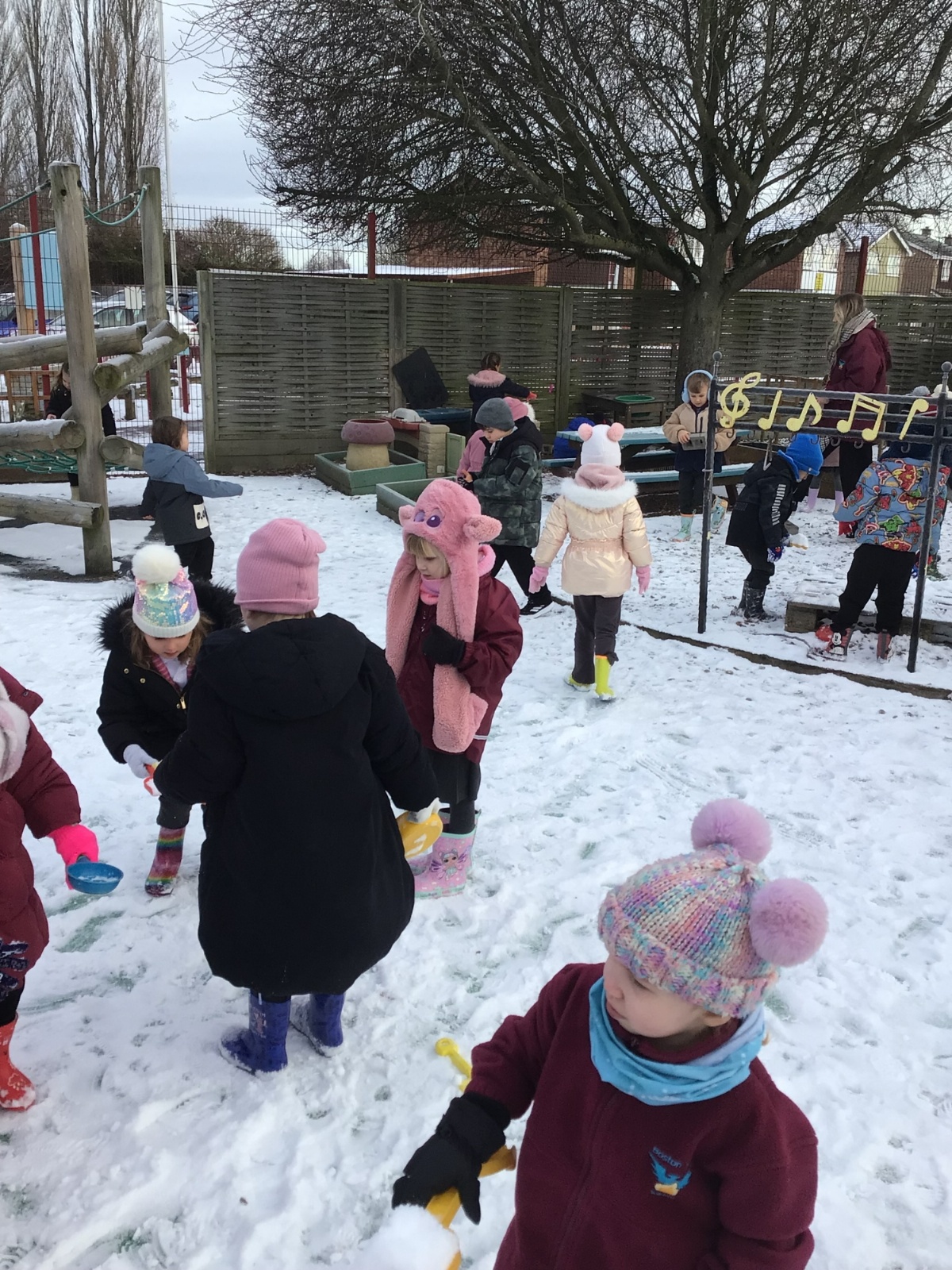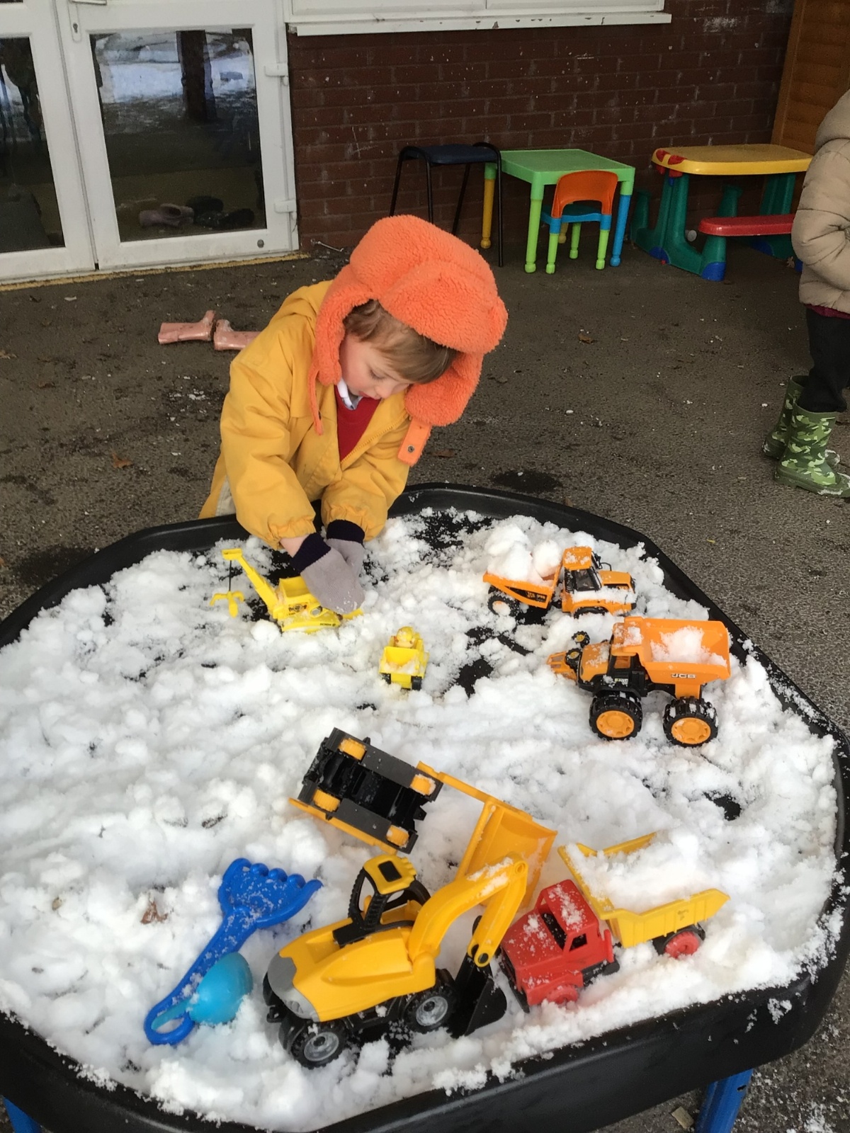 The children spent some time today exploring the snow within their school environment. This gave the children a hands-on opportunity to explore natural changes. We wrapped up well and went out to create shapes, footprints, marks, along with using equipment to build. The children worked individually or in teams to safely develop their physical skills while having fun. What a lovely way to start our new term.