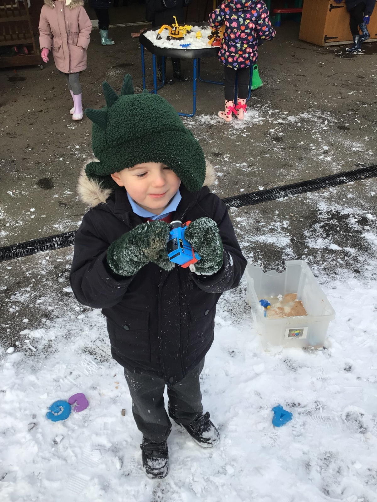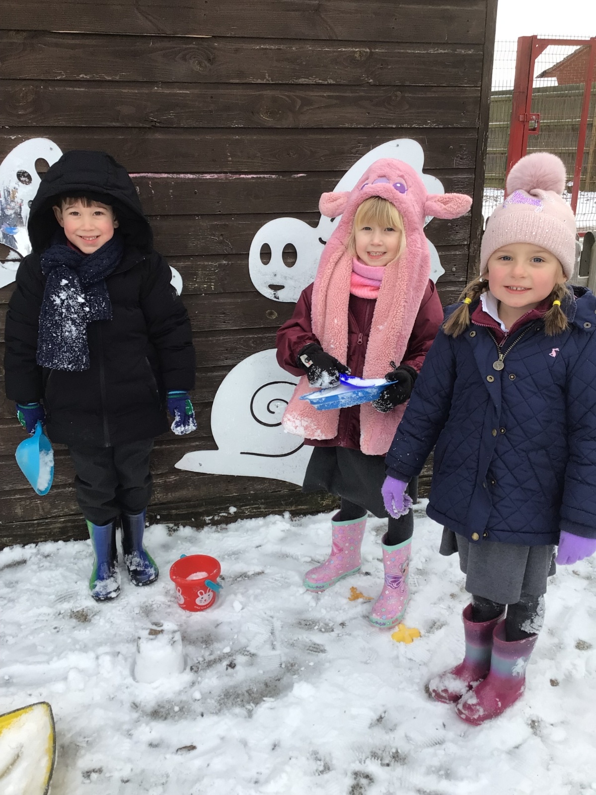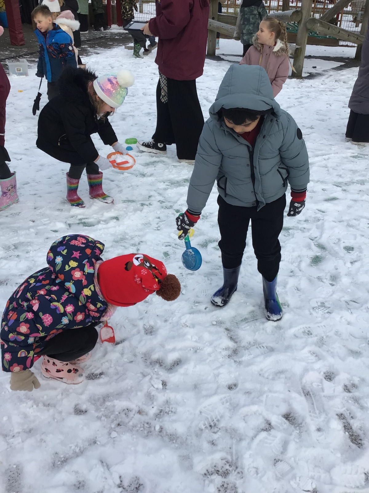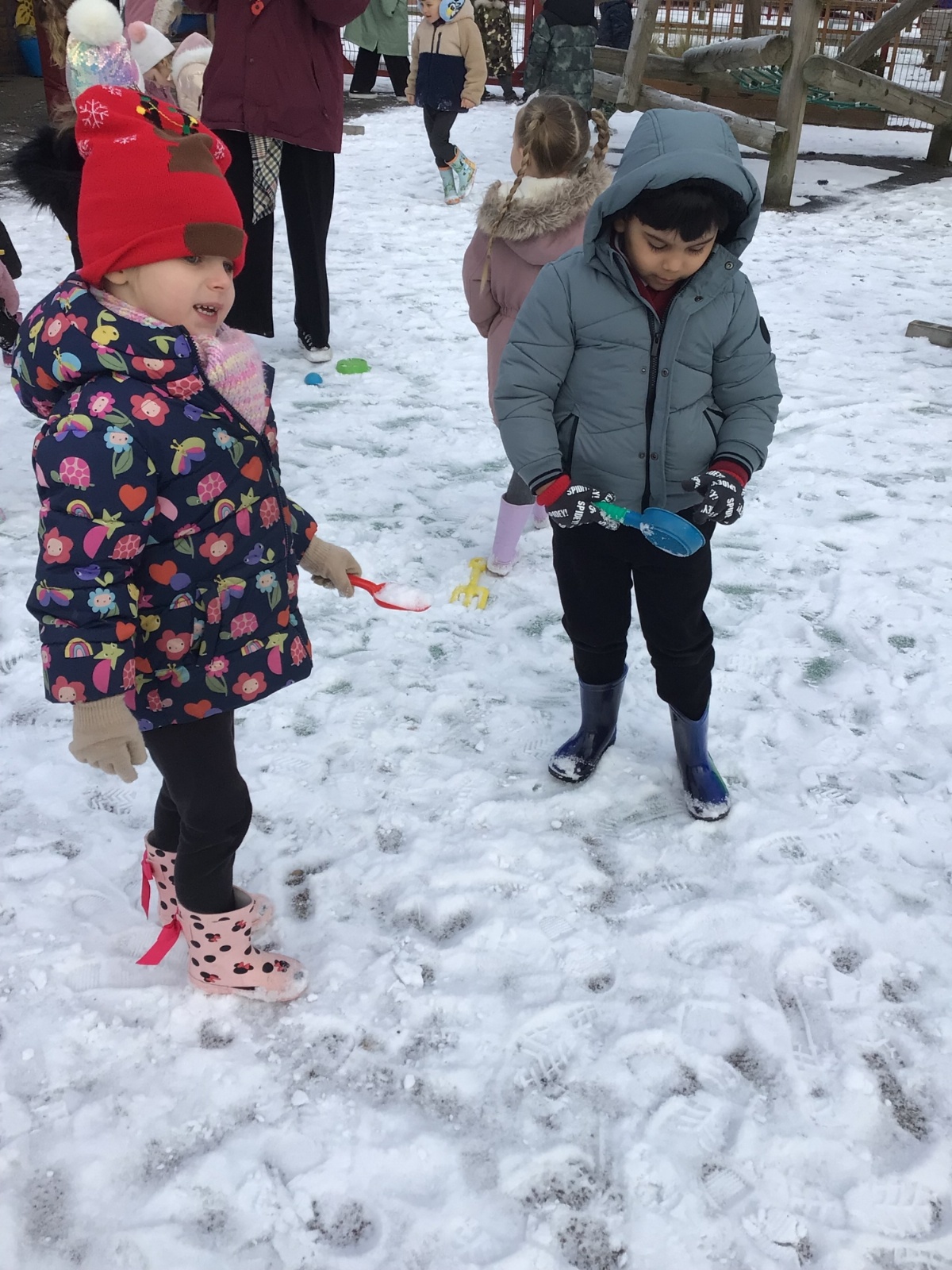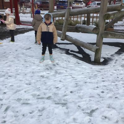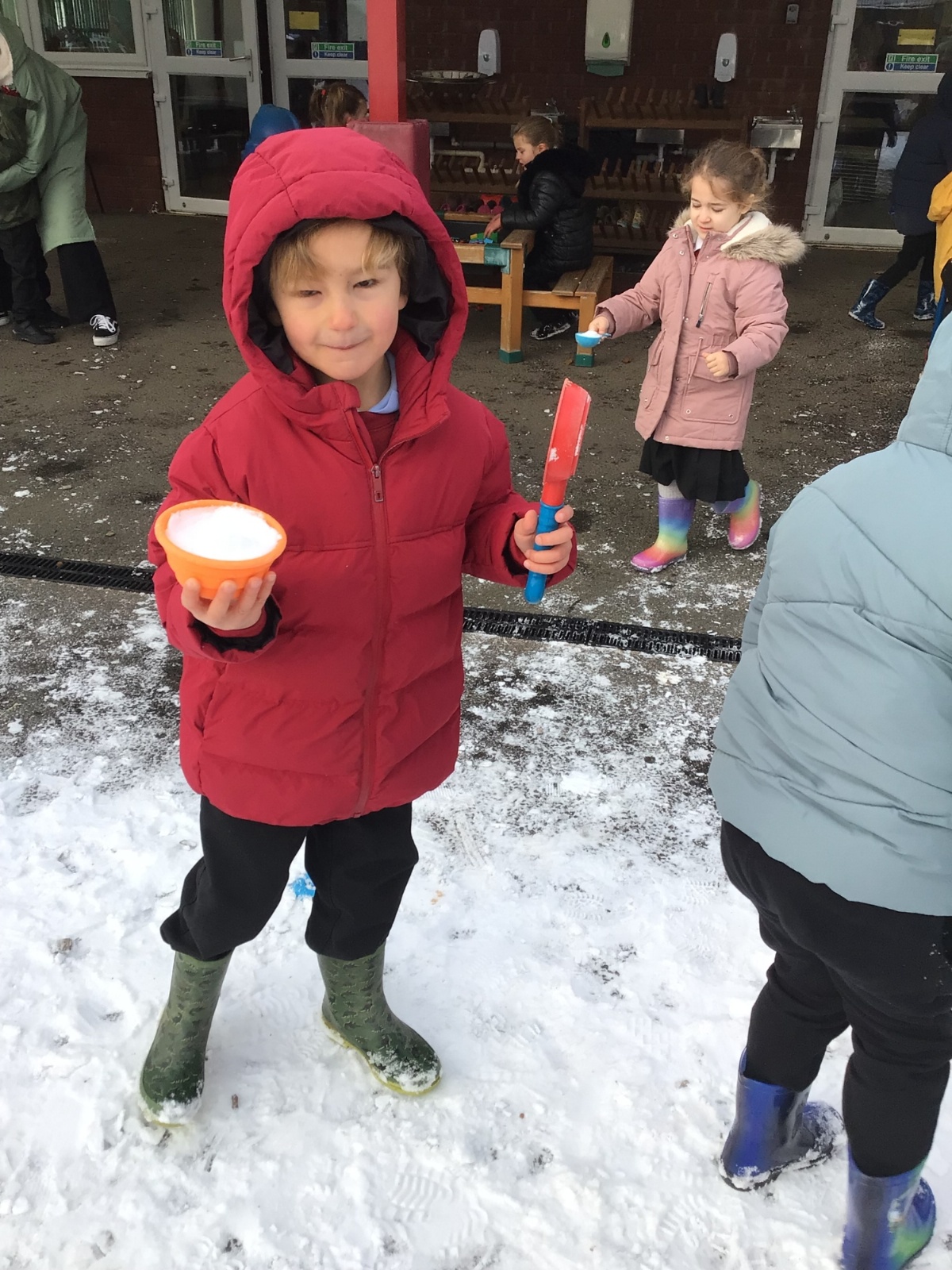 The children spent some time today exploring the snow within their school environment. This gave the children a hands-on opportunity to explore natural changes. We wrapped up well and went out to create shapes, footprints, marks, along with using equipment to build. The children worked individually or in teams to safely develop their physical skills while having fun. What a lovely way to start our new term.