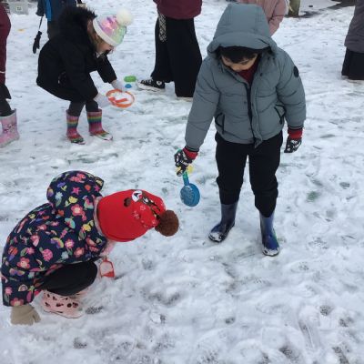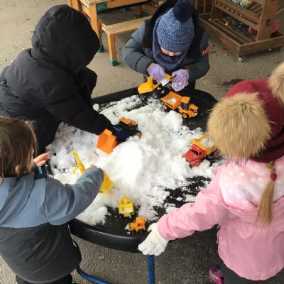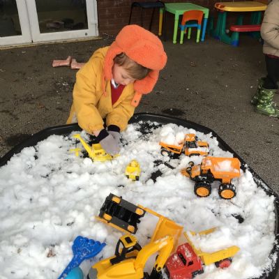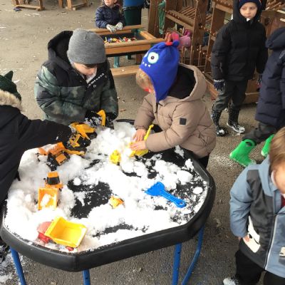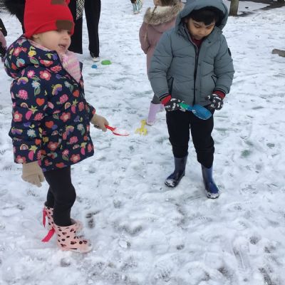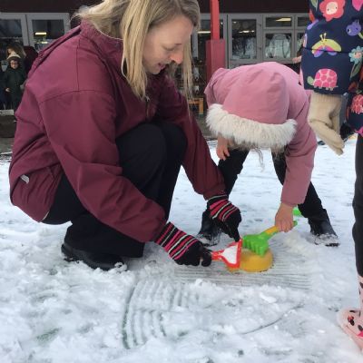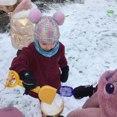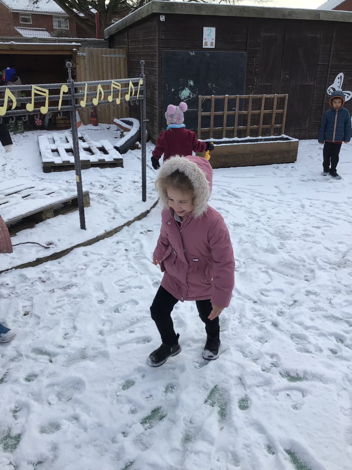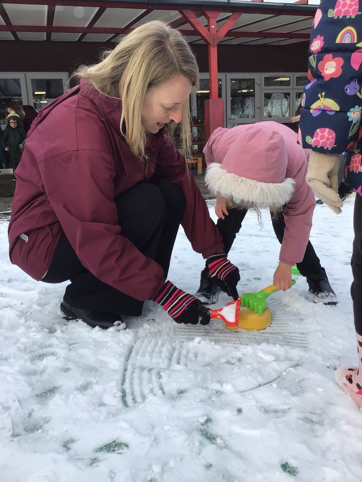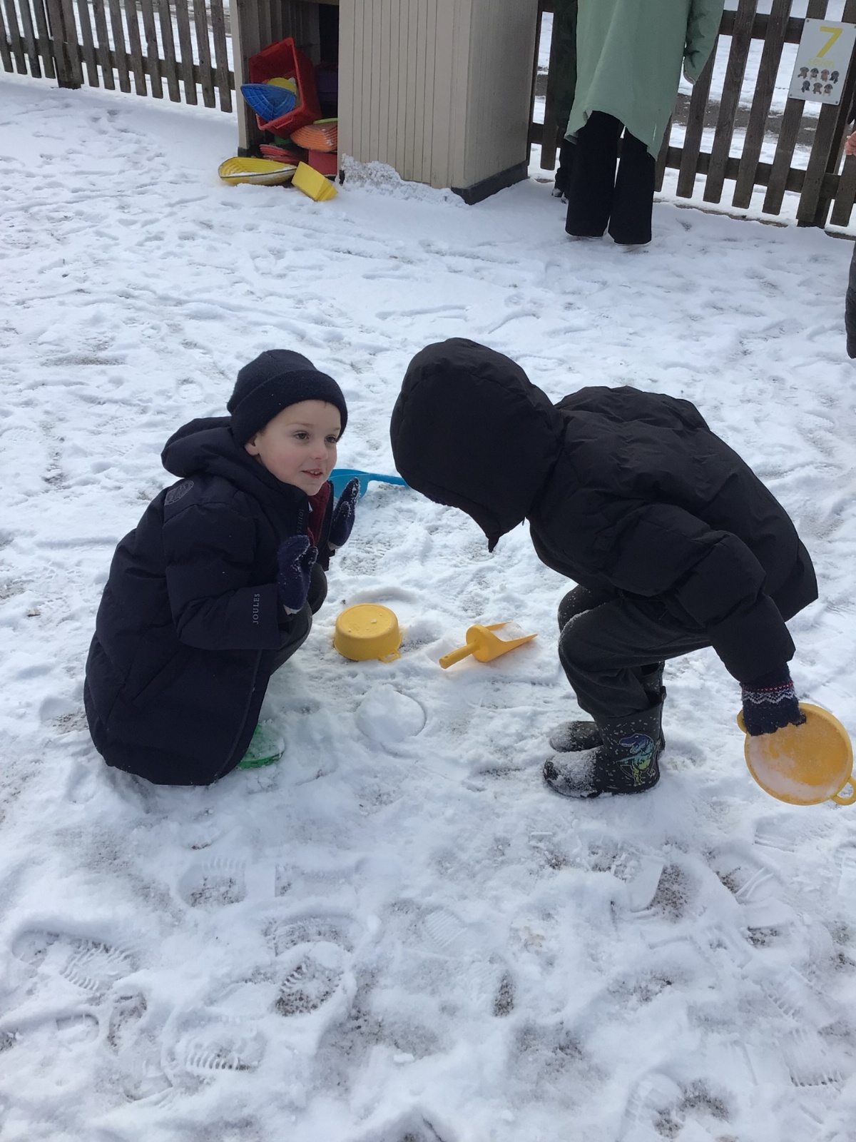 The children spent some time today exploring the snow within their school environment. This gave the children a hands-on opportunity to explore natural changes. We wrapped up well and went out to create shapes, footprints, marks, along with using equipment to build. The children worked individually or in teams to safely develop their physical skills while having fun. What a lovely way to start our new term.