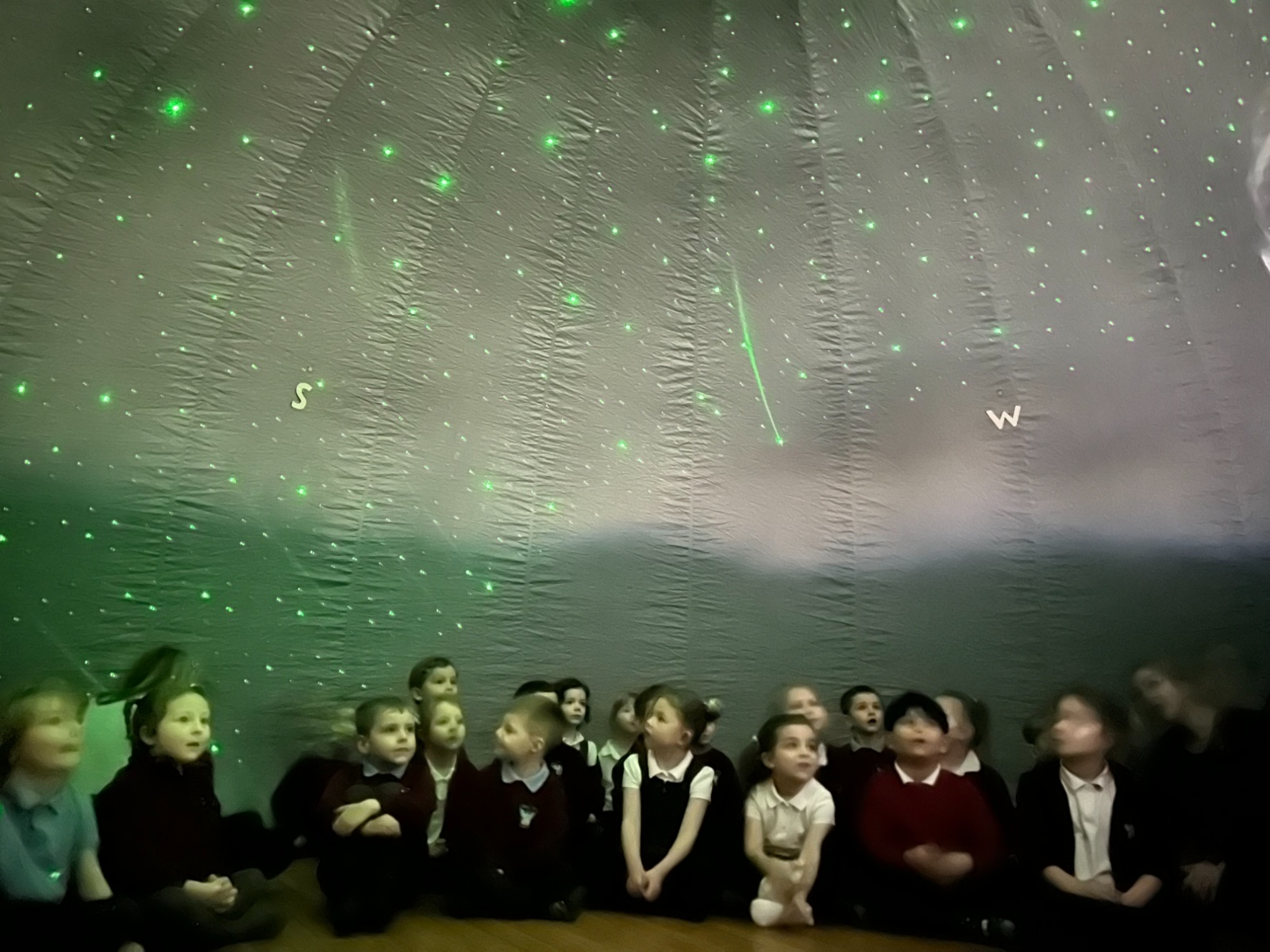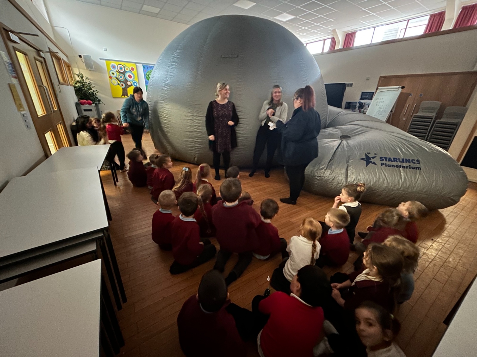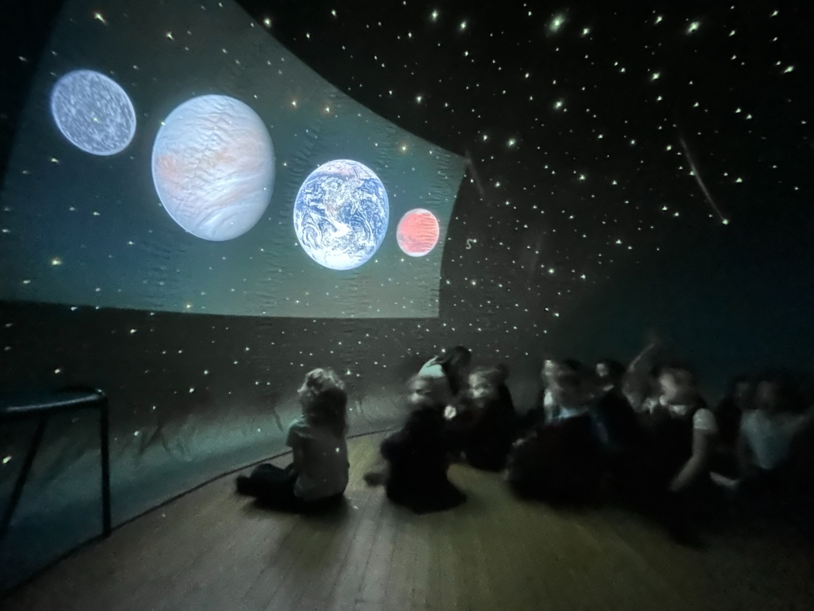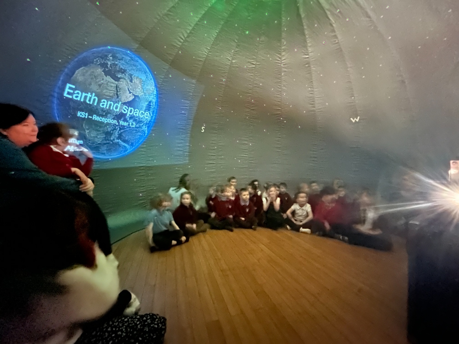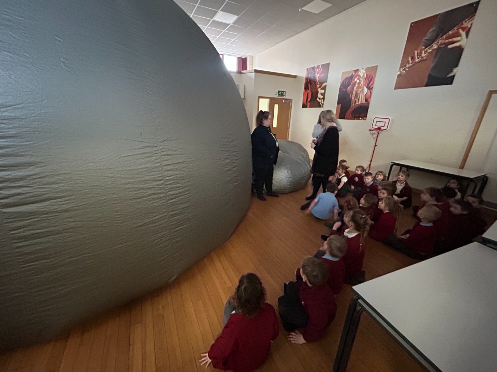 The children in Mrs Stanton and Mrs North's class enjoyed their visit from the Starlincs Planetarium. They showcased their learning about space, including naming the planets and facts about them, astronauts, the sun, moon and looking at the different constellations in the night sky.
