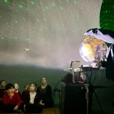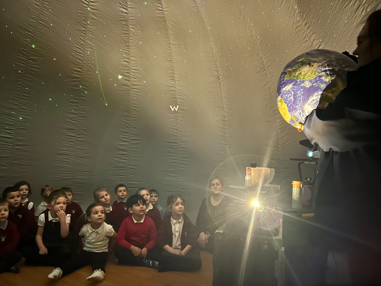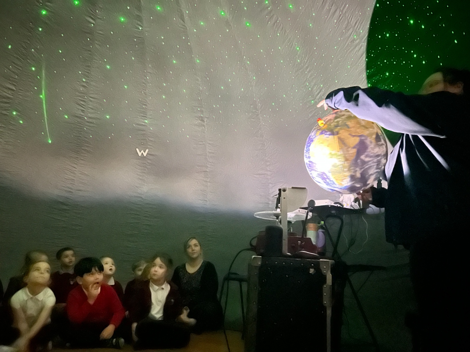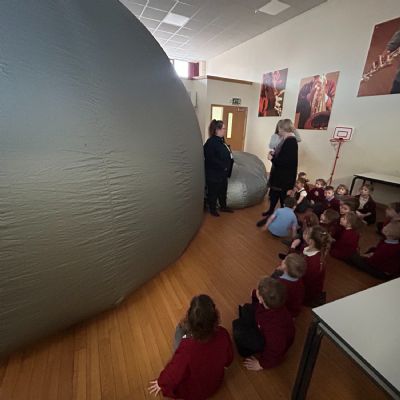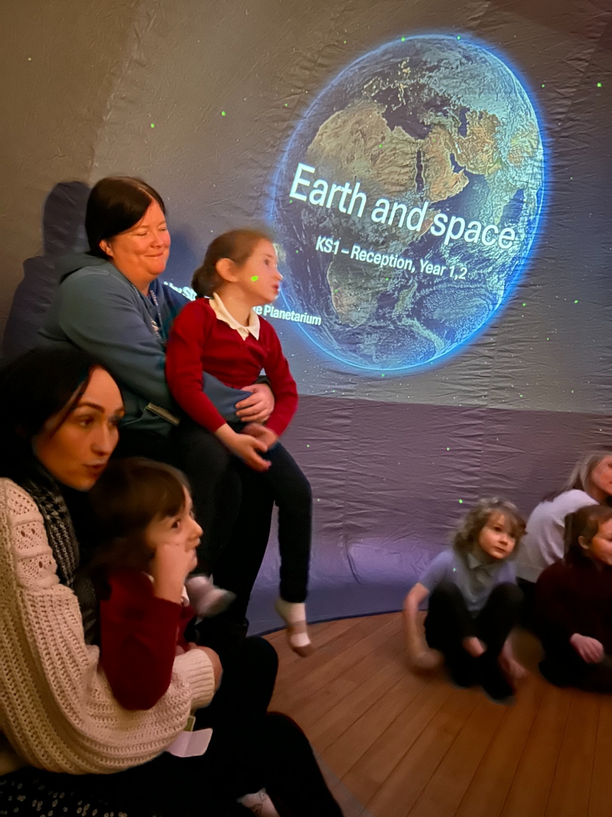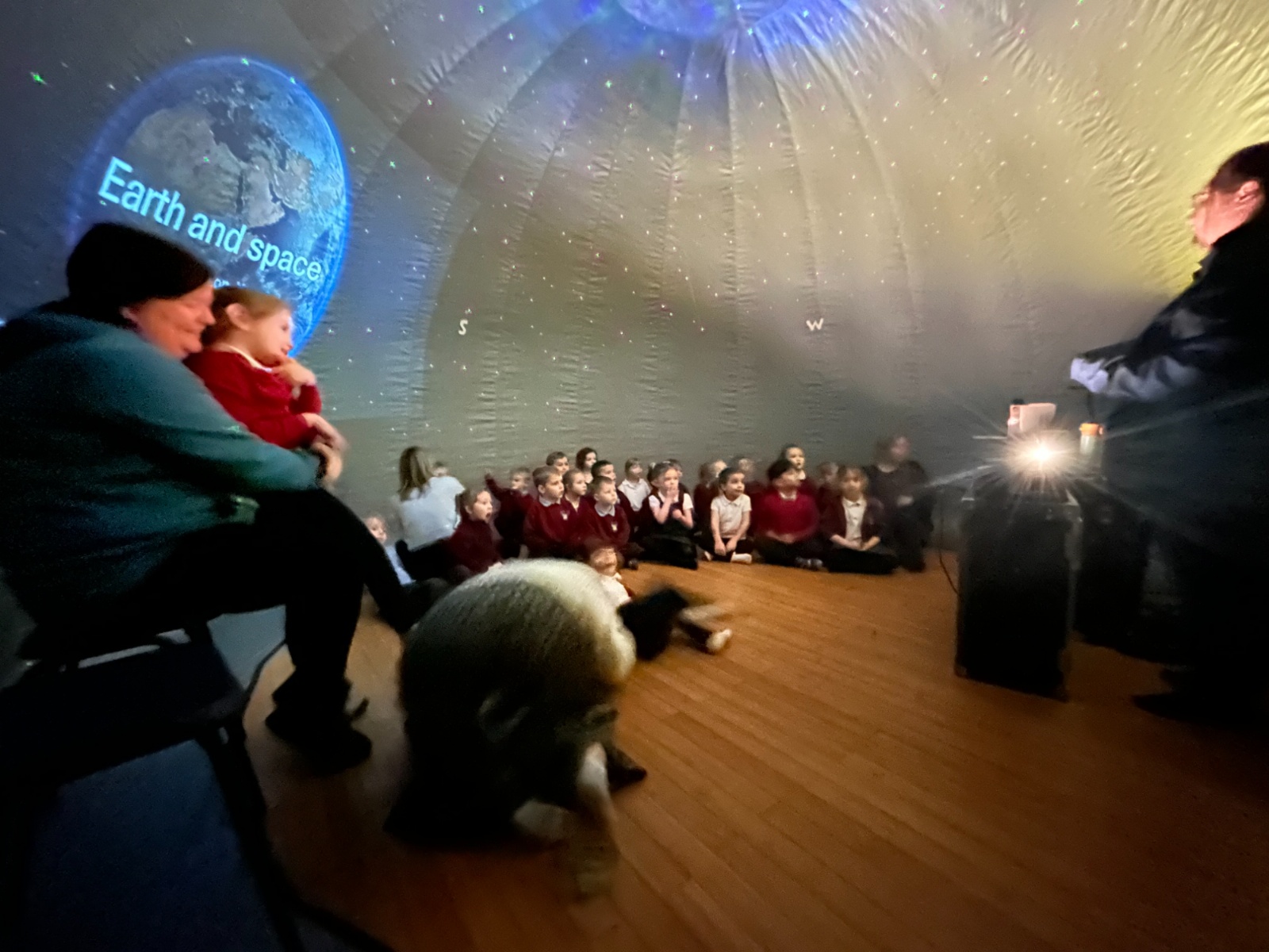 The children in Mrs Stanton and Mrs North's class enjoyed their visit from the Starlincs Planetarium. They showcased their learning about space, including naming the planets and facts about them, astronauts, the sun, moon and looking at the different constellations in the night sky.