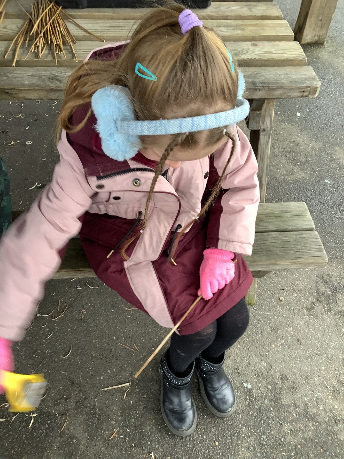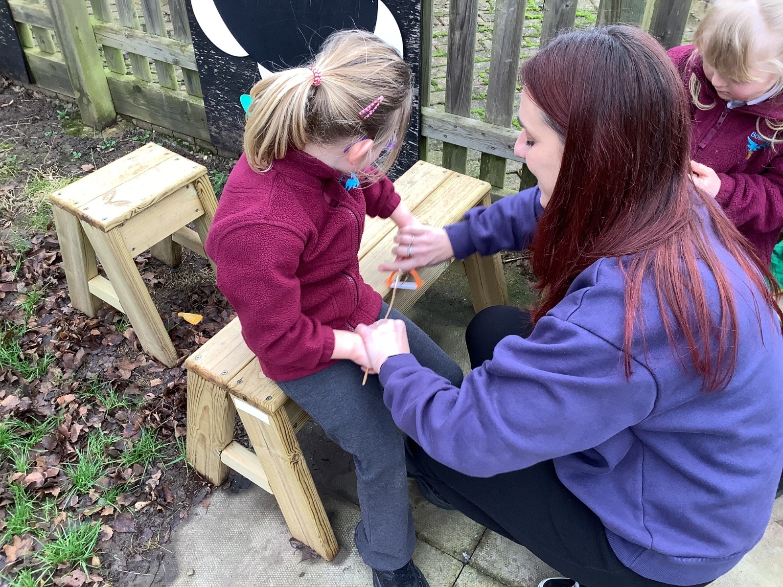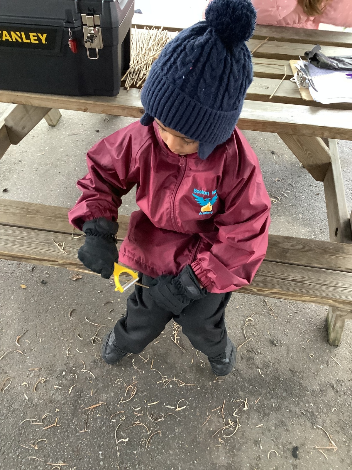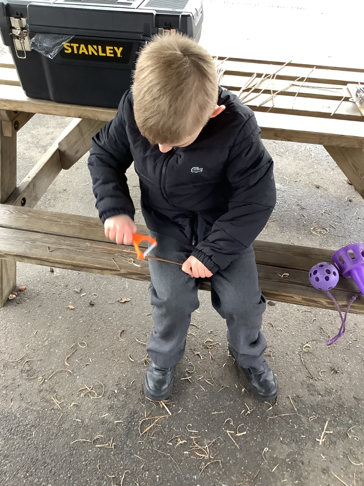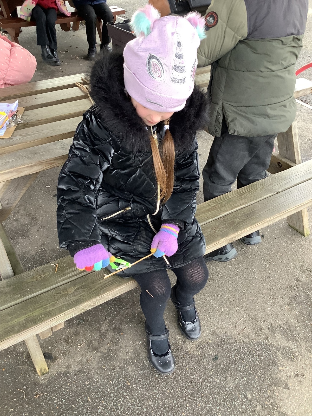 The children in Year 1 practised their whittling skills, using a vegetable peeler to scrape off the bark on a willow stick. They were very careful and listened to advice given on how to improve their technique.
