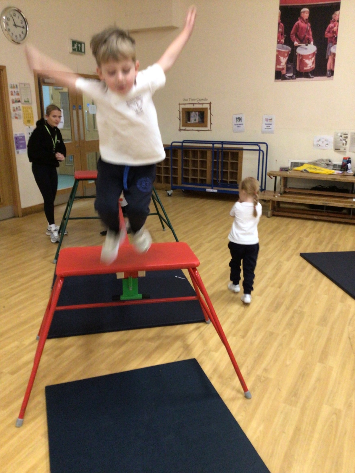 The children have been developing their confidence and physical skills during PE as they explored the apparatus safely and sensibly. With careful guidance, the children learned how to use the equipment correctly, taking turns, listening closely to instructions and supporting one another. They practised climbing, balancing, jumping and landing safely, showing excellent awareness of space and control of their bodies. It has been wonderful to see so many children challenge themselves and overcome their fears.