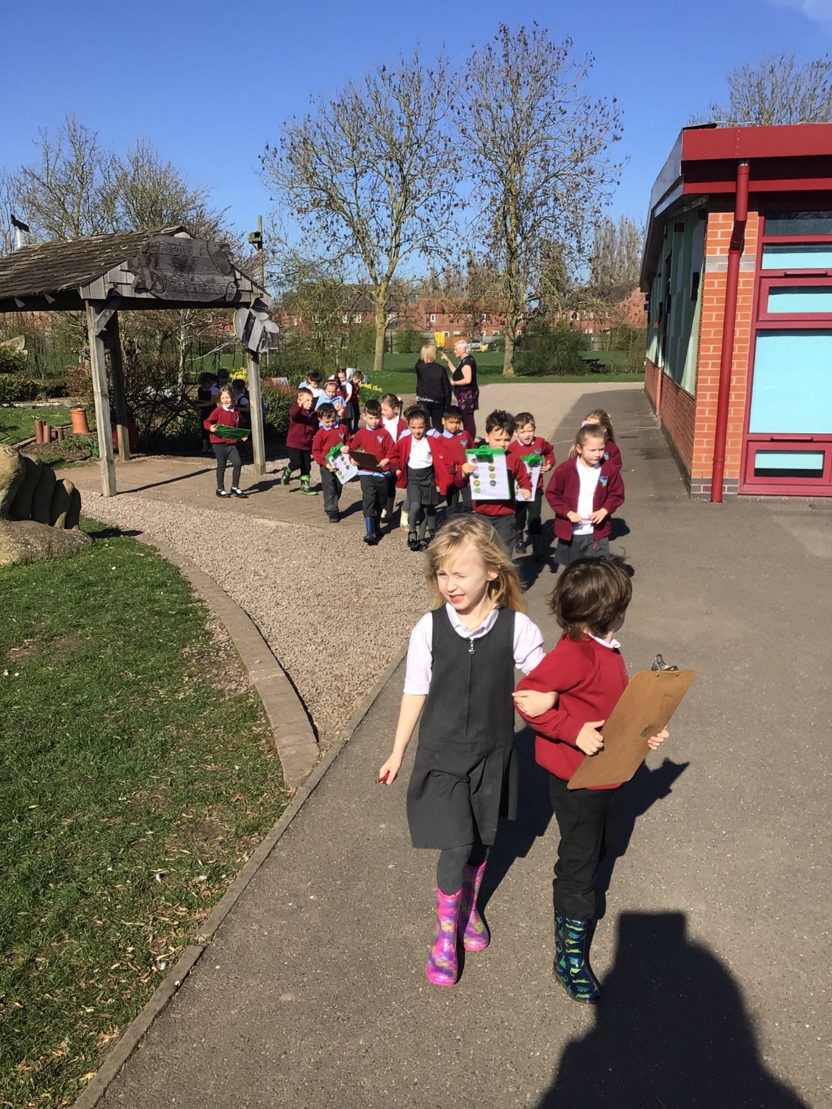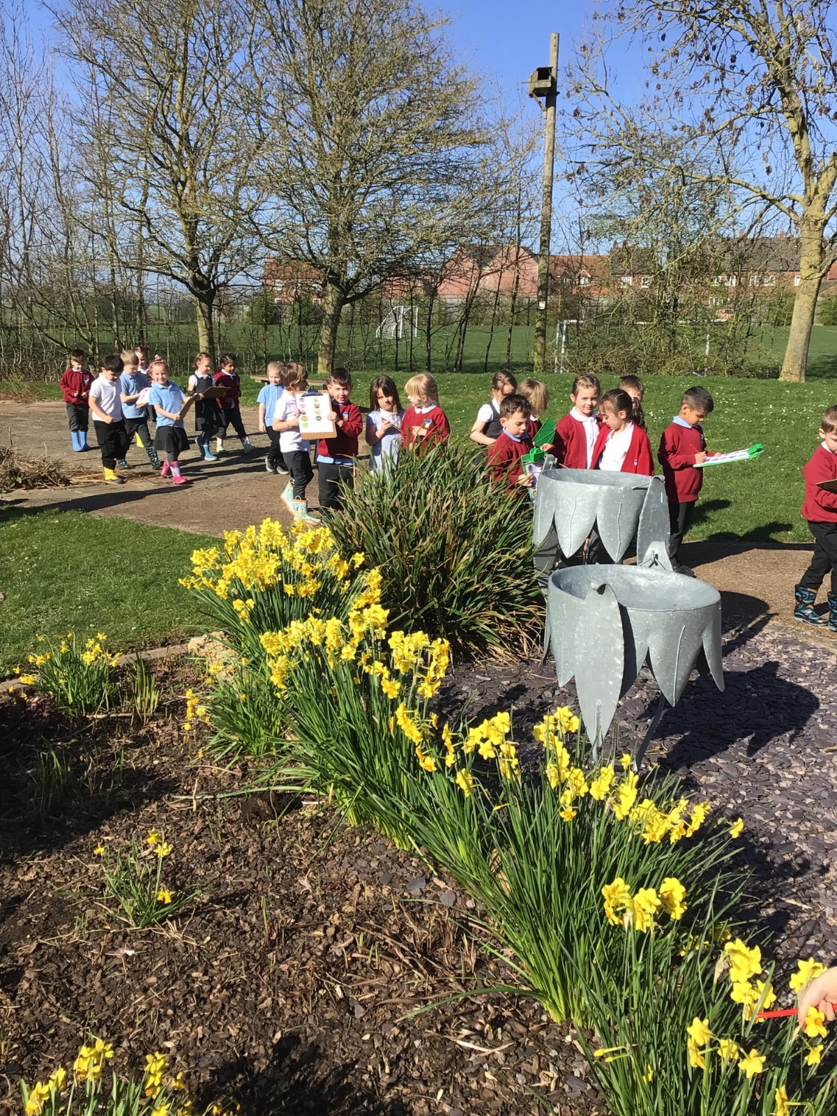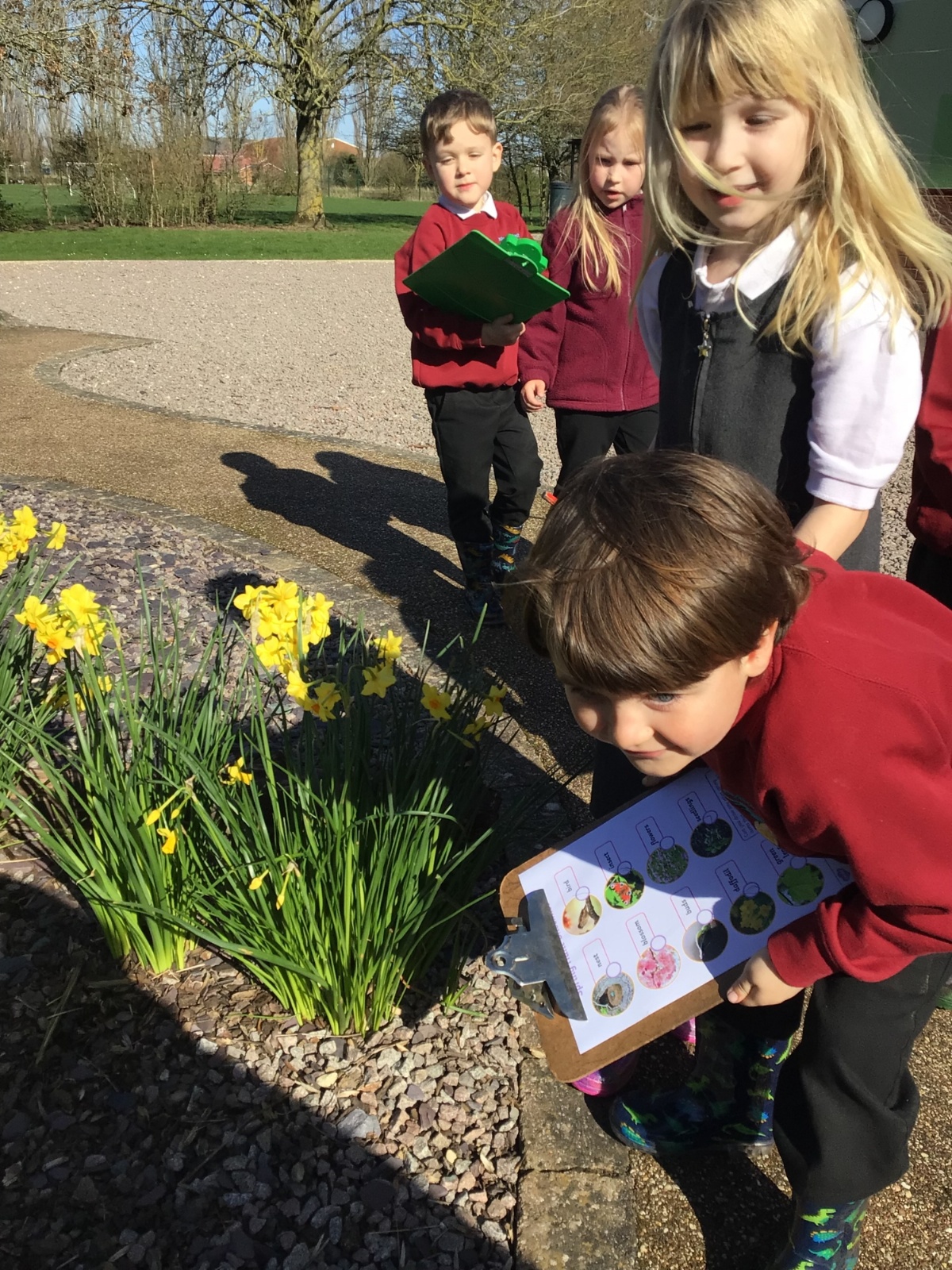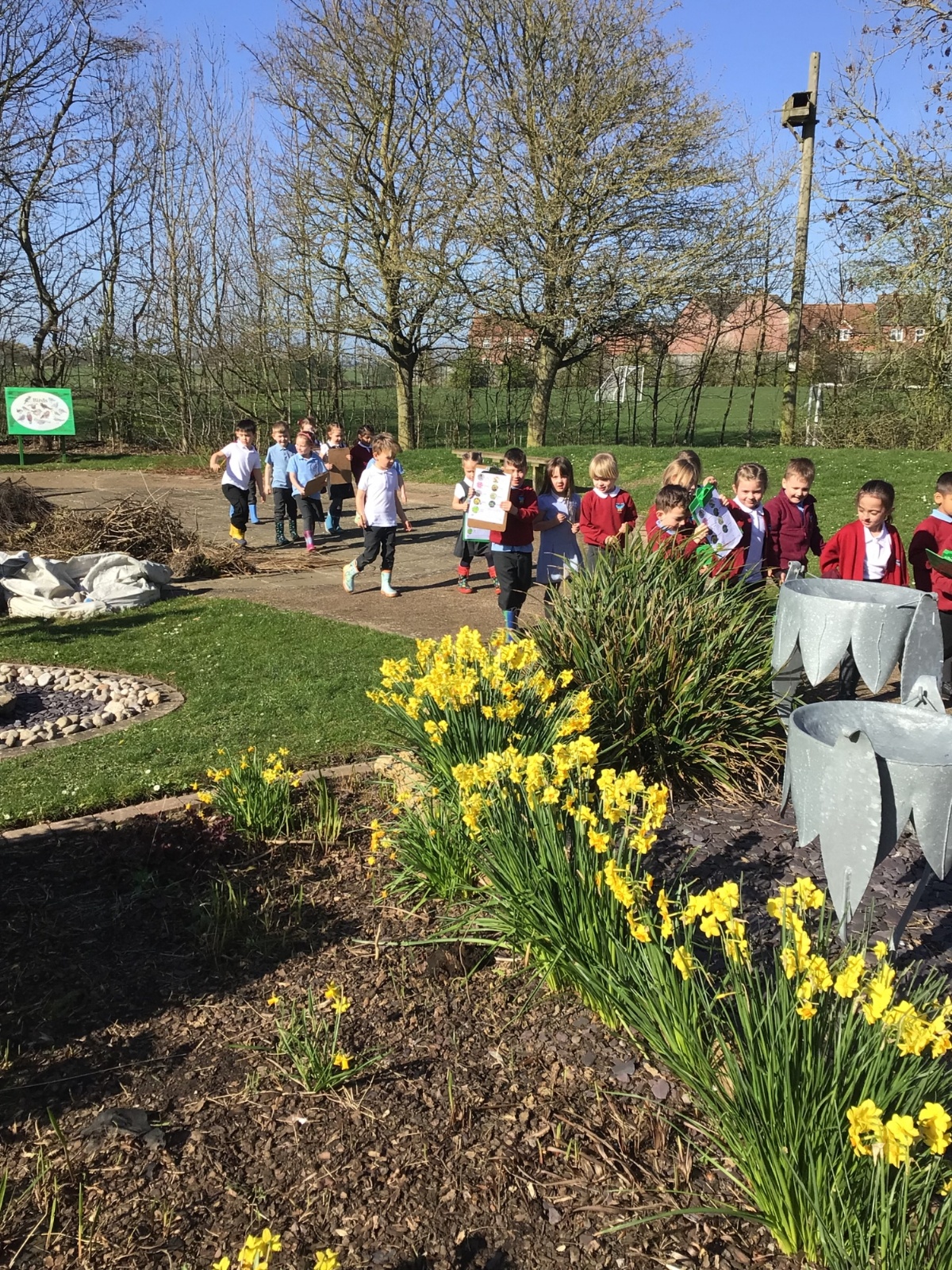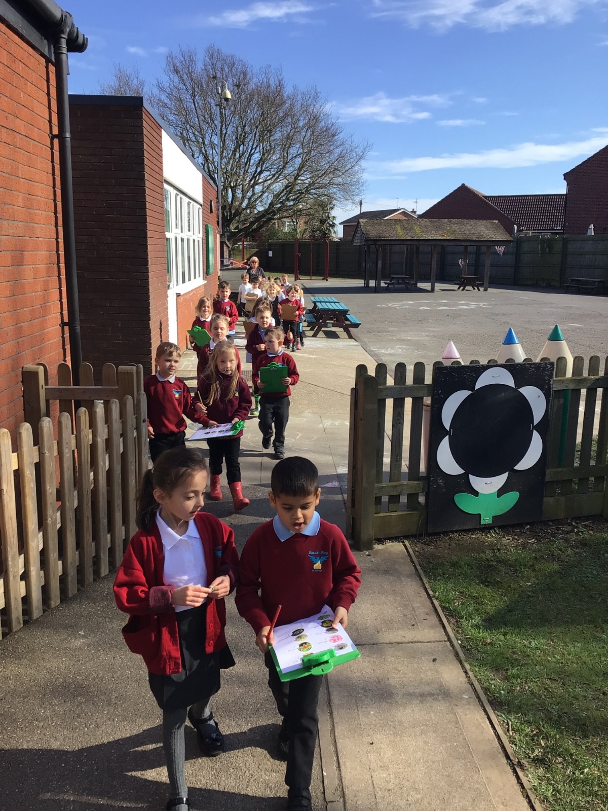 On our Signs of Spring Walk, the children explored the outdoors to look for clues that spring has arrived. Before setting off, they were given a checklist to help guide their observations. As they walked, the children carefully looked around for signs such as blooming flowers, budding leaves, birds, insects, and seedlings. Each time they spotted something from their list, they ticked it off discovering how many signs of spring they could find. Well done everyone!