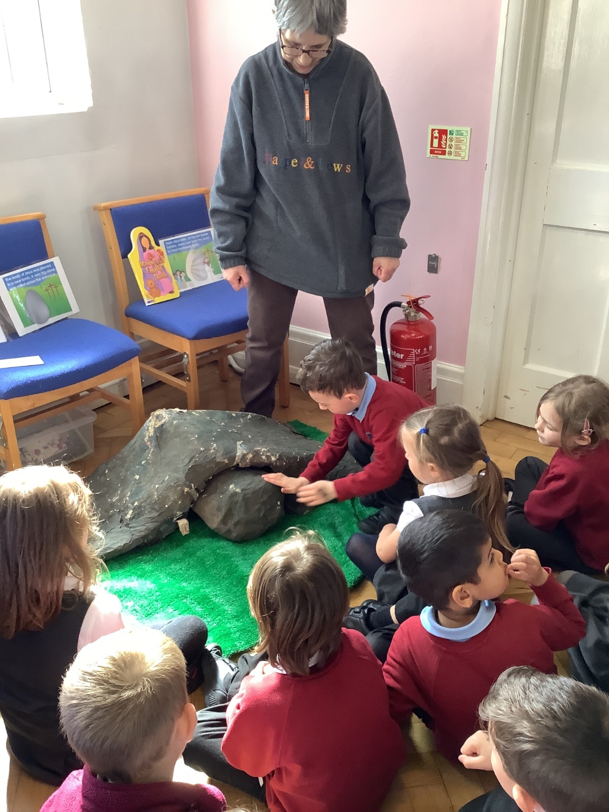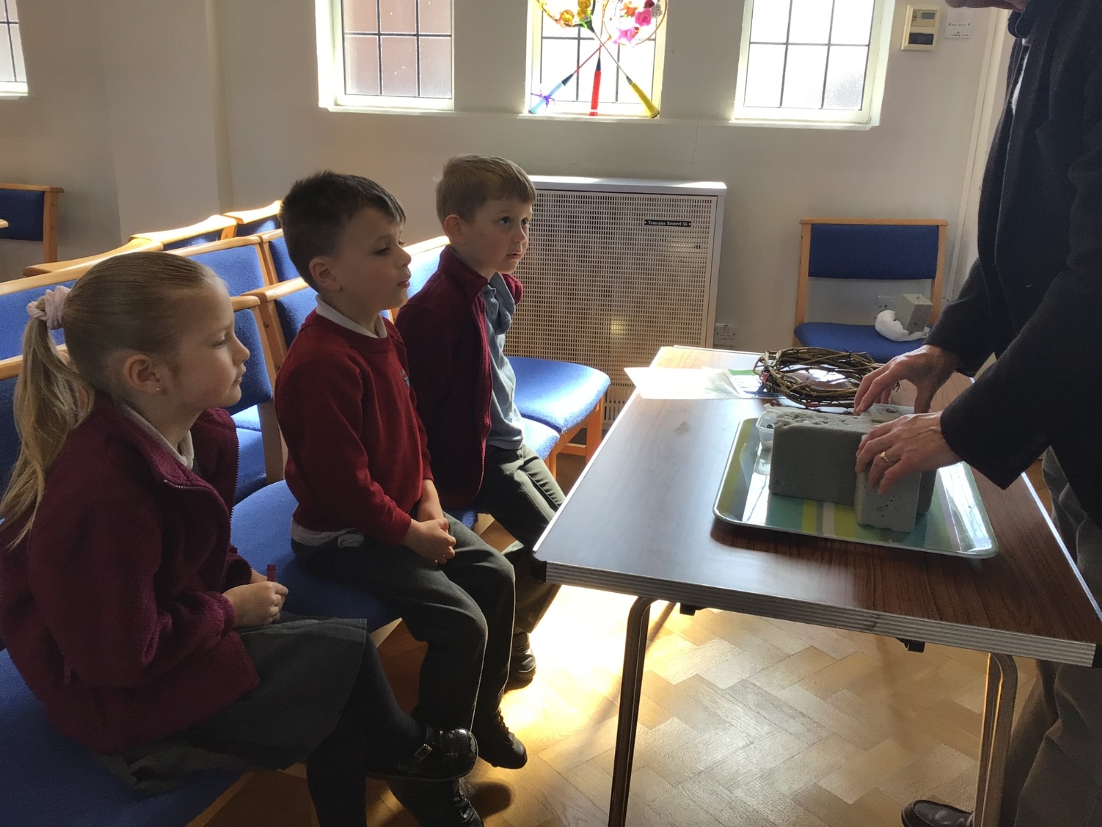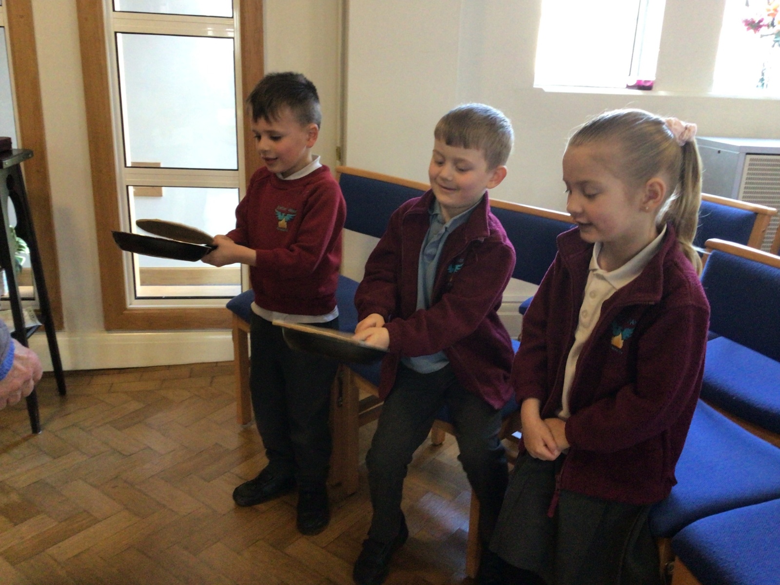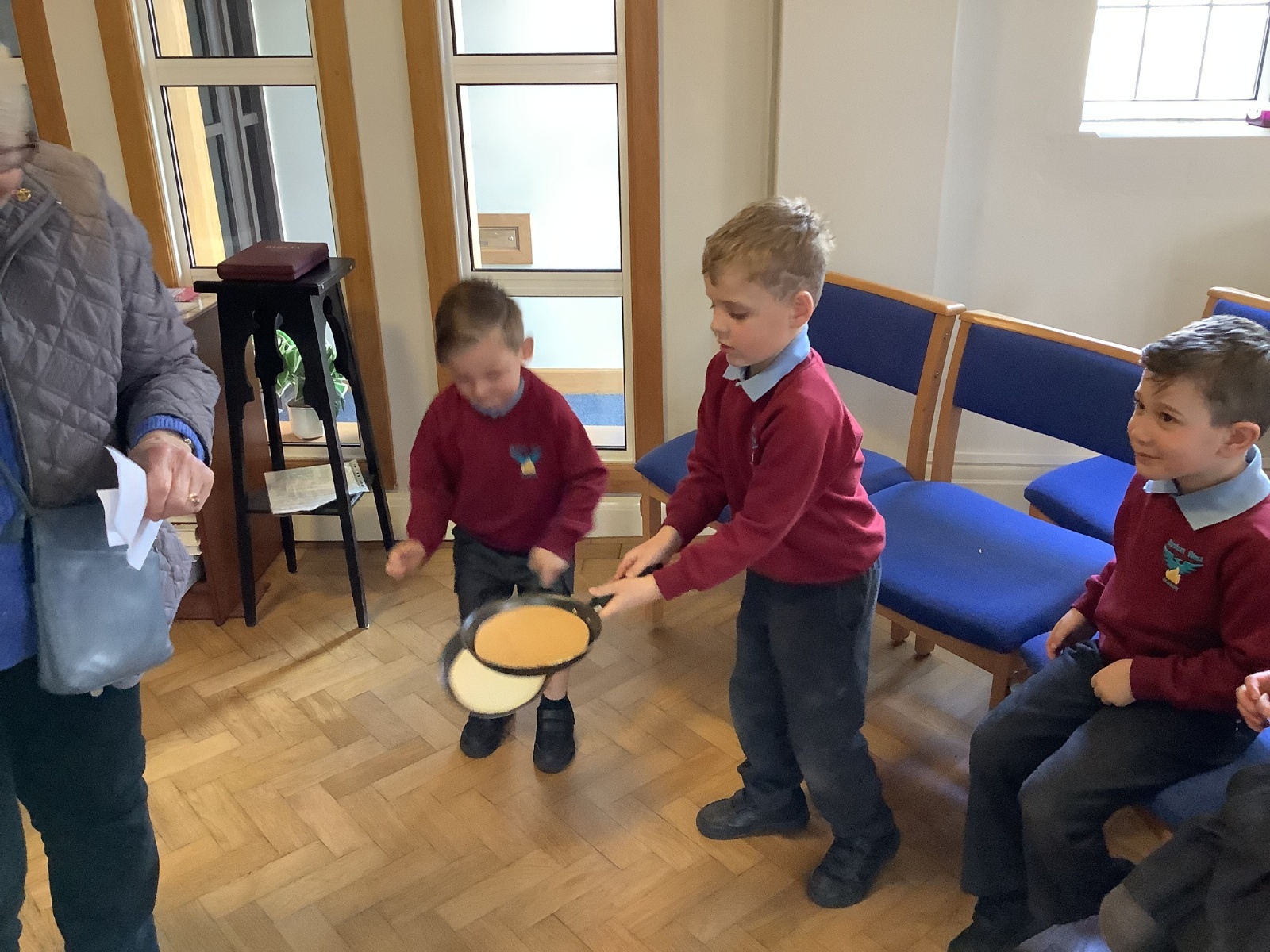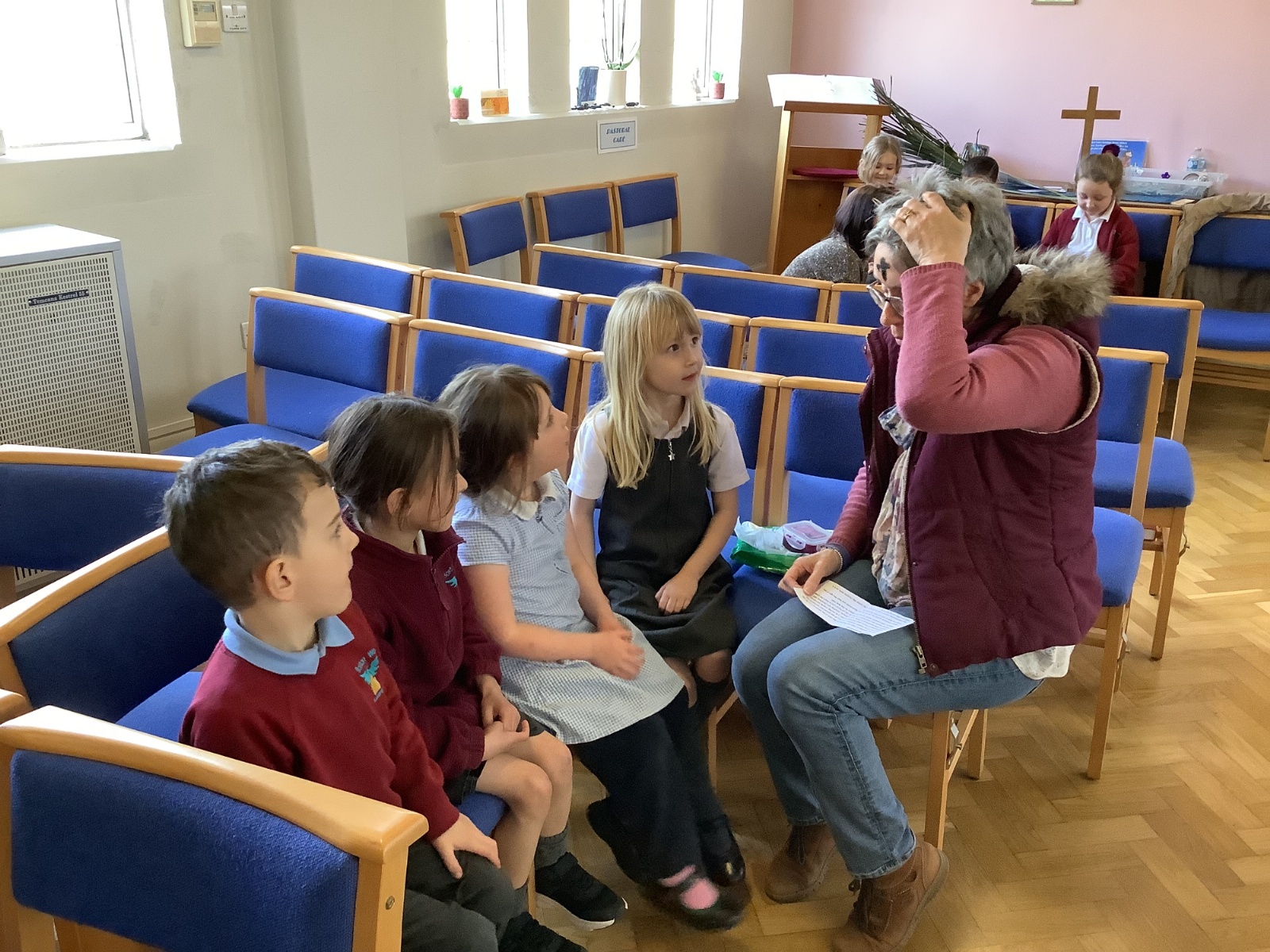 The children went on their first trip to the Zion Methodist Church. They learnt all about the Easter story and took part in lots of activities which helped tell the story. They flipped pancakes for Shrove Tuesday, had a cross drawn on them, waved palm leaves, washed some 'feet' like Jesus, had some bread for the last supper, put nails in a cross then finally saw the tomb where Jesus laid. It's was a lovely afternoon and a great first trip.