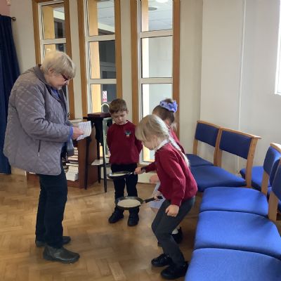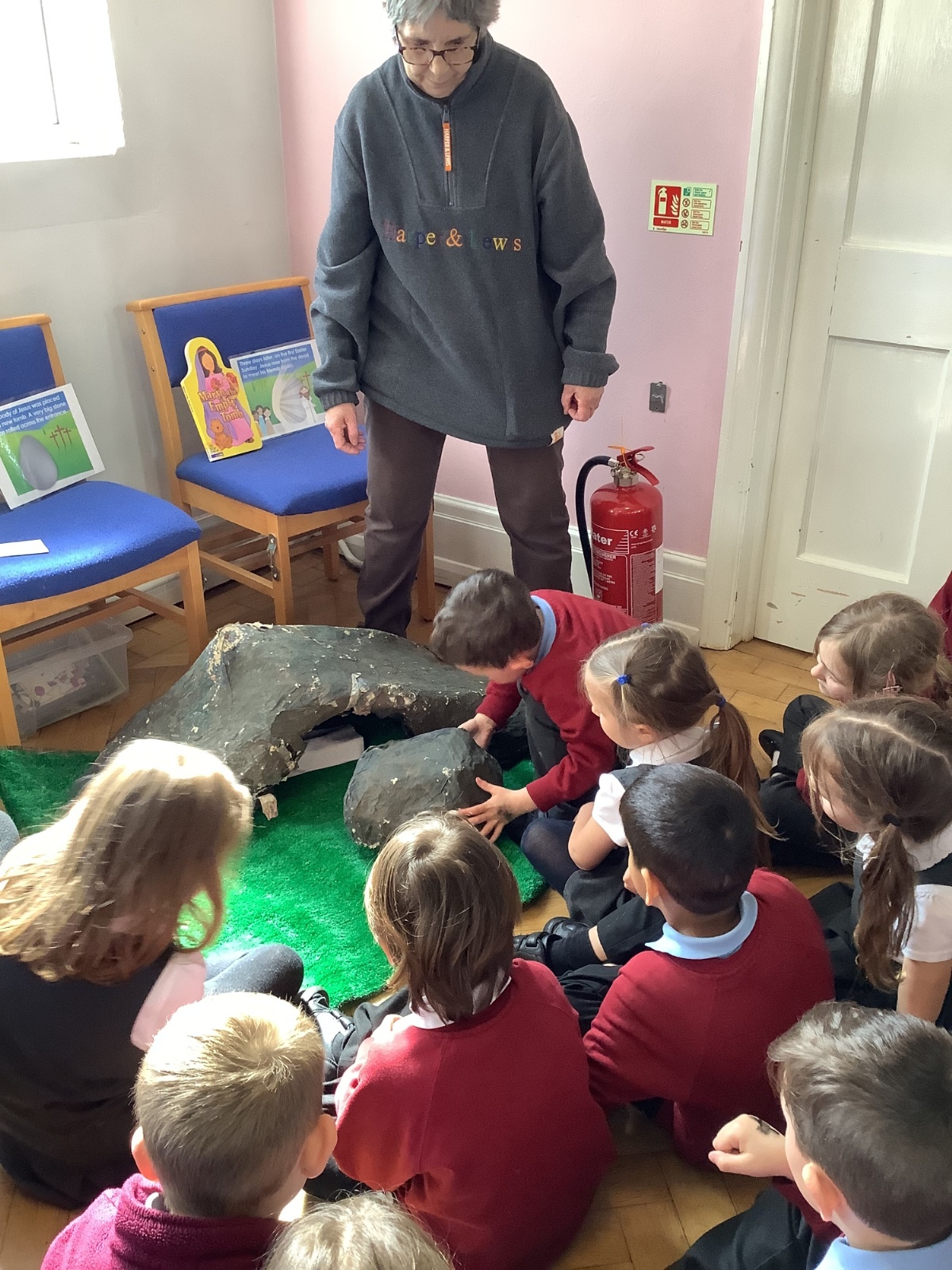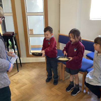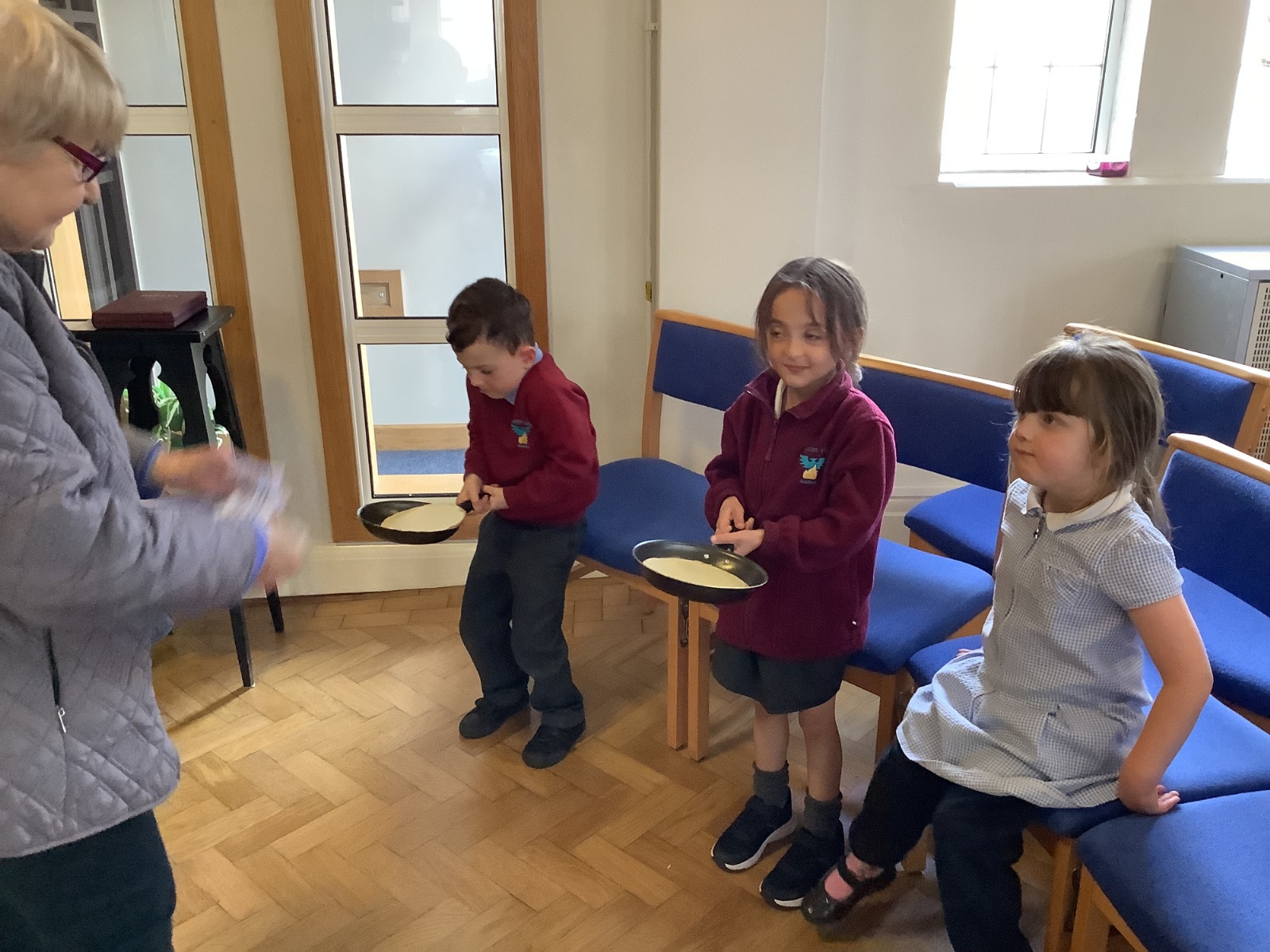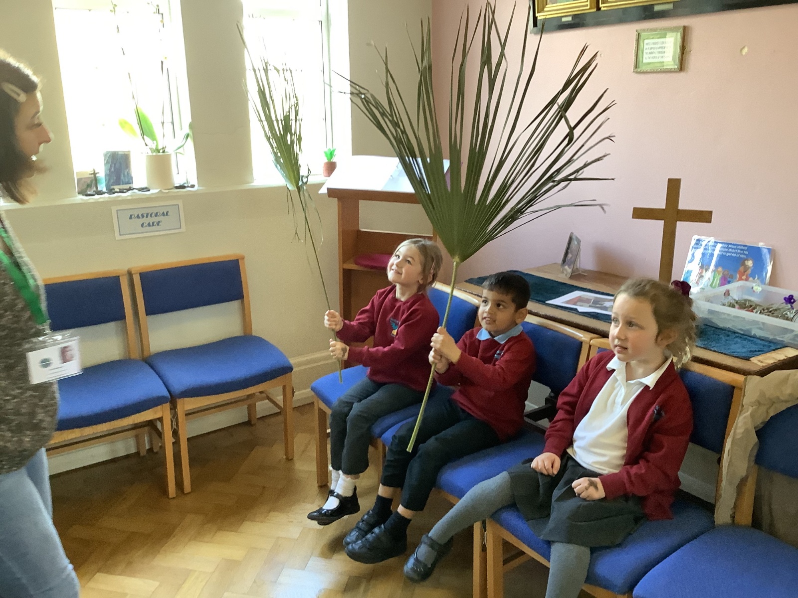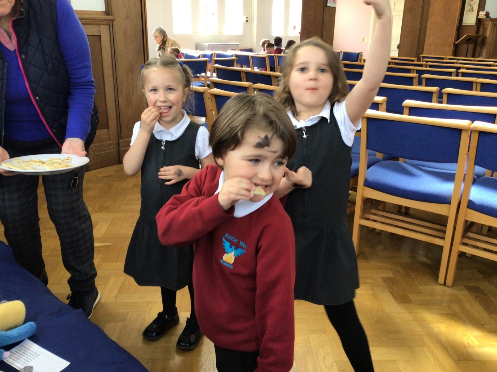 The children went on their first trip to the Zion Methodist Church. They learnt all about the Easter story and took part in lots of activities which helped tell the story. They flipped pancakes for Shrove Tuesday, had a cross drawn on them, waved palm leaves, washed some 'feet' like Jesus, had some bread for the last supper, put nails in a cross then finally saw the tomb where Jesus laid. It's was a lovely afternoon and a great first trip.