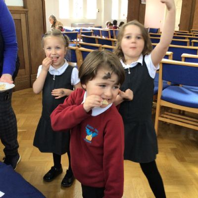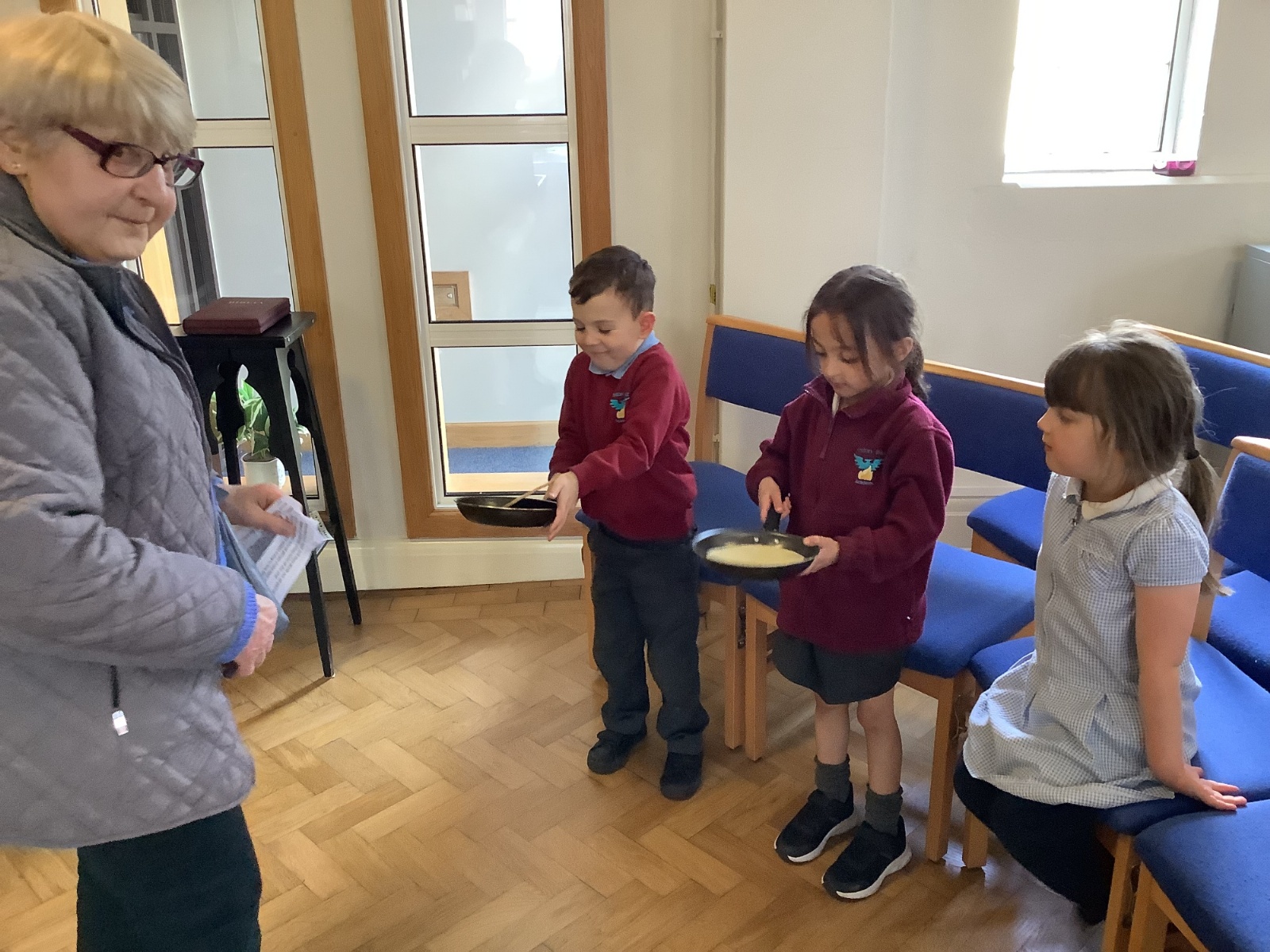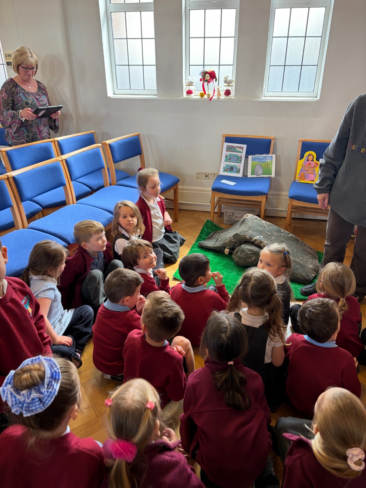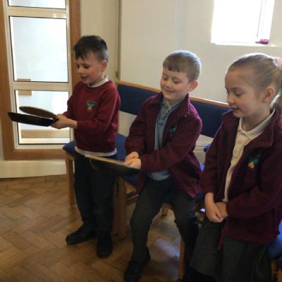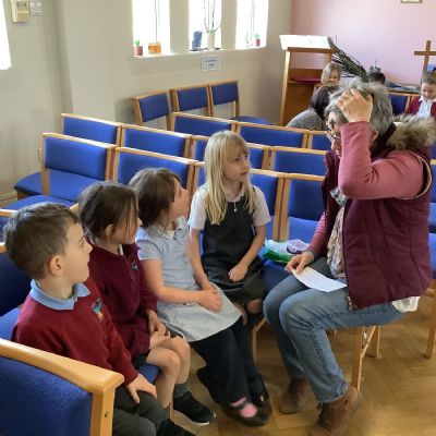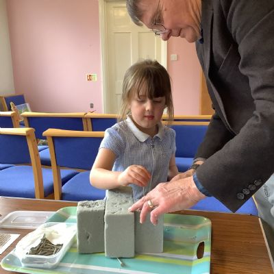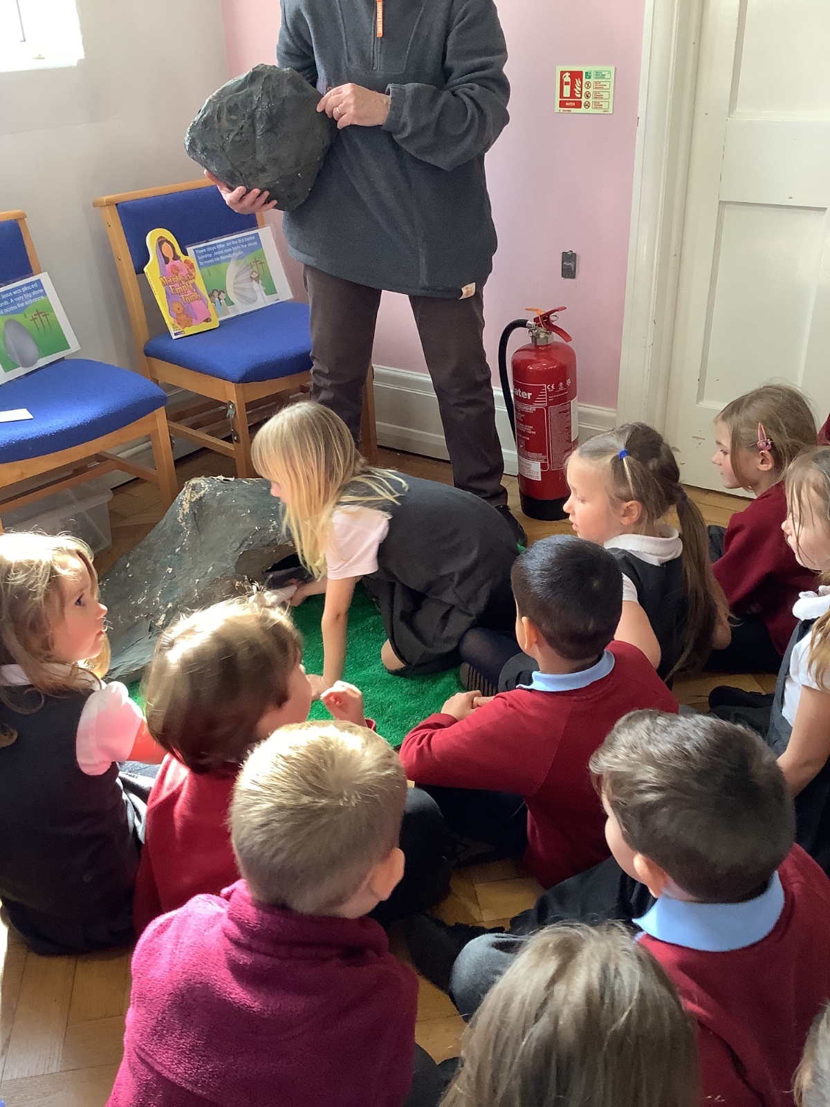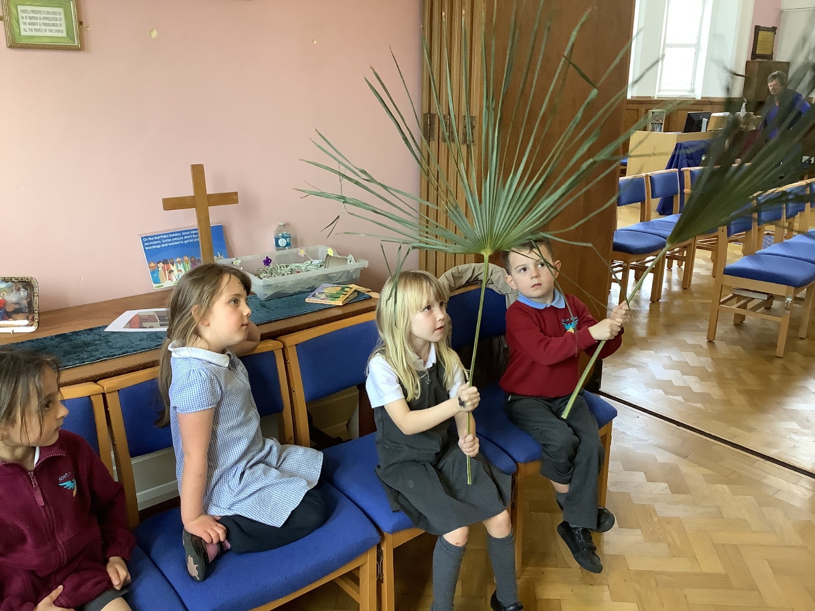The children went on their first trip to the Zion Methodist Church. They learnt all about the Easter story and took part in lots of activities which helped tell the story. They flipped pancakes for Shrove Tuesday, had a cross drawn on them, waved palm leaves, washed some 'feet' like Jesus, had some bread for the last supper, put nails in a cross then finally saw the tomb where Jesus laid. It's was a lovely afternoon and a great first trip.