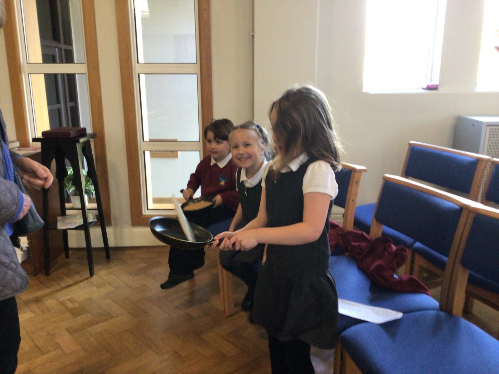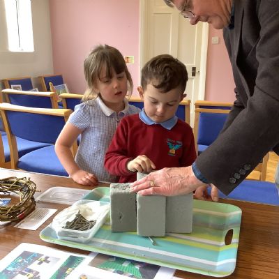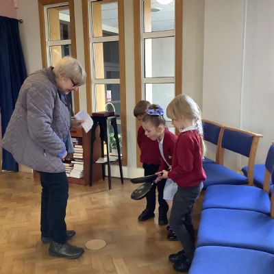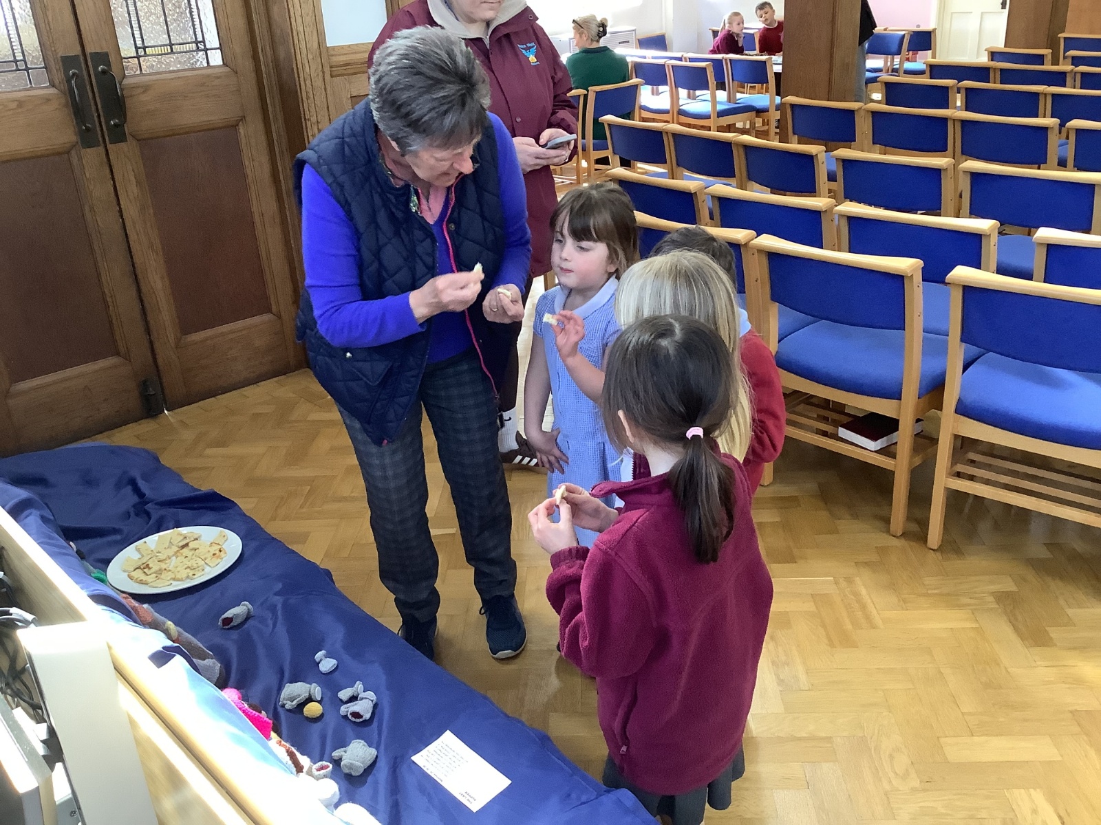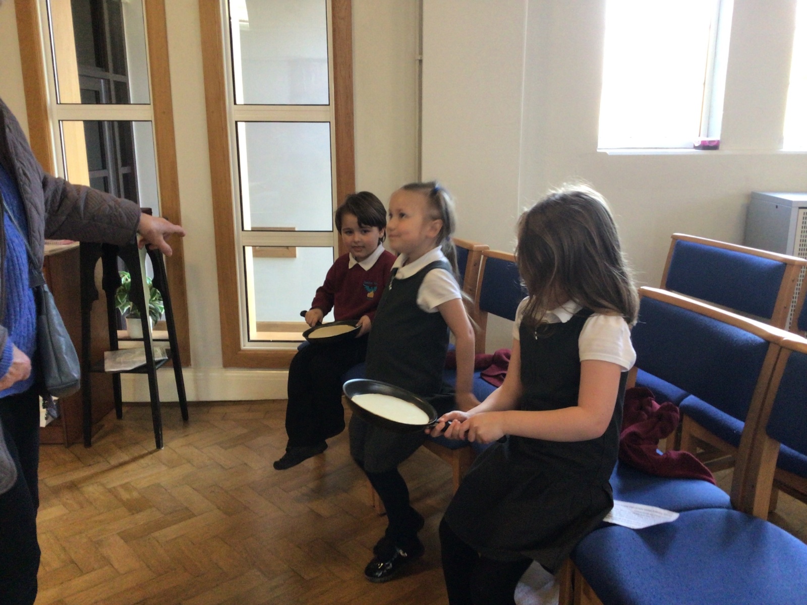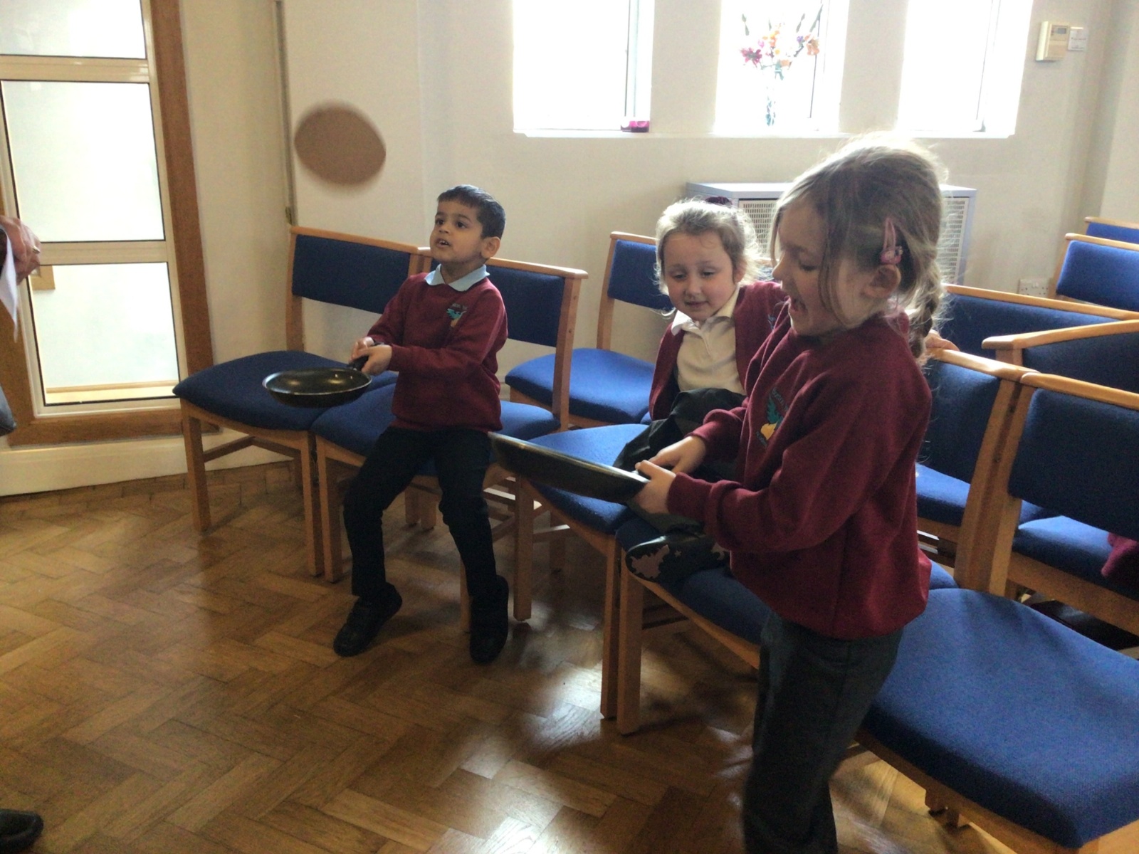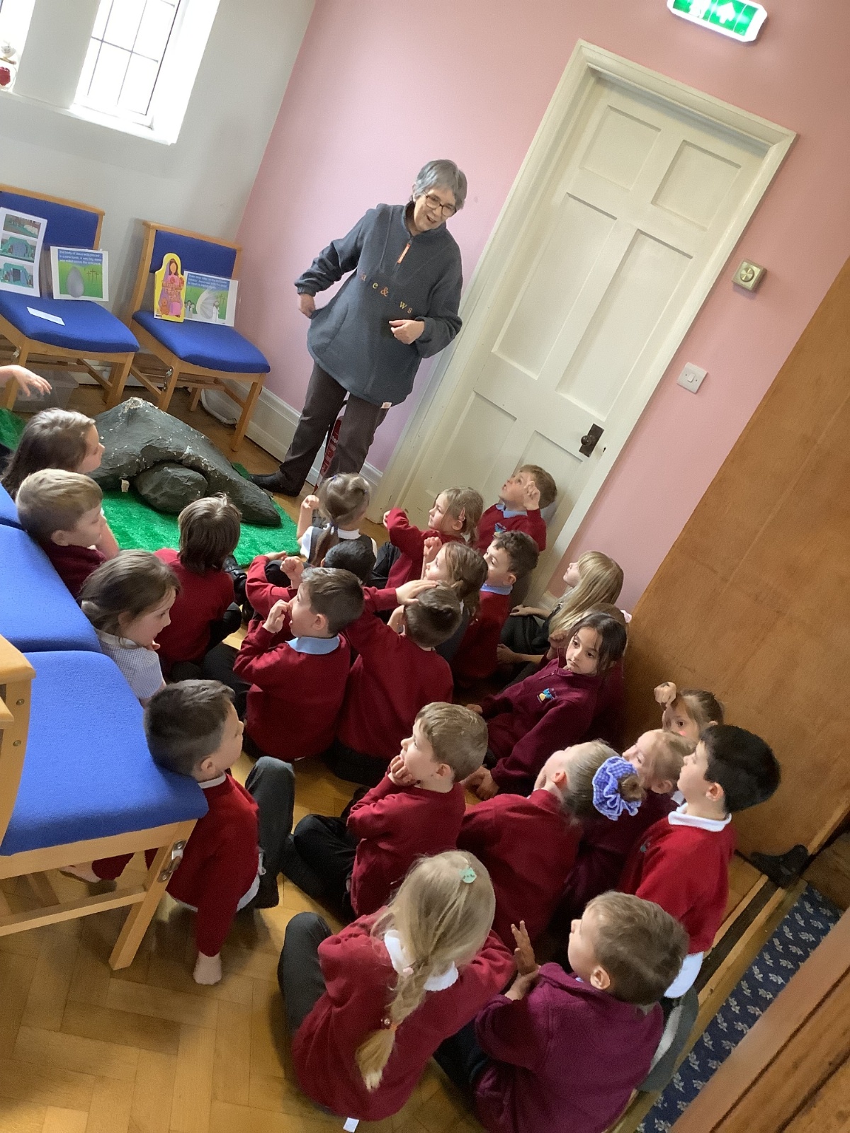 The children went on their first trip to the Zion Methodist Church. They learnt all about the Easter story and took part in lots of activities which helped tell the story. They flipped pancakes for Shrove Tuesday, had a cross drawn on them, waved palm leaves, washed some 'feet' like Jesus, had some bread for the last supper, put nails in a cross then finally saw the tomb where Jesus laid. It's was a lovely afternoon and a great first trip.