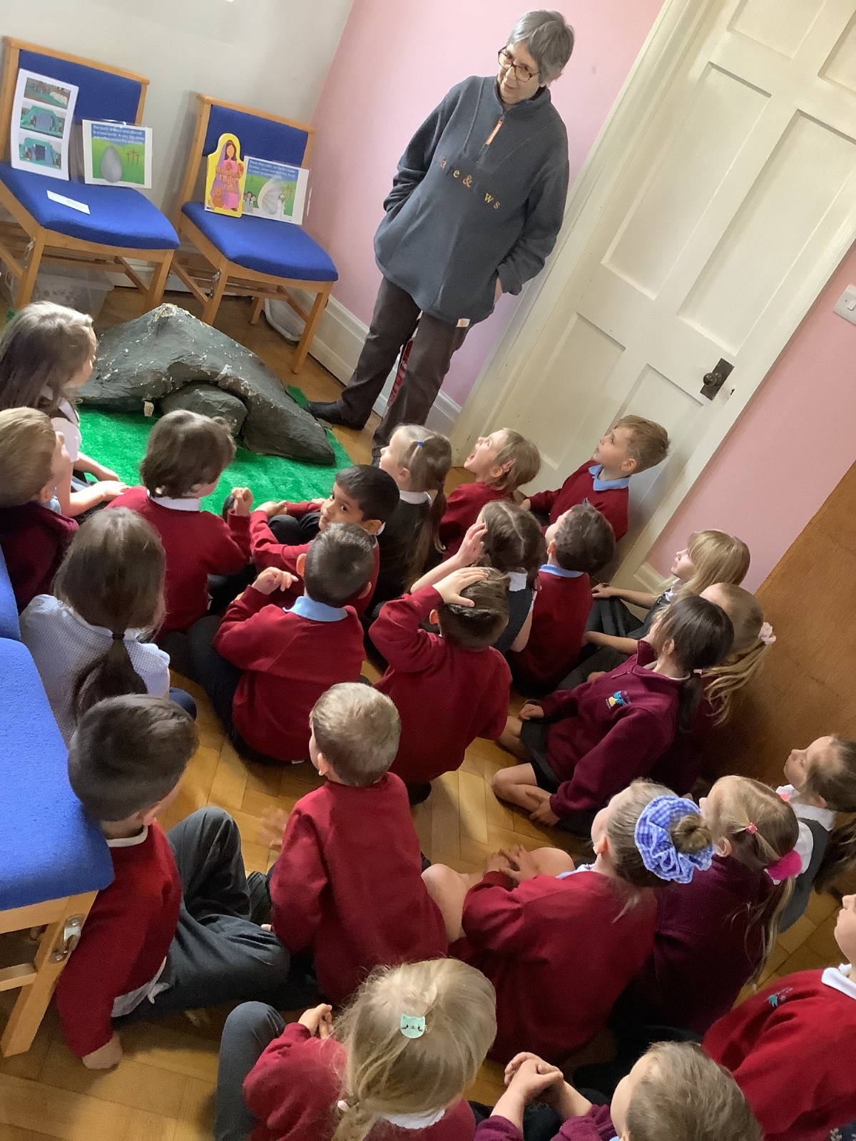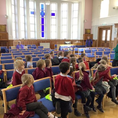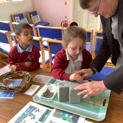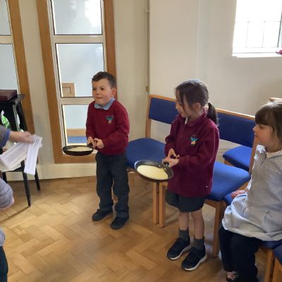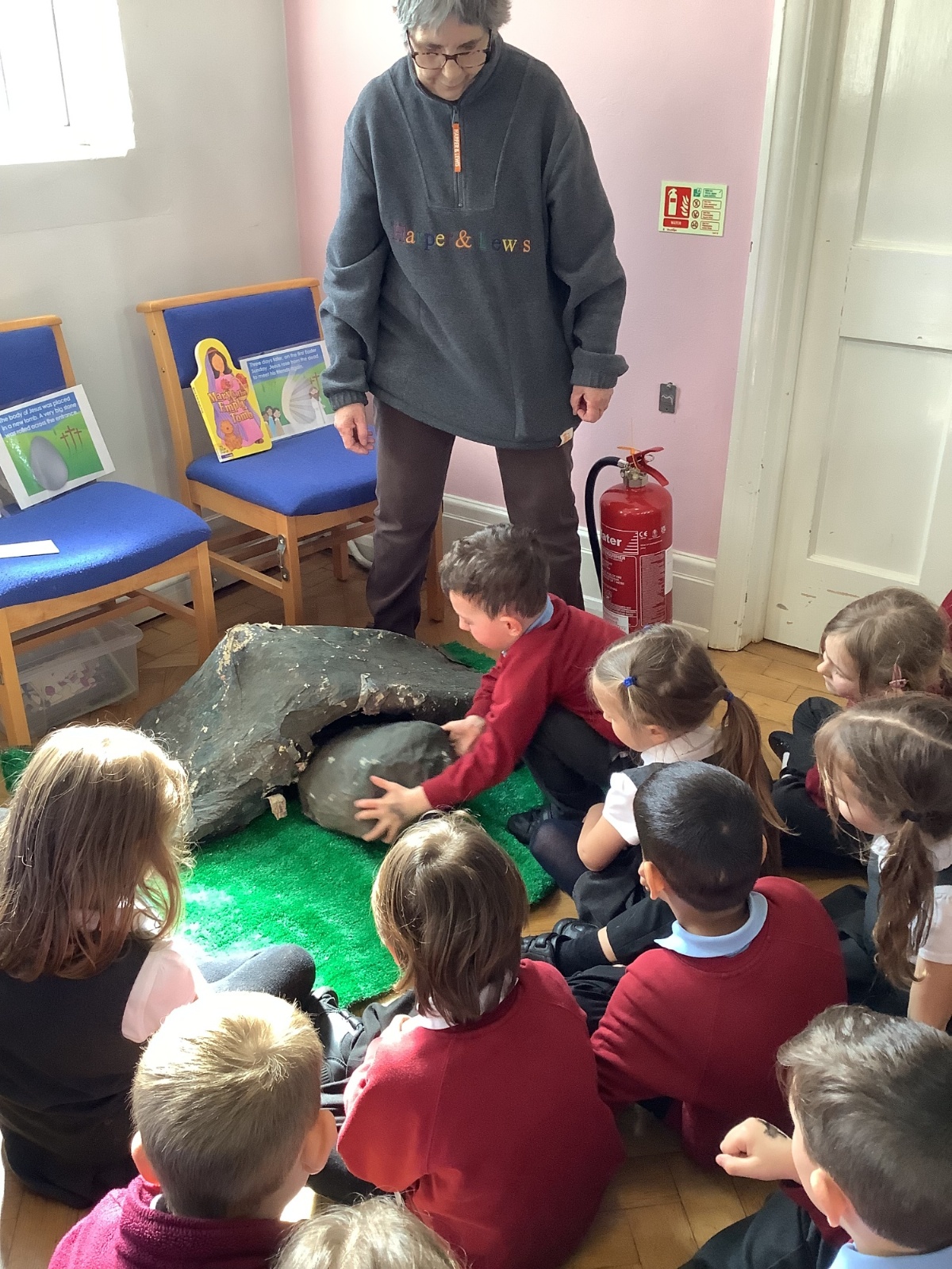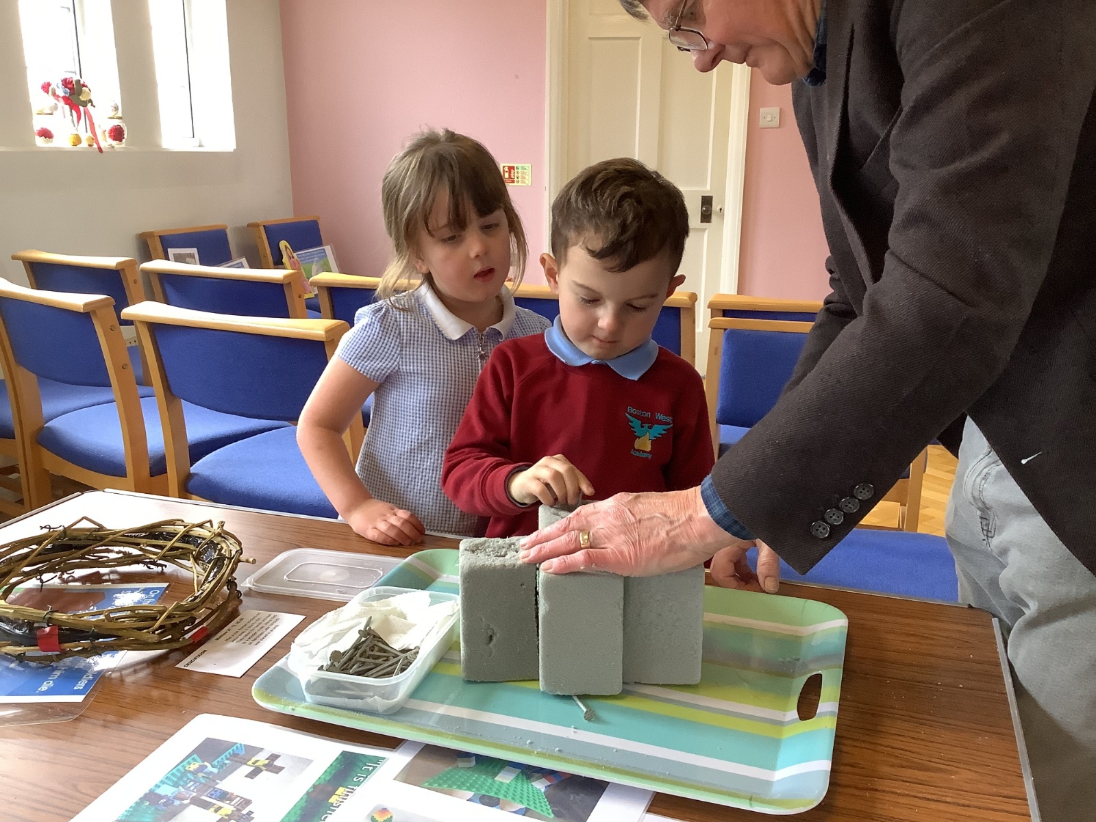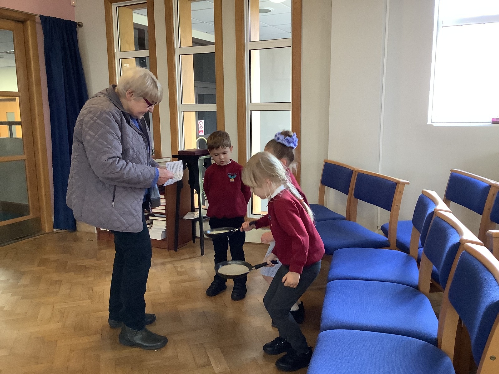 The children went on their first trip to the Zion Methodist Church. They learnt all about the Easter story and took part in lots of activities which helped tell the story. They flipped pancakes for Shrove Tuesday, had a cross drawn on them, waved palm leaves, washed some 'feet' like Jesus, had some bread for the last supper, put nails in a cross then finally saw the tomb where Jesus laid. It's was a lovely afternoon and a great first trip.