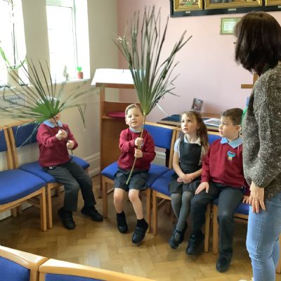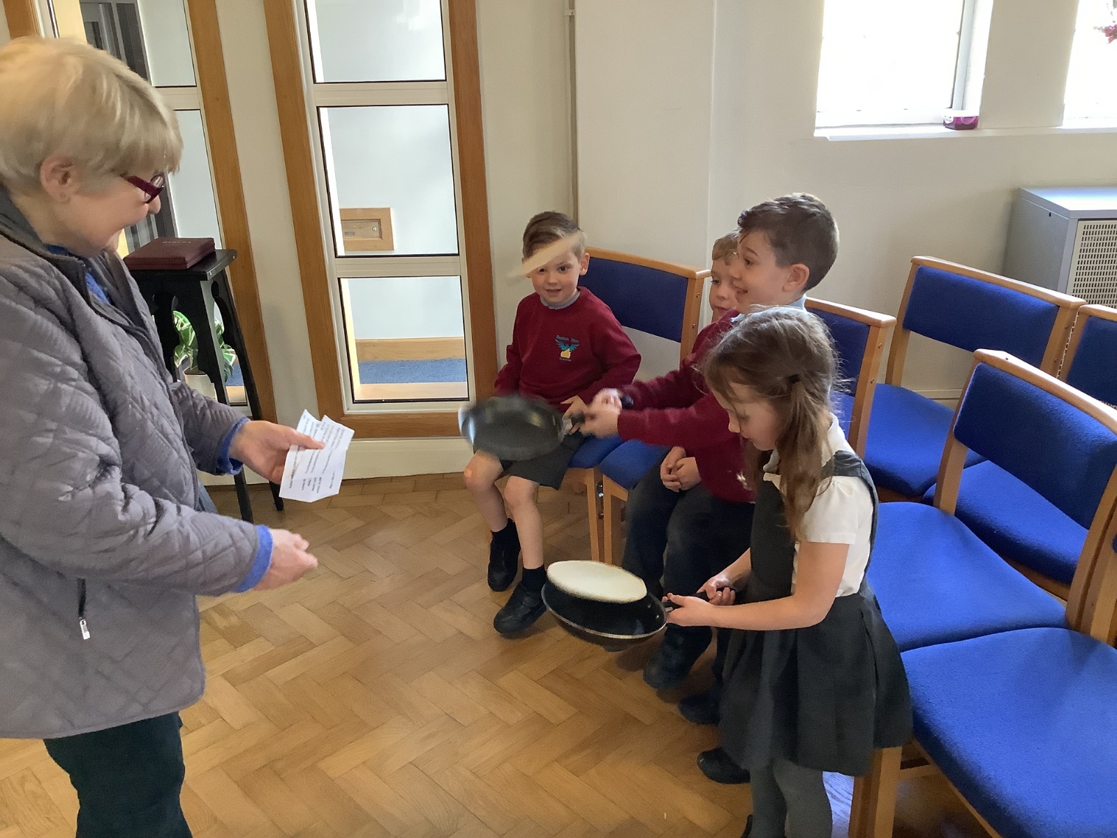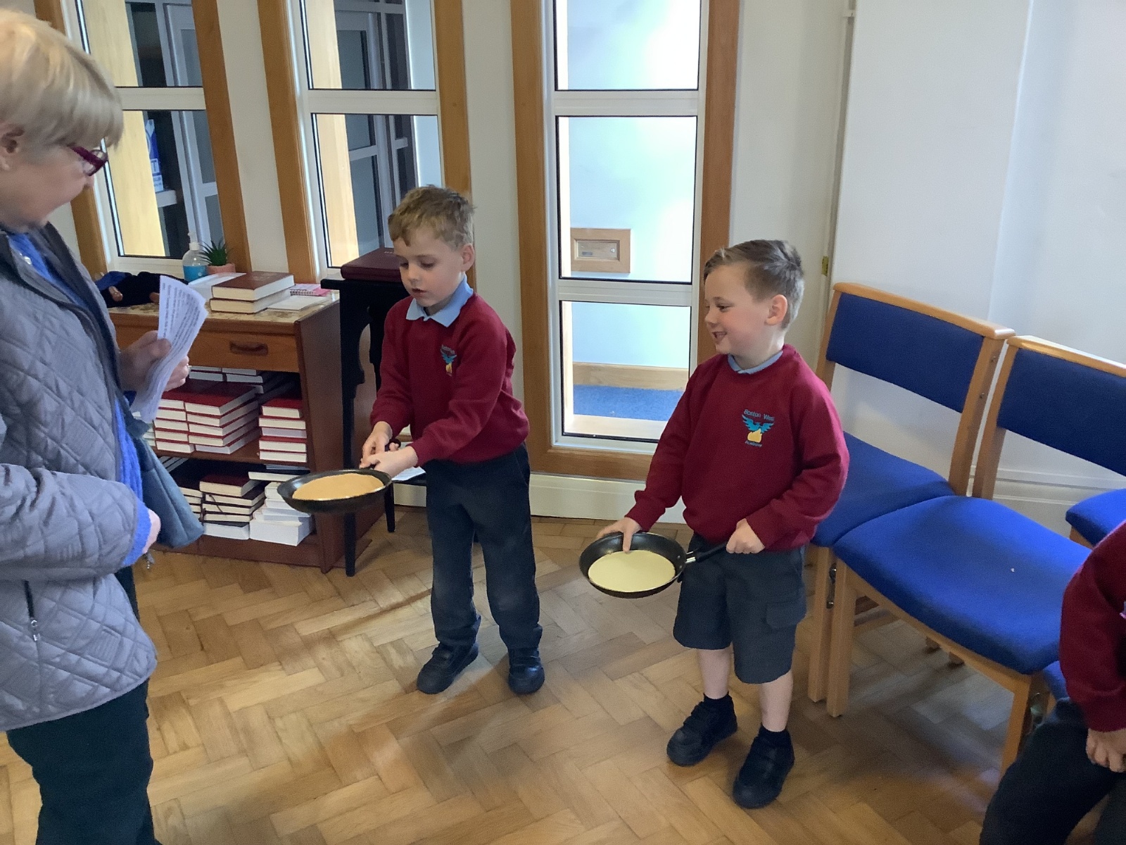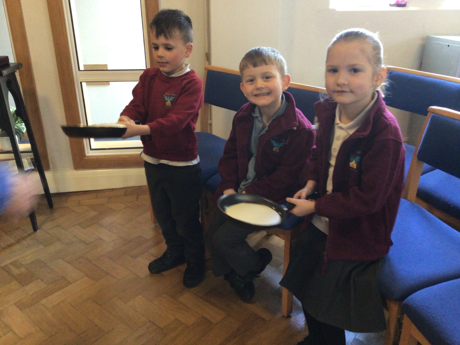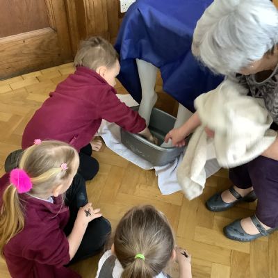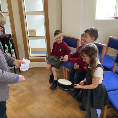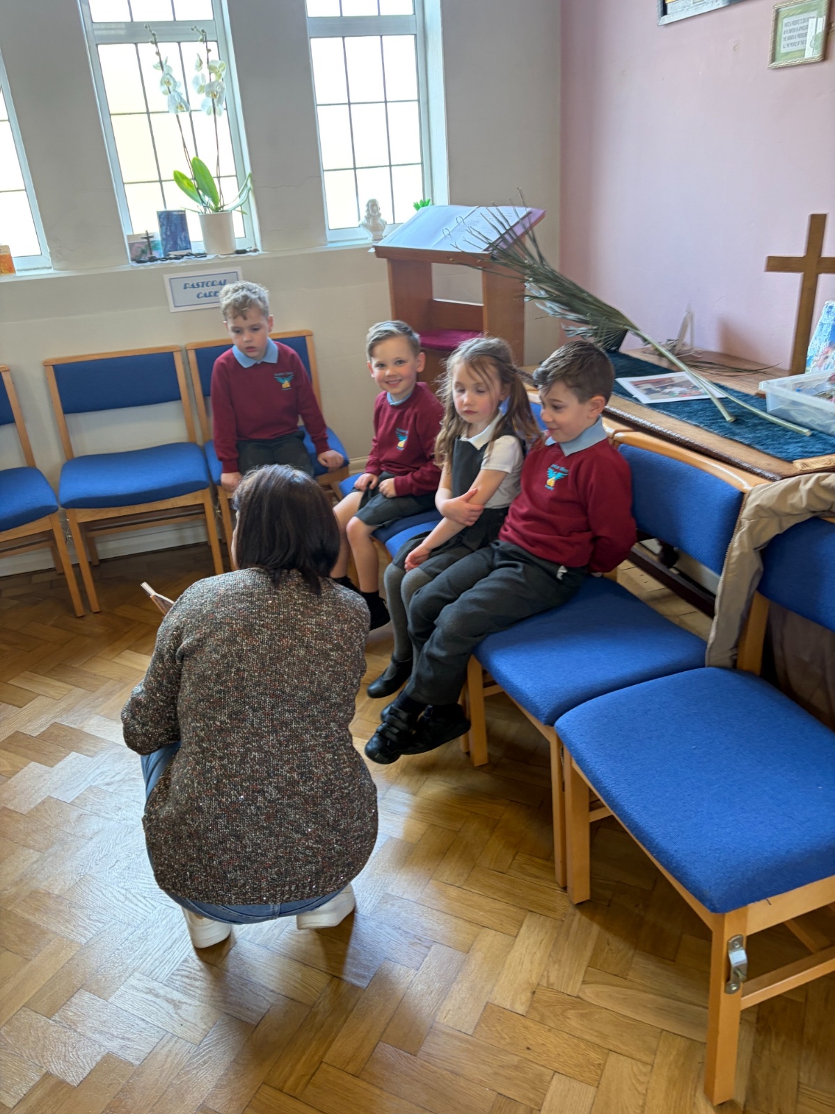 The children went on their first trip to the Zion Methodist Church. They learnt all about the Easter story and took part in lots of activities which helped tell the story. They flipped pancakes for Shrove Tuesday, had a cross drawn on them, waved palm leaves, washed some 'feet' like Jesus, had some bread for the last supper, put nails in a cross then finally saw the tomb where Jesus laid. It's was a lovely afternoon and a great first trip.
