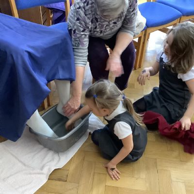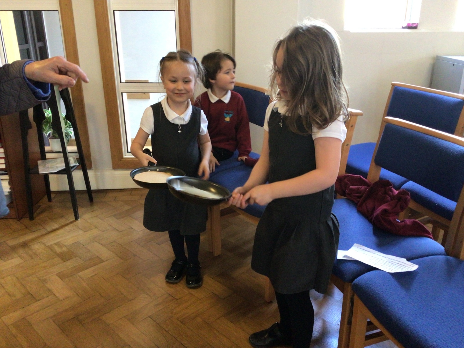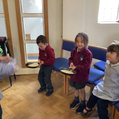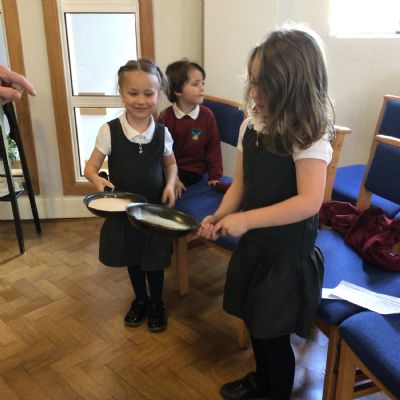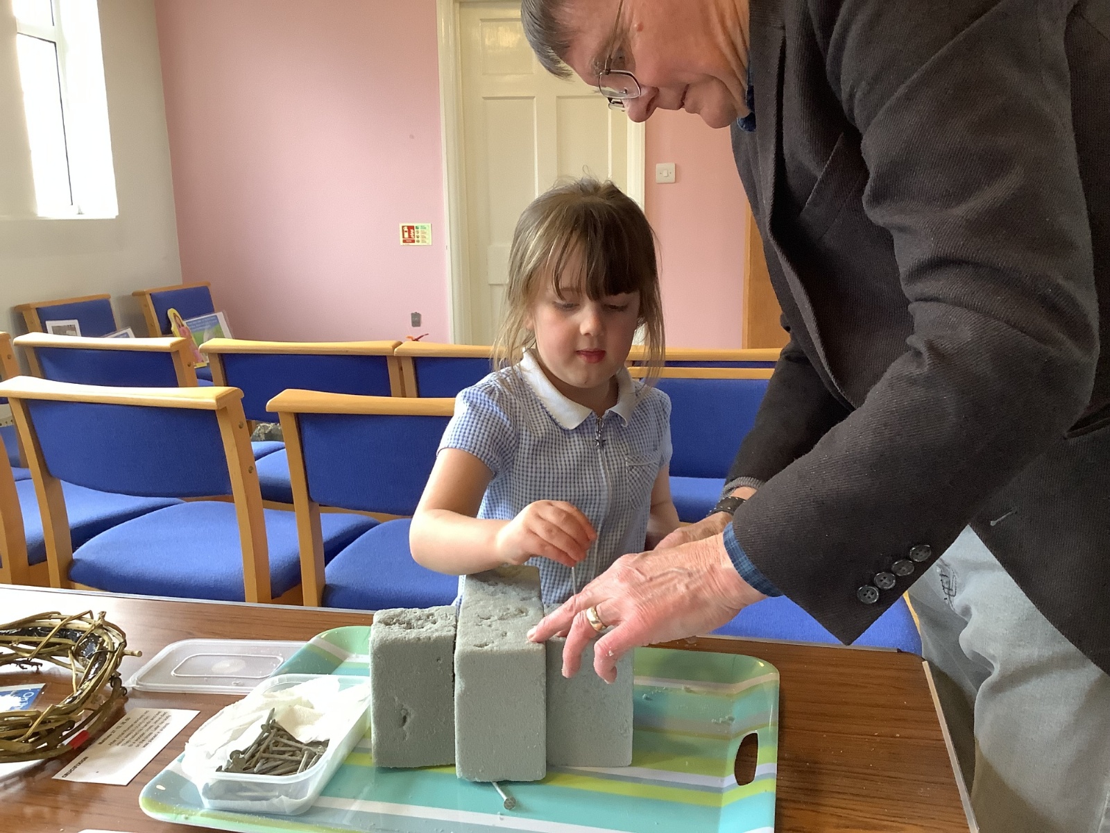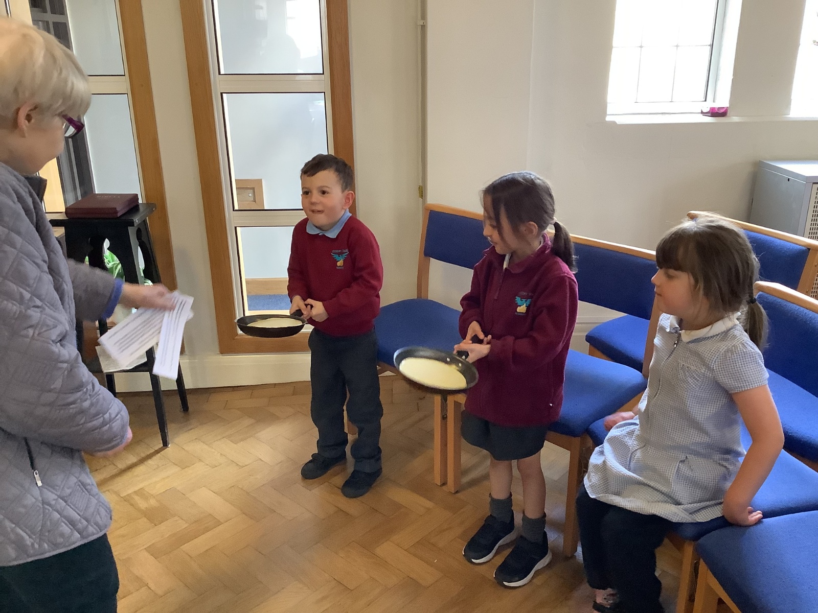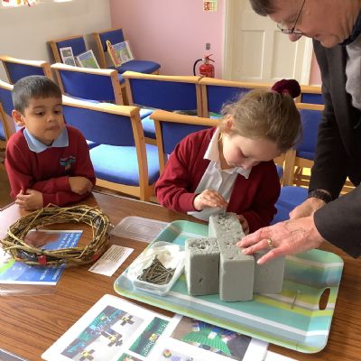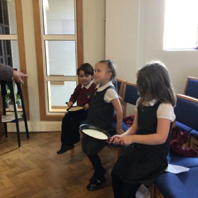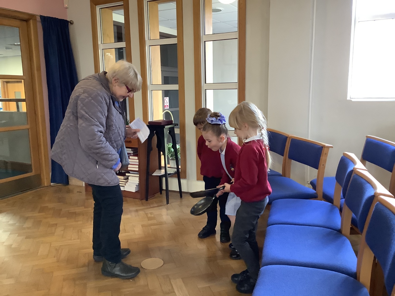 The children went on their first trip to the Zion Methodist Church. They learnt all about the Easter story and took part in lots of activities which helped tell the story. They flipped pancakes for Shrove Tuesday, had a cross drawn on them, waved palm leaves, washed some 'feet' like Jesus, had some bread for the last supper, put nails in a cross then finally saw the tomb where Jesus laid. It's was a lovely afternoon and a great first trip.