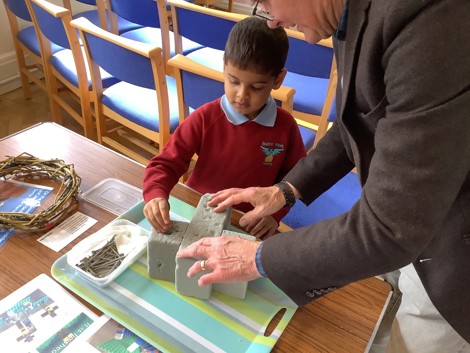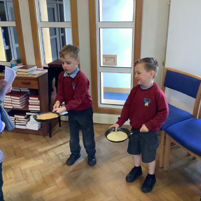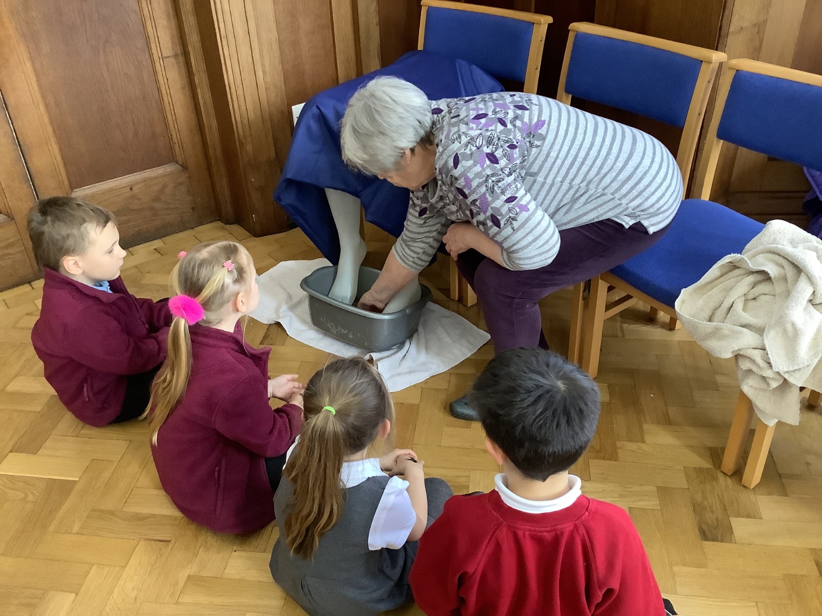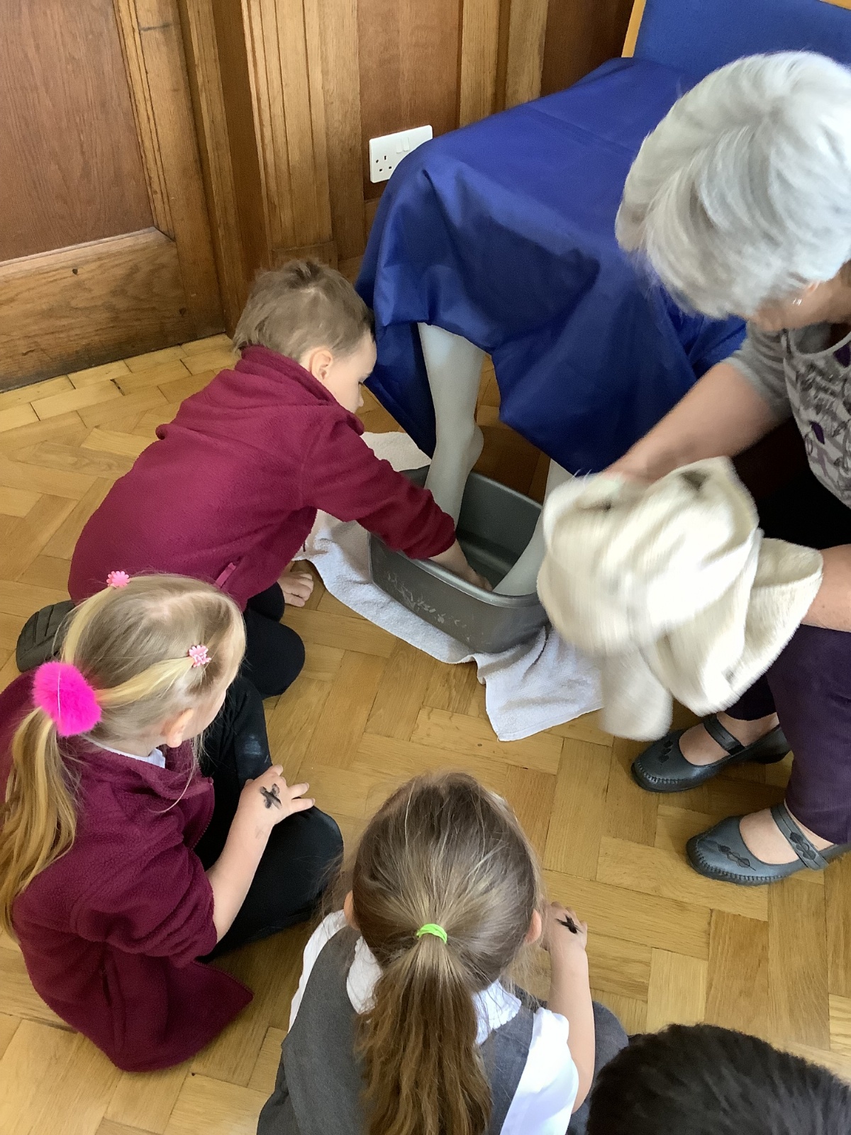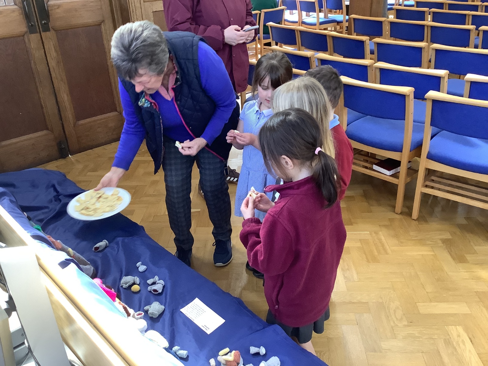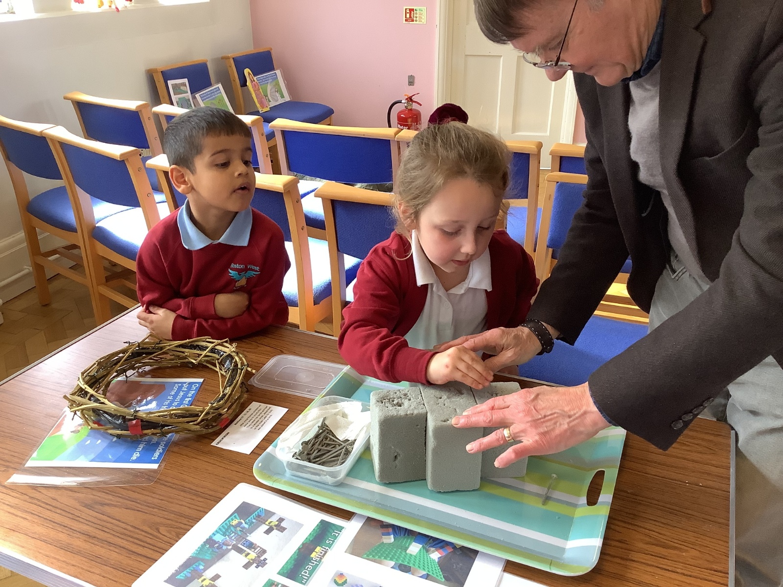 The children went on their first trip to the Zion Methodist Church. They learnt all about the Easter story and took part in lots of activities which helped tell the story. They flipped pancakes for Shrove Tuesday, had a cross drawn on them, waved palm leaves, washed some 'feet' like Jesus, had some bread for the last supper, put nails in a cross then finally saw the tomb where Jesus laid. It's was a lovely afternoon and a great first trip.