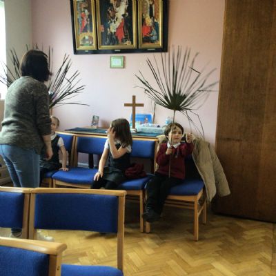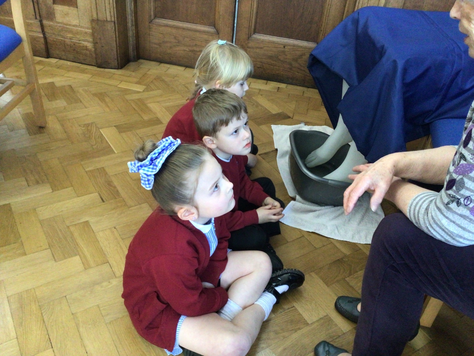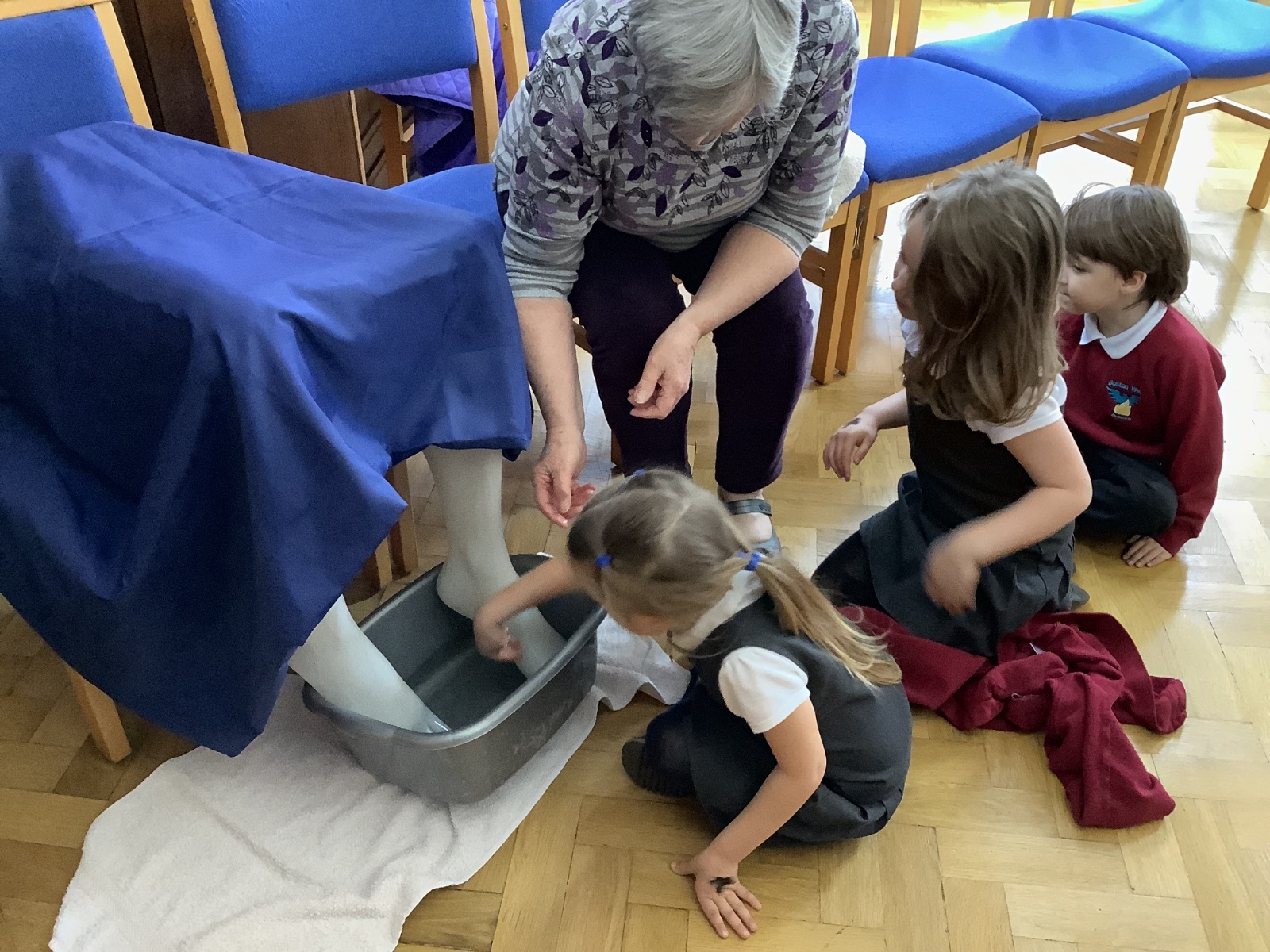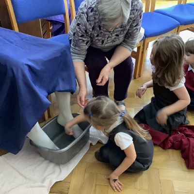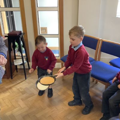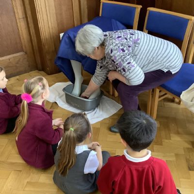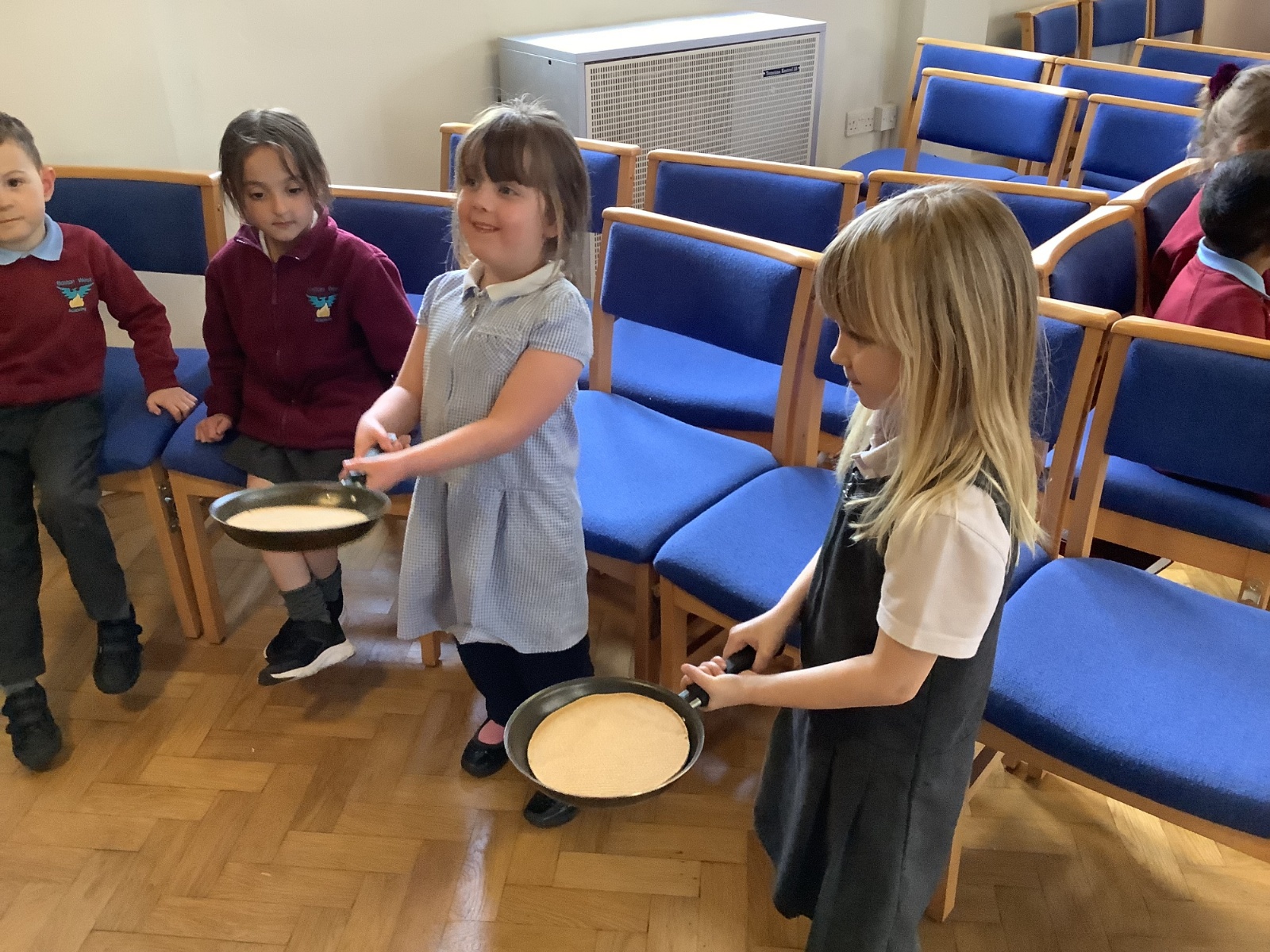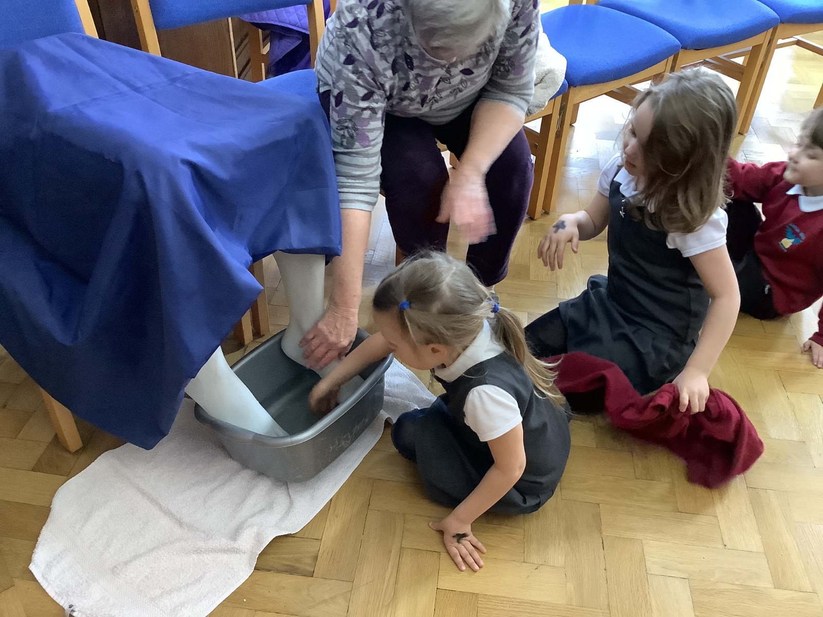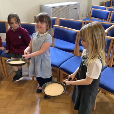 The children went on their first trip to the Zion Methodist Church. They learnt all about the Easter story and took part in lots of activities which helped tell the story. They flipped pancakes for Shrove Tuesday, had a cross drawn on them, waved palm leaves, washed some 'feet' like Jesus, had some bread for the last supper, put nails in a cross then finally saw the tomb where Jesus laid. It's was a lovely afternoon and a great first trip.