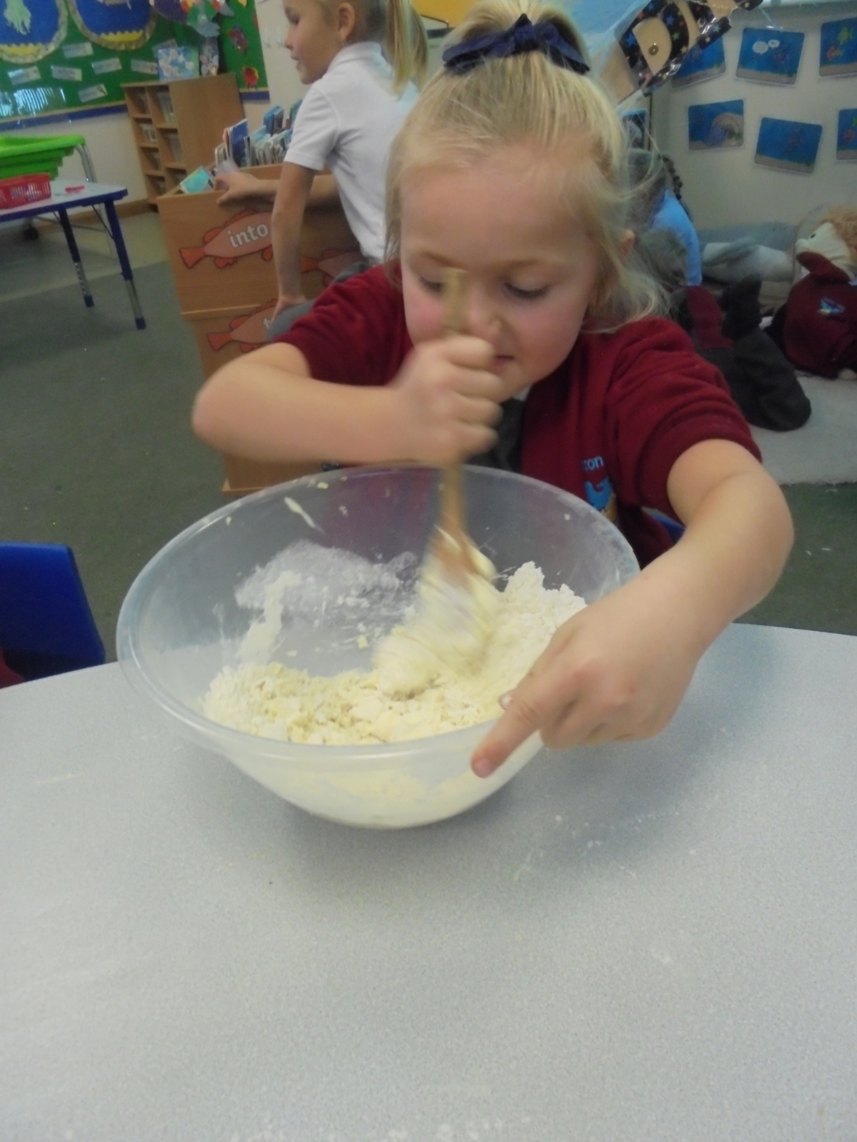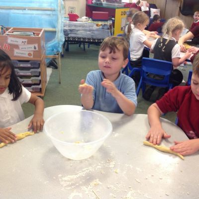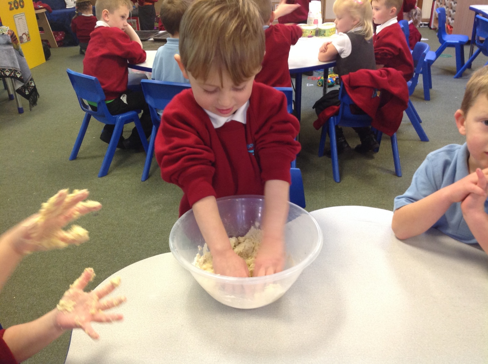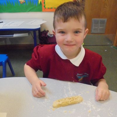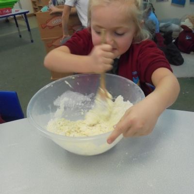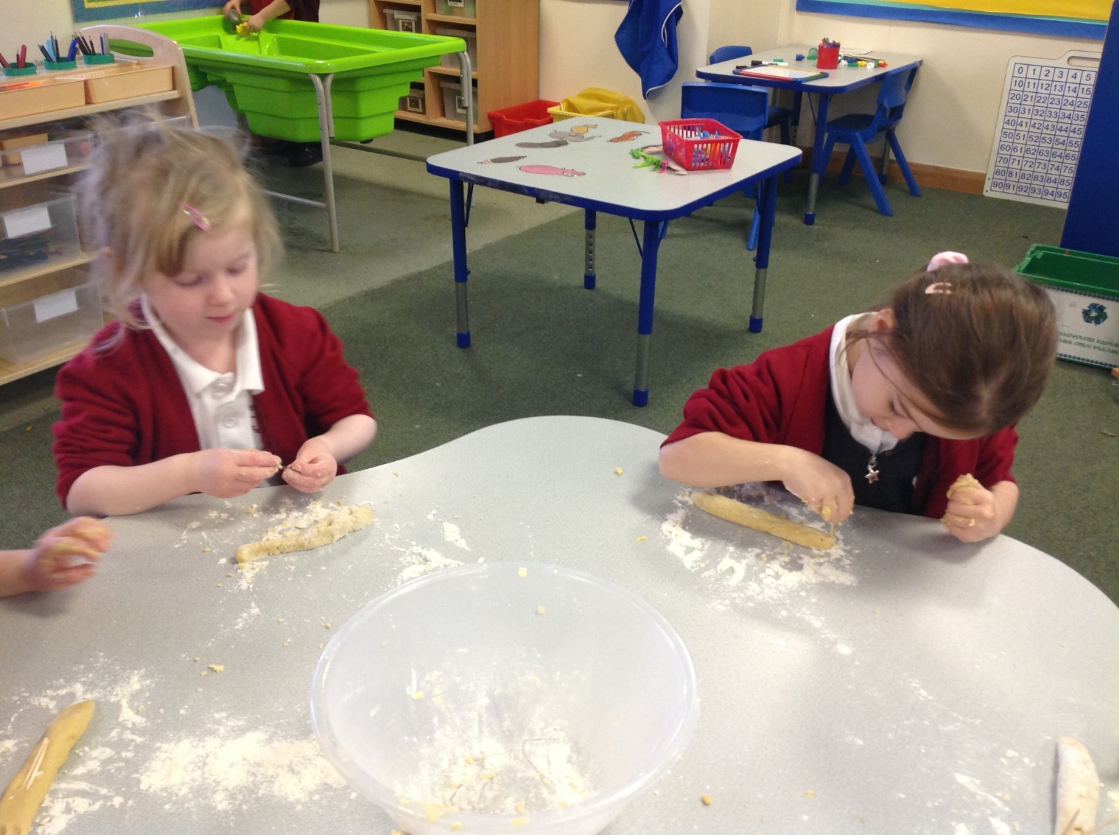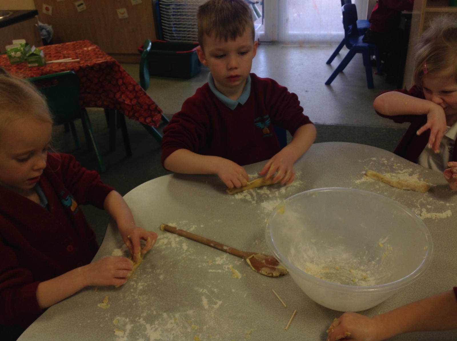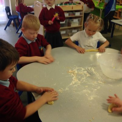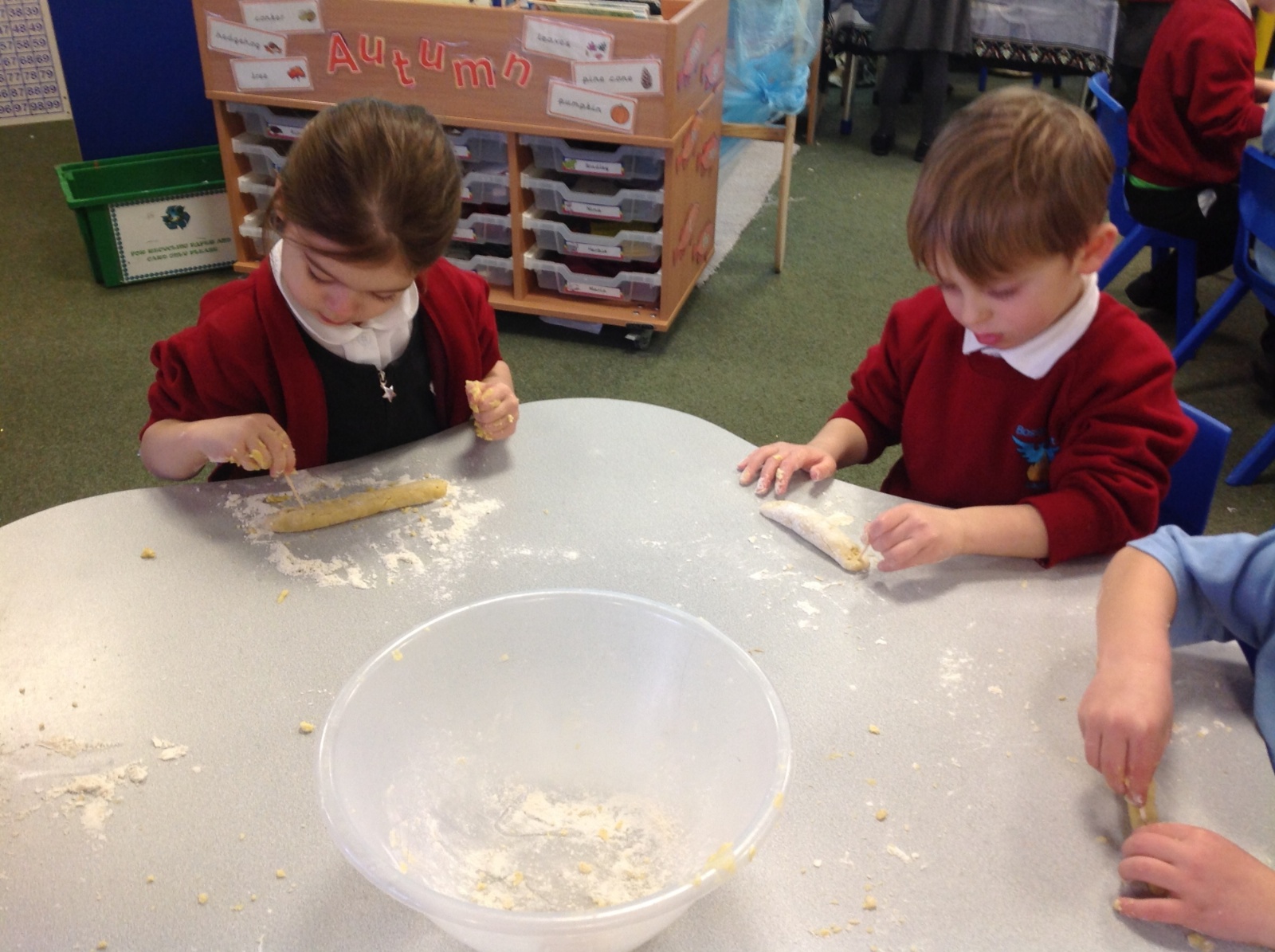 As part of our topic about jungle animals this week, we made some delicious snake biscuits using three ingredients: flour, sugar and butter. We had lots of fun mixing them together and shaping the dough into a snake shape, but best of all we enjoyed eating them!