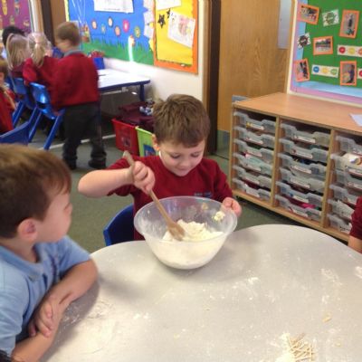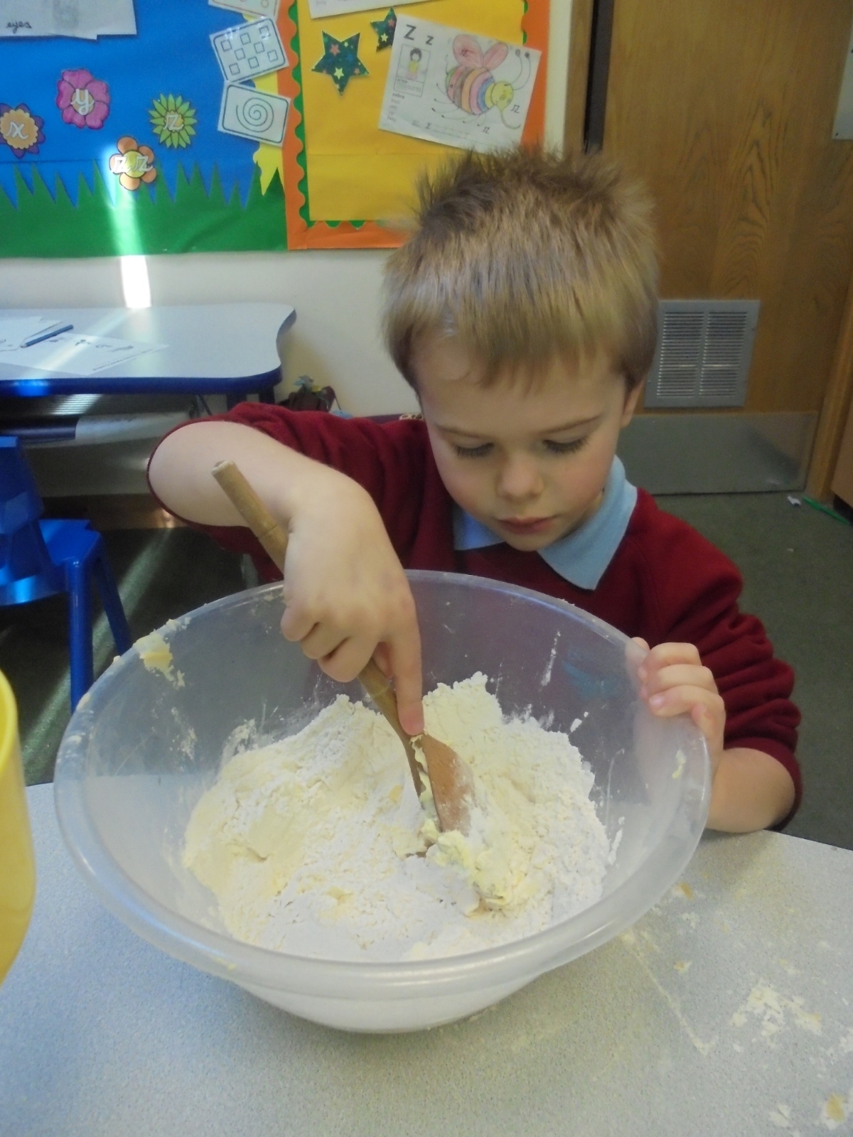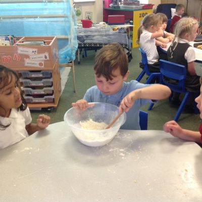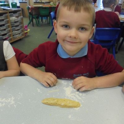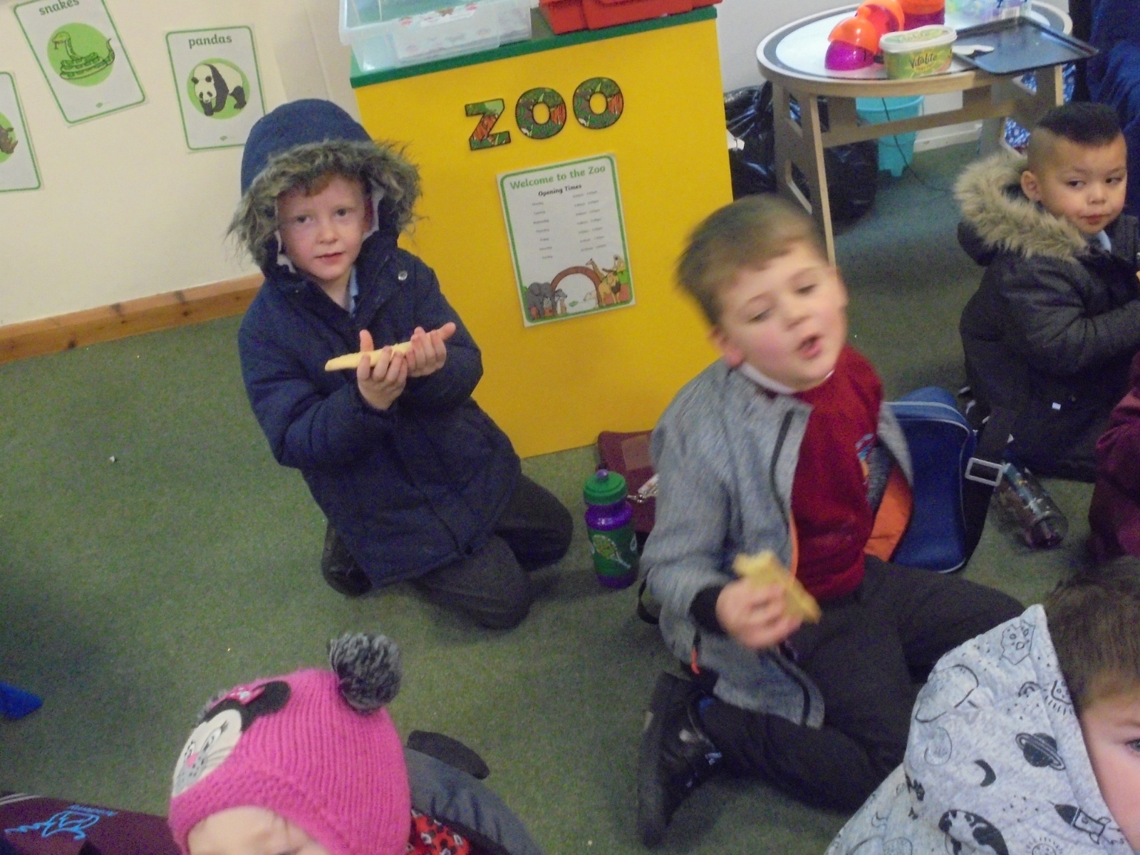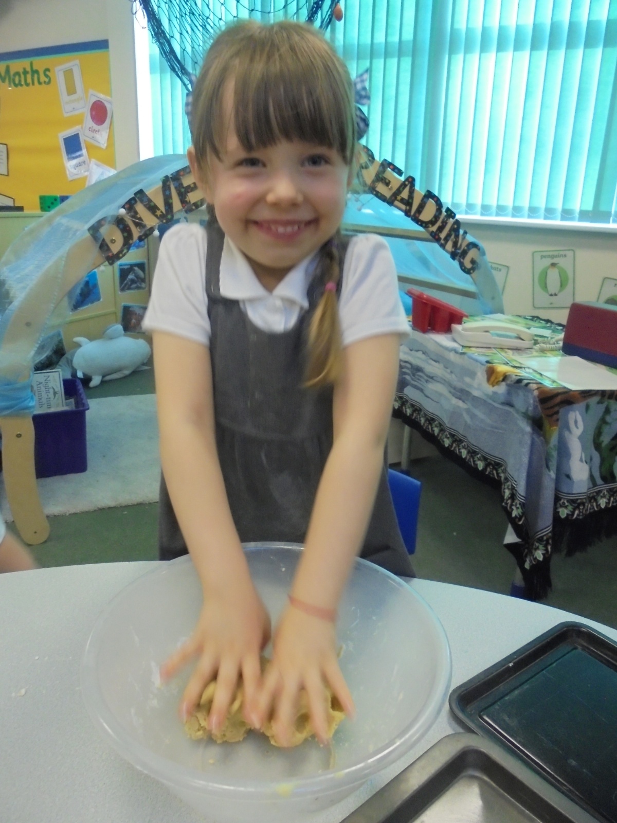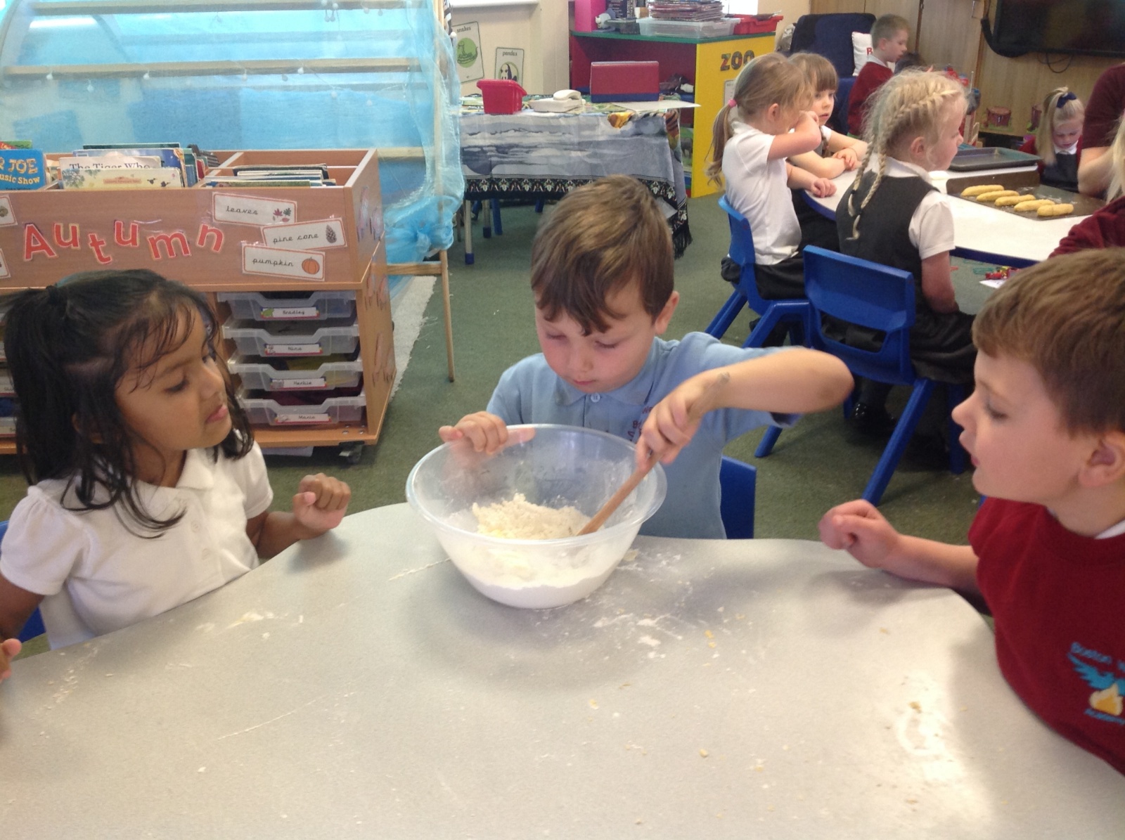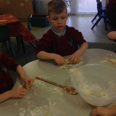 As part of our topic about jungle animals this week, we made some delicious snake biscuits using three ingredients: flour, sugar and butter. We had lots of fun mixing them together and shaping the dough into a snake shape, but best of all we enjoyed eating them!
