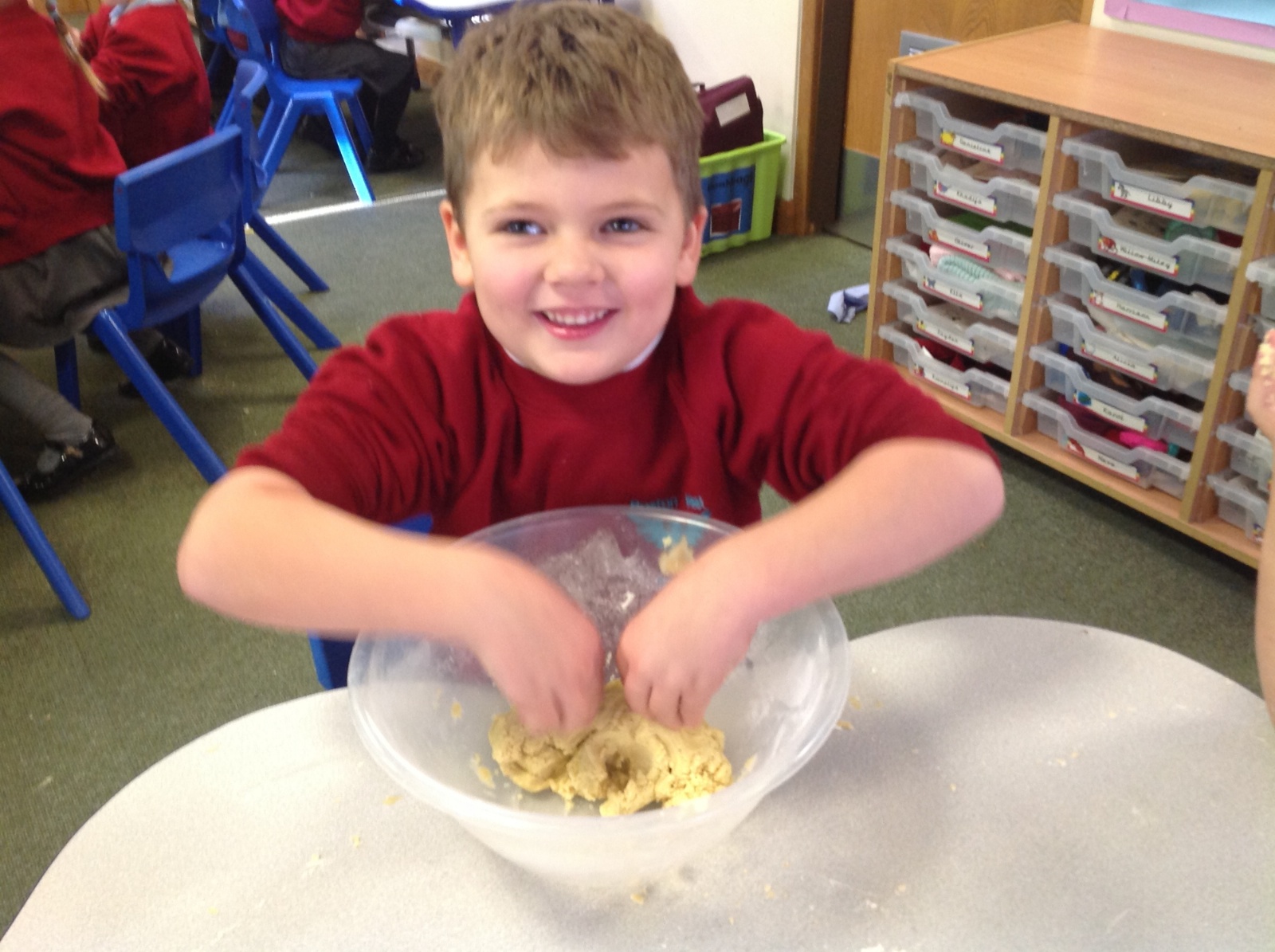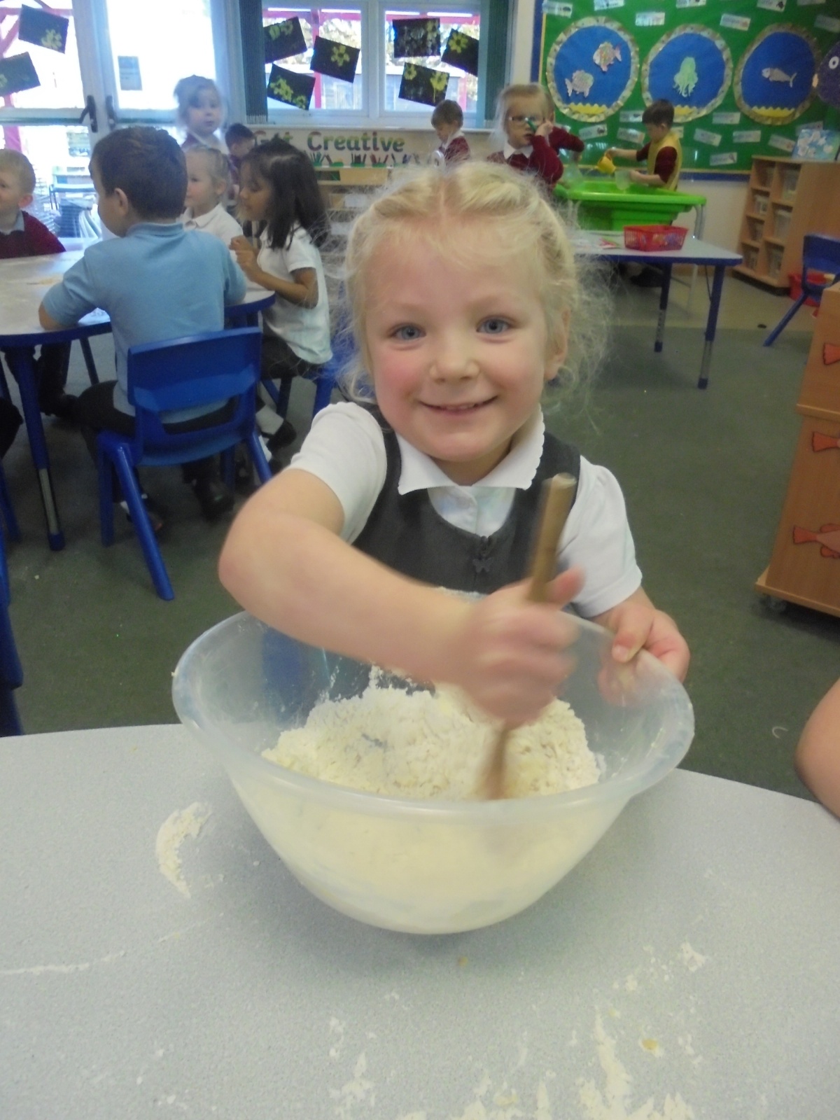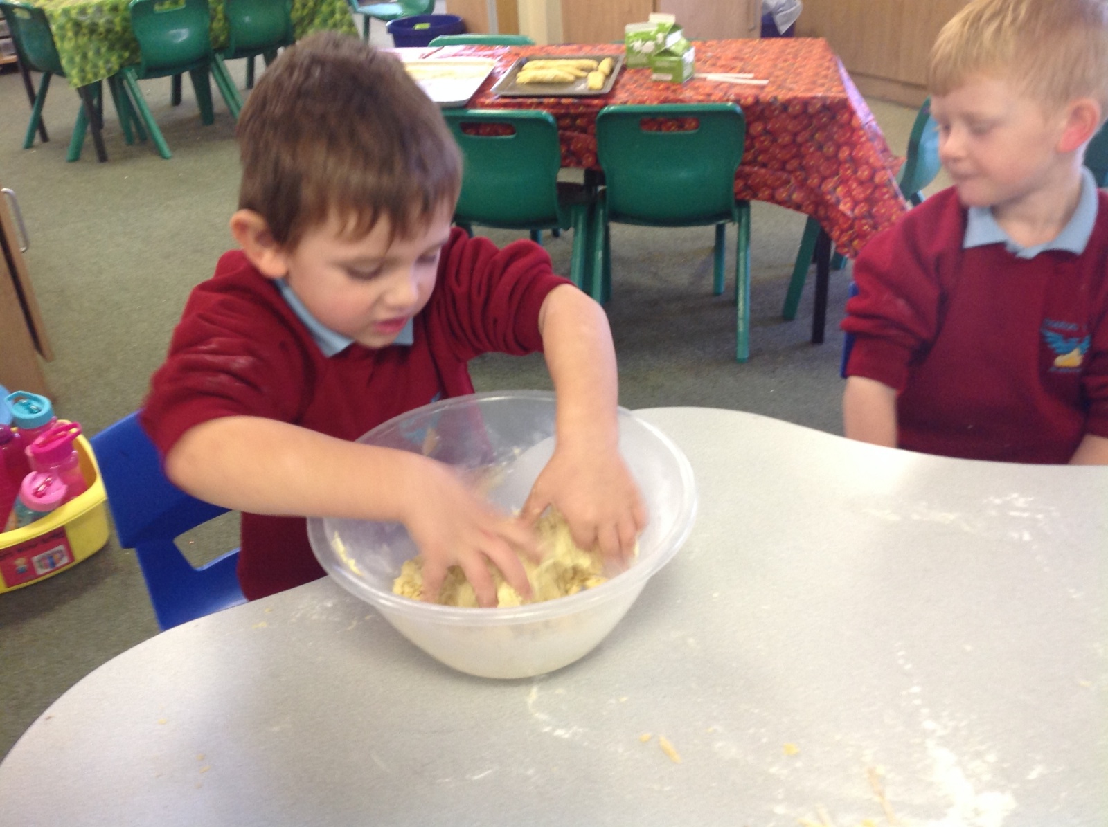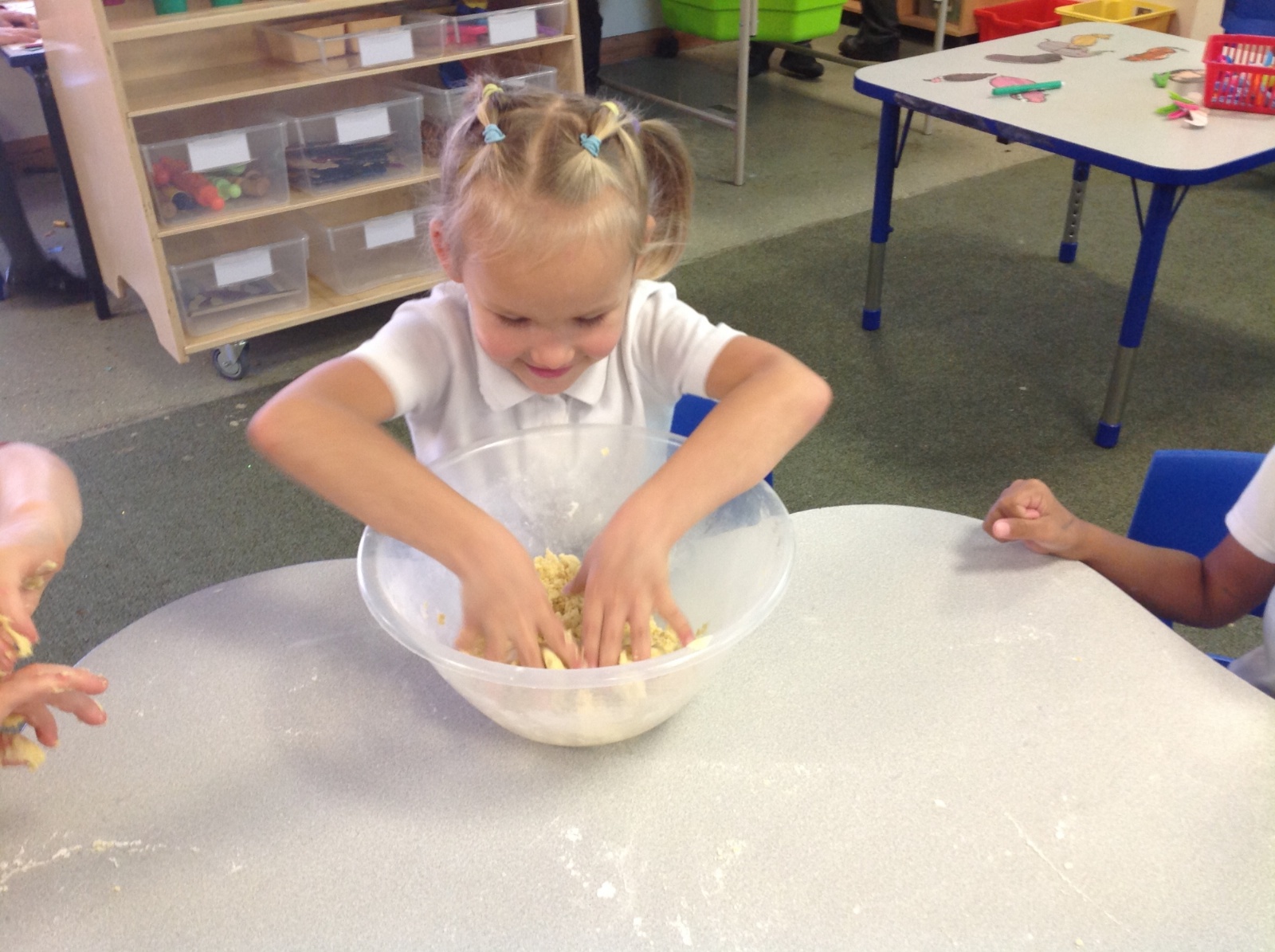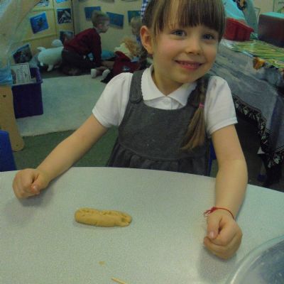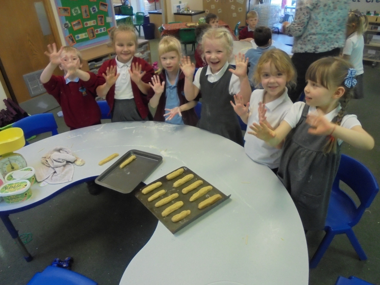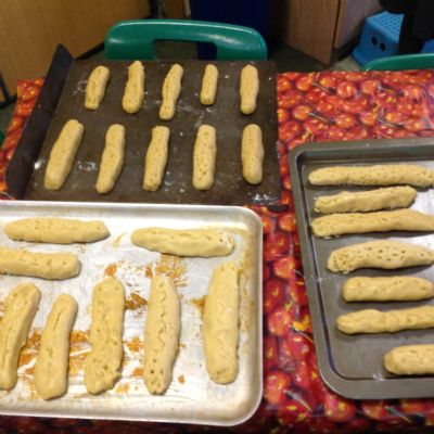 As part of our topic about jungle animals this week, we made some delicious snake biscuits using three ingredients: flour, sugar and butter. We had lots of fun mixing them together and shaping the dough into a snake shape, but best of all we enjoyed eating them!
