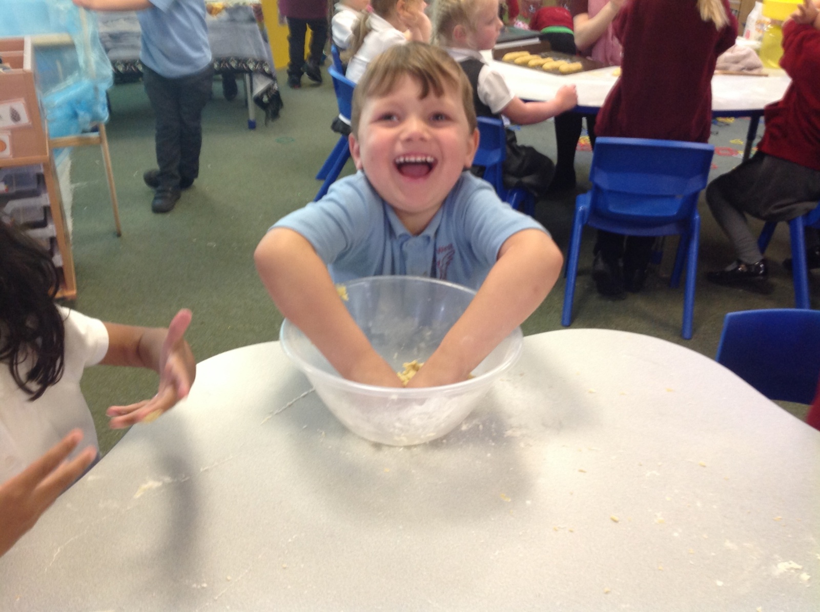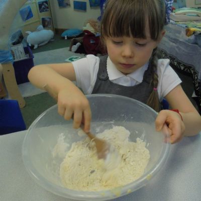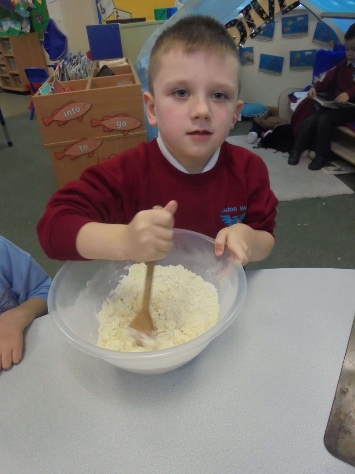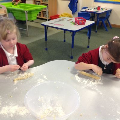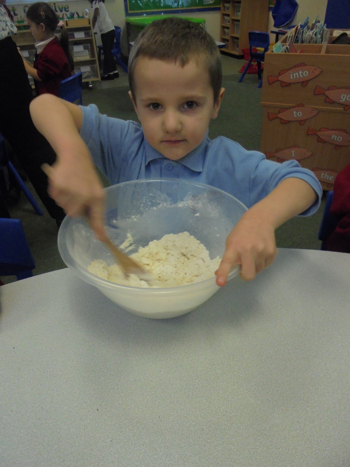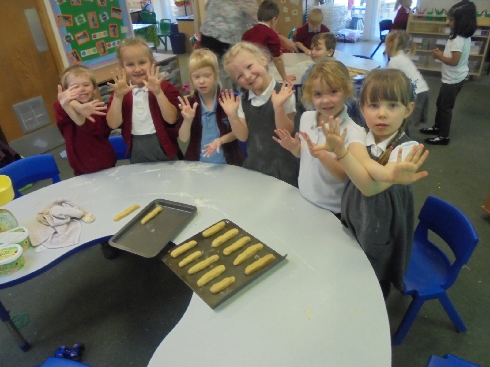 As part of our topic about jungle animals this week, we made some delicious snake biscuits using three ingredients: flour, sugar and butter. We had lots of fun mixing them together and shaping the dough into a snake shape, but best of all we enjoyed eating them!