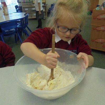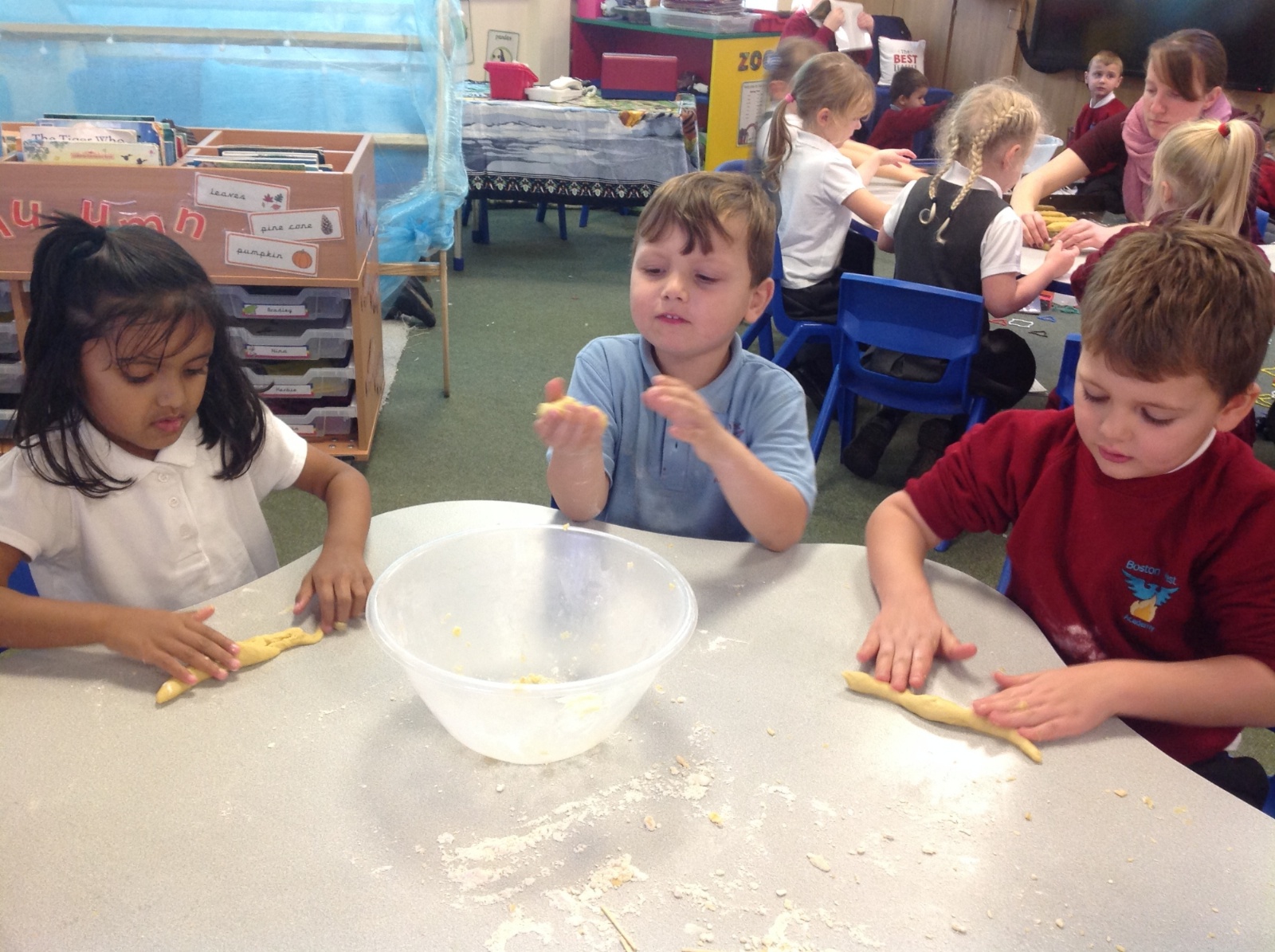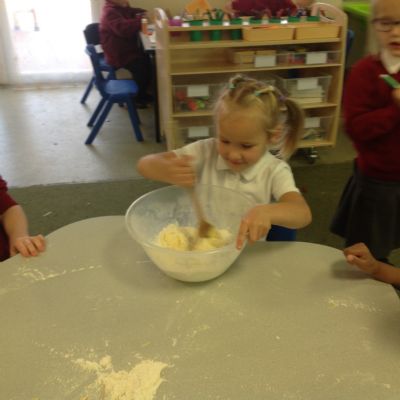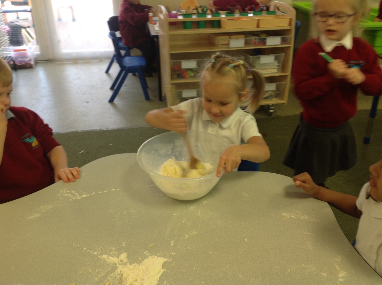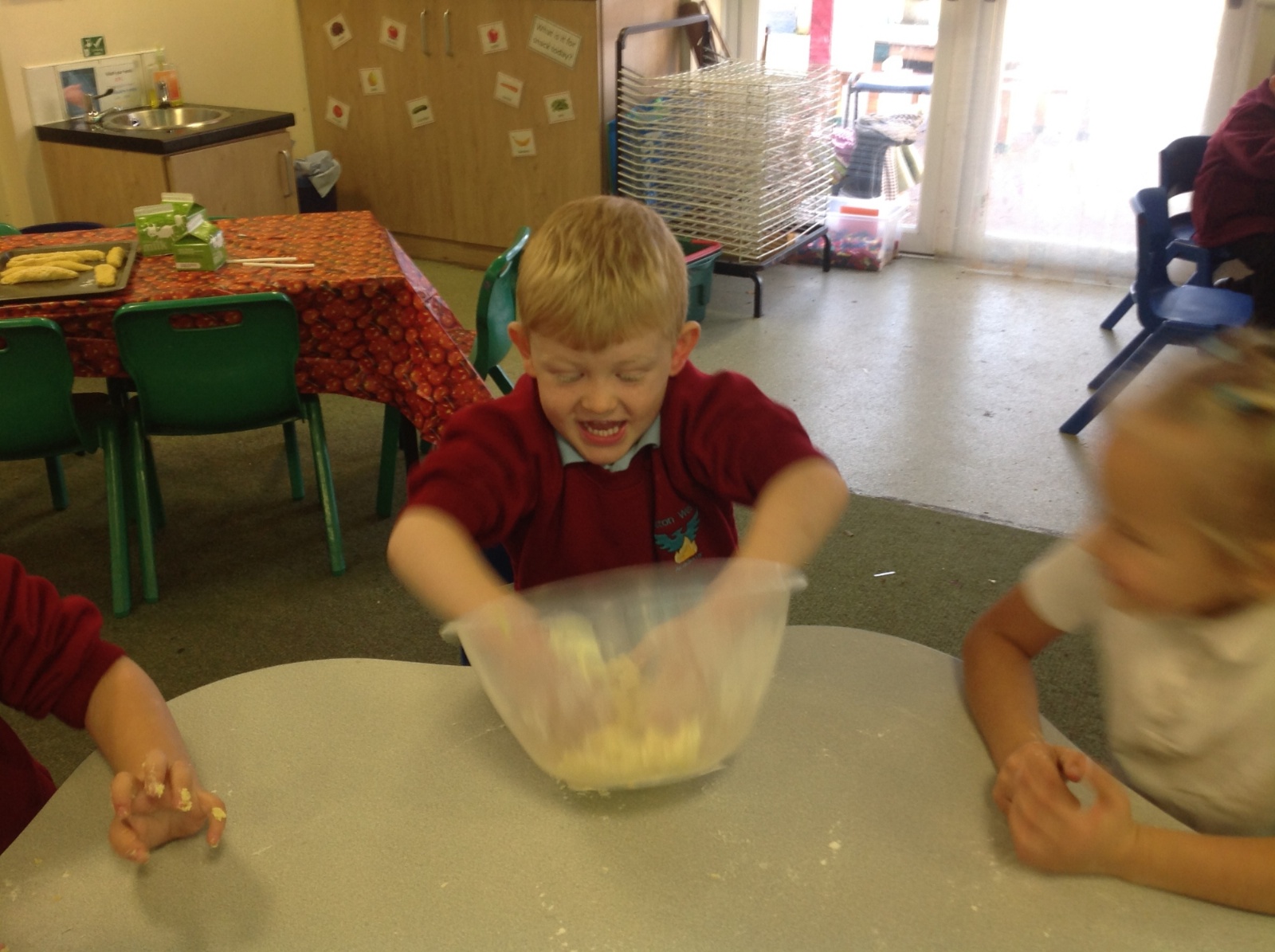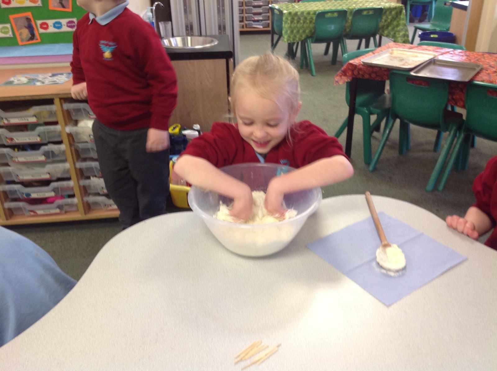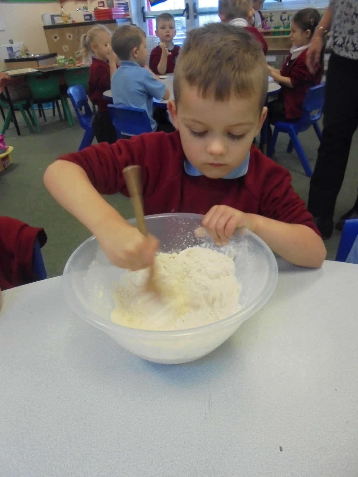 As part of our topic about jungle animals this week, we made some delicious snake biscuits using three ingredients: flour, sugar and butter. We had lots of fun mixing them together and shaping the dough into a snake shape, but best of all we enjoyed eating them!
