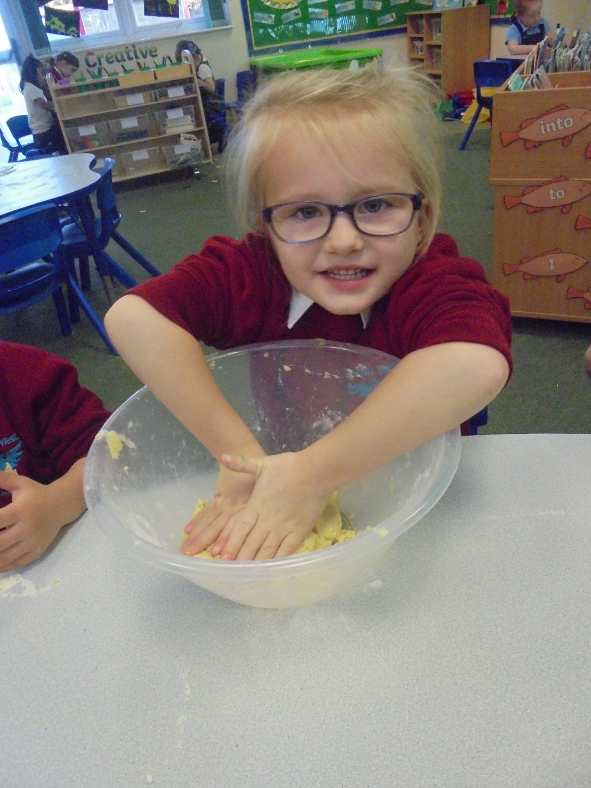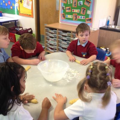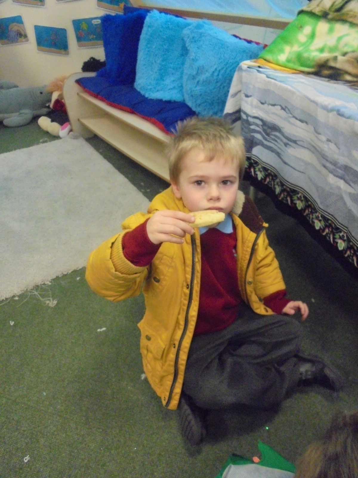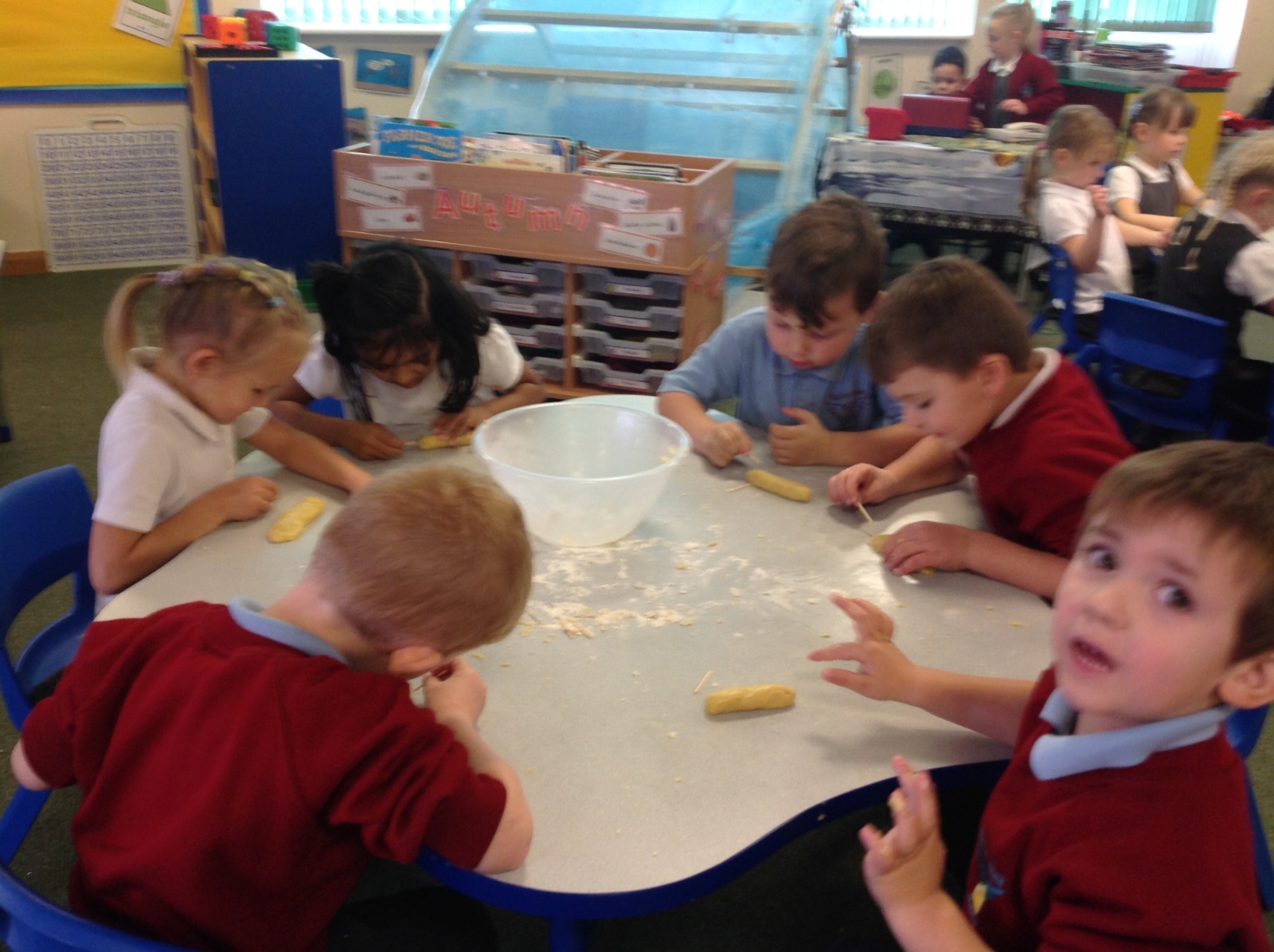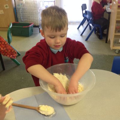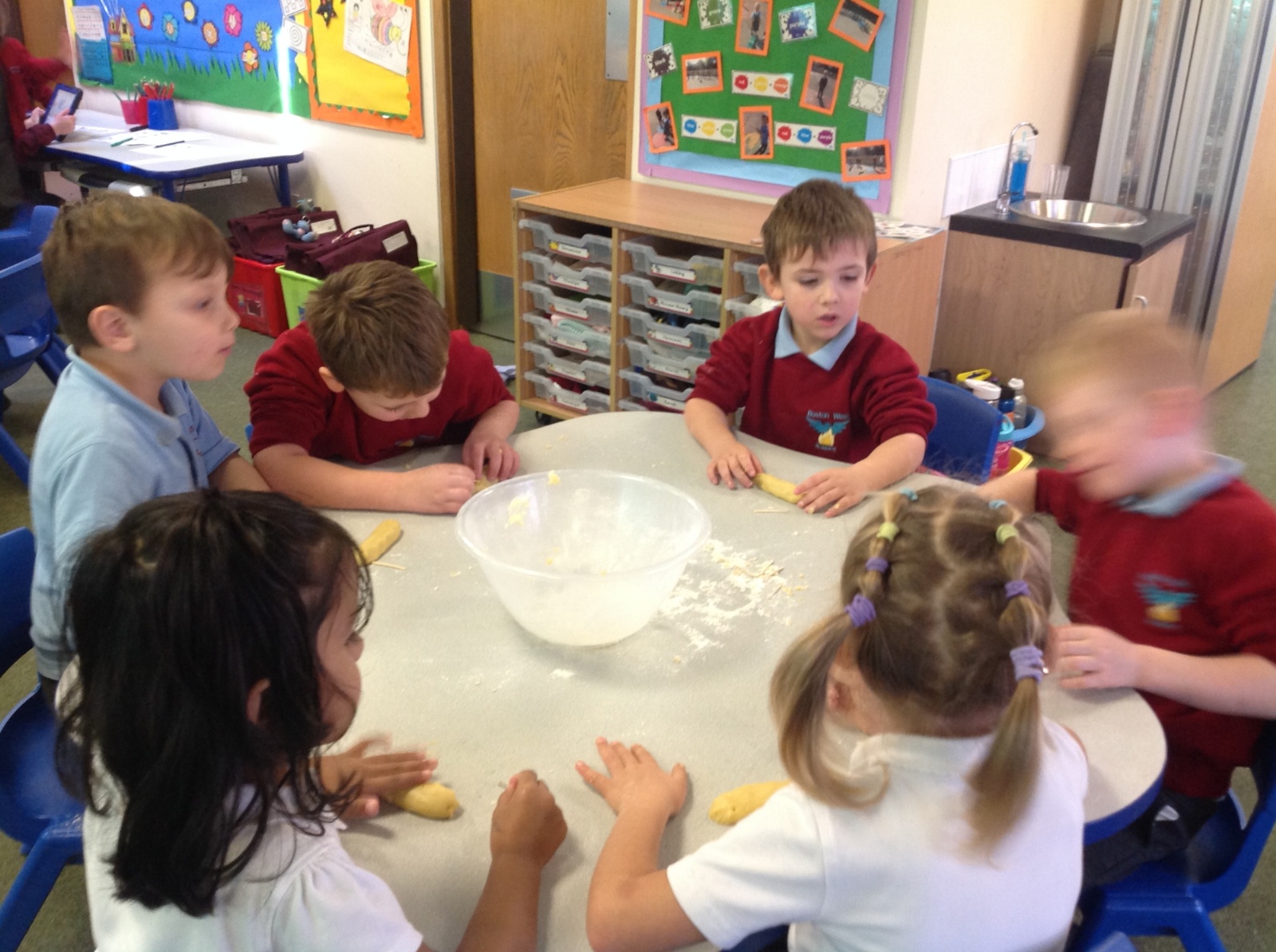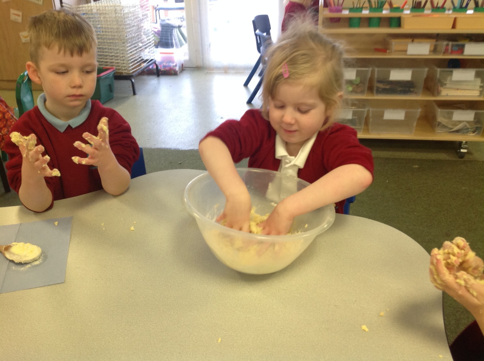 As part of our topic about jungle animals this week, we made some delicious snake biscuits using three ingredients: flour, sugar and butter. We had lots of fun mixing them together and shaping the dough into a snake shape, but best of all we enjoyed eating them!
