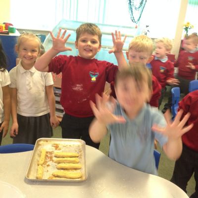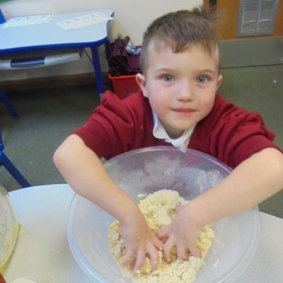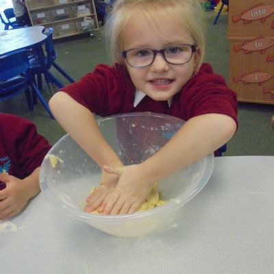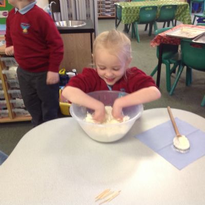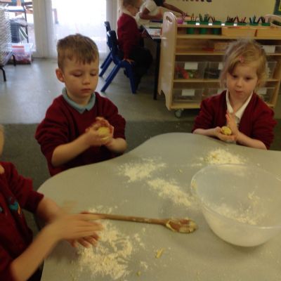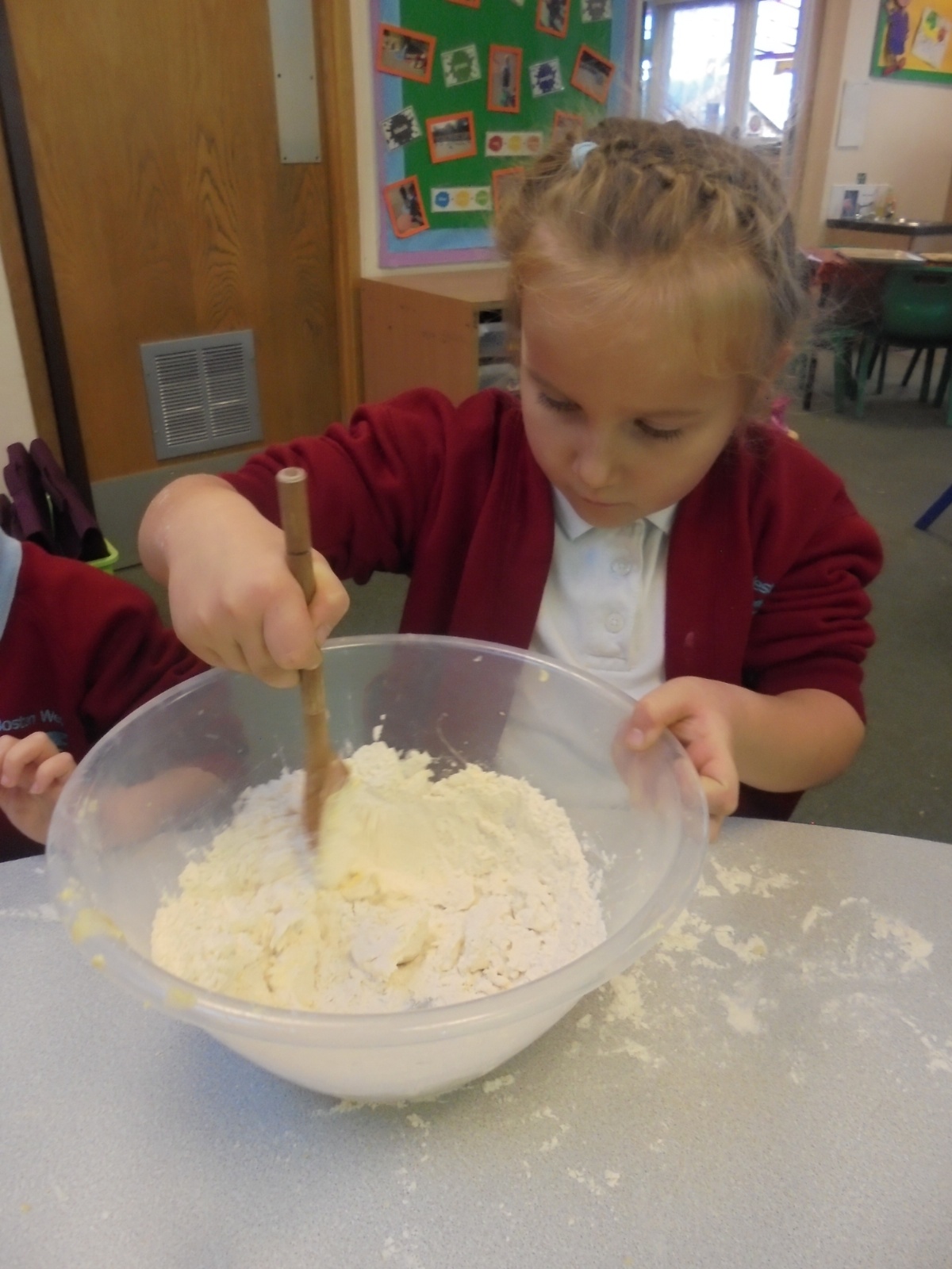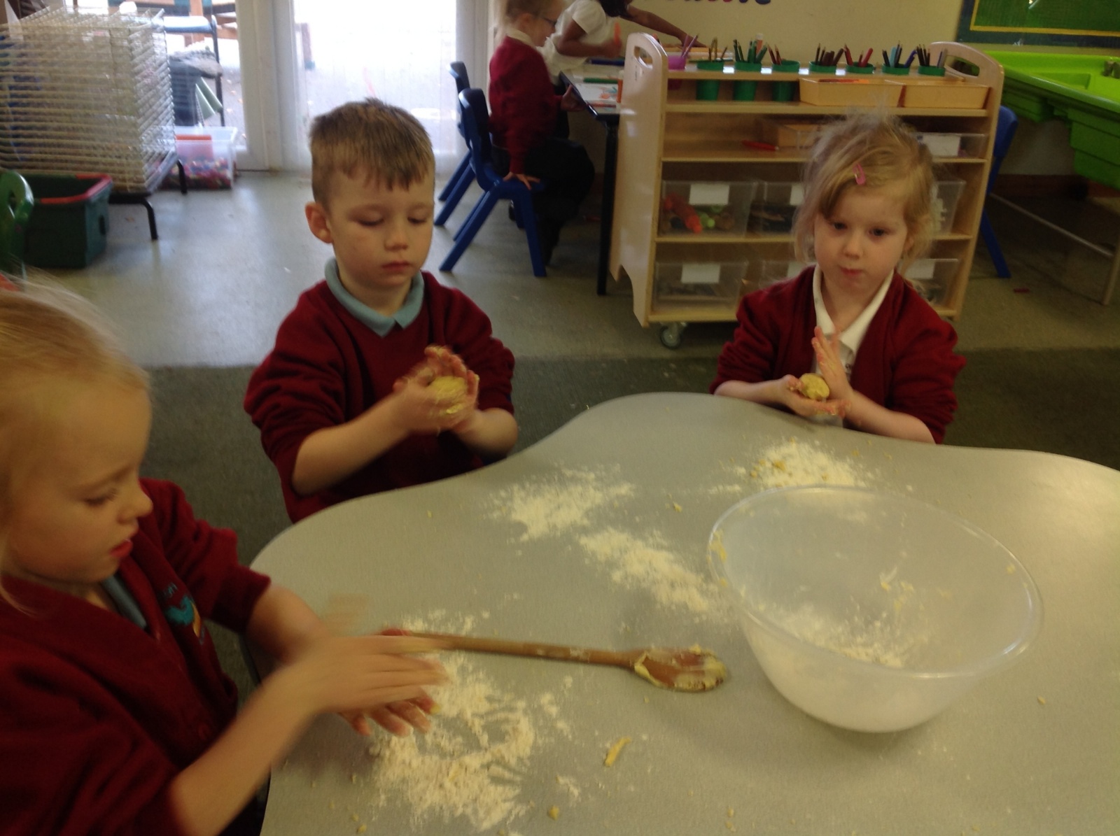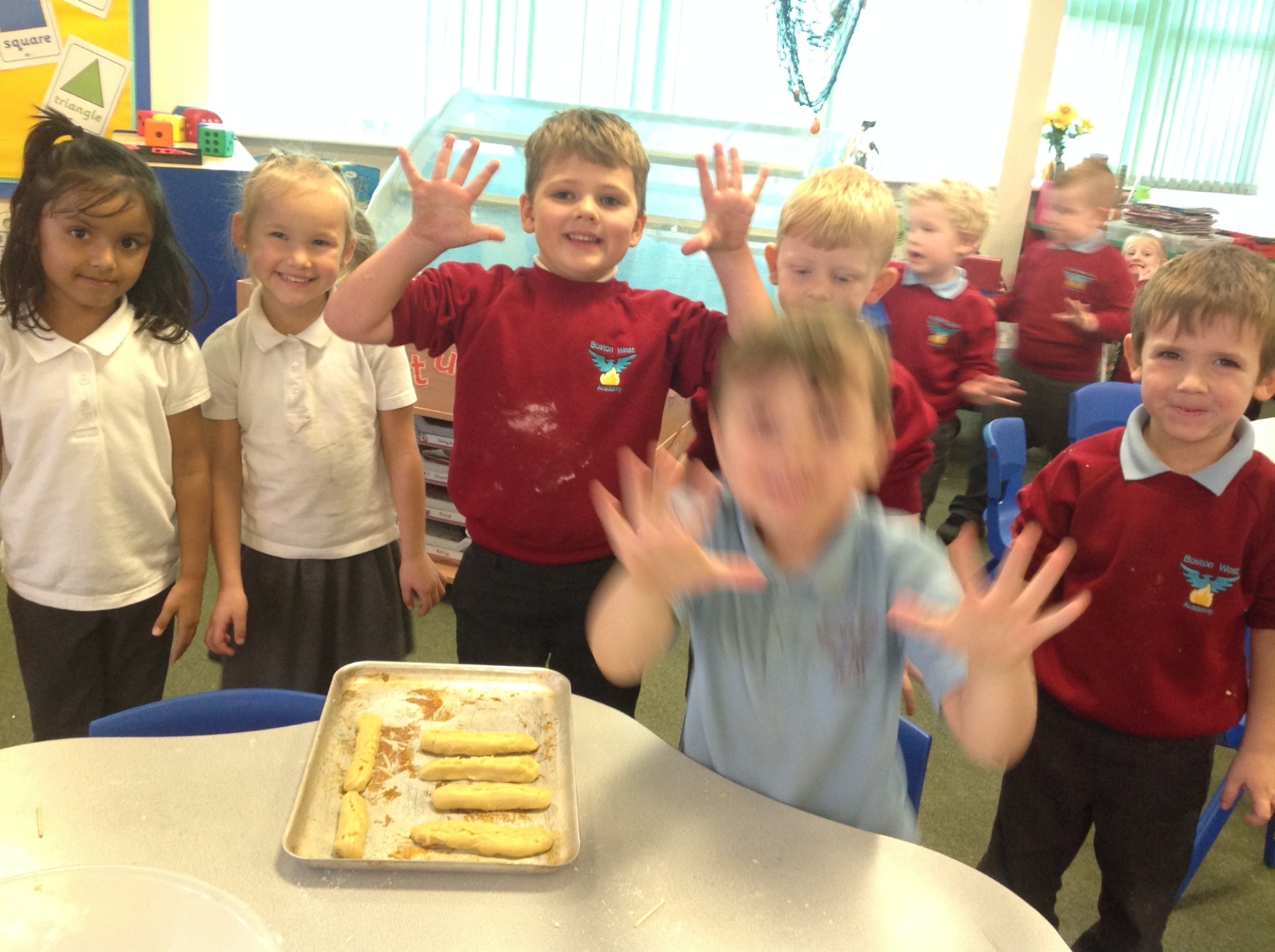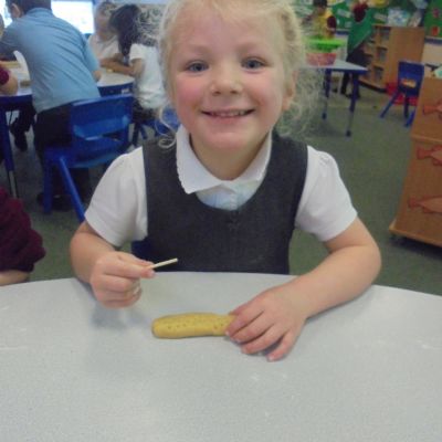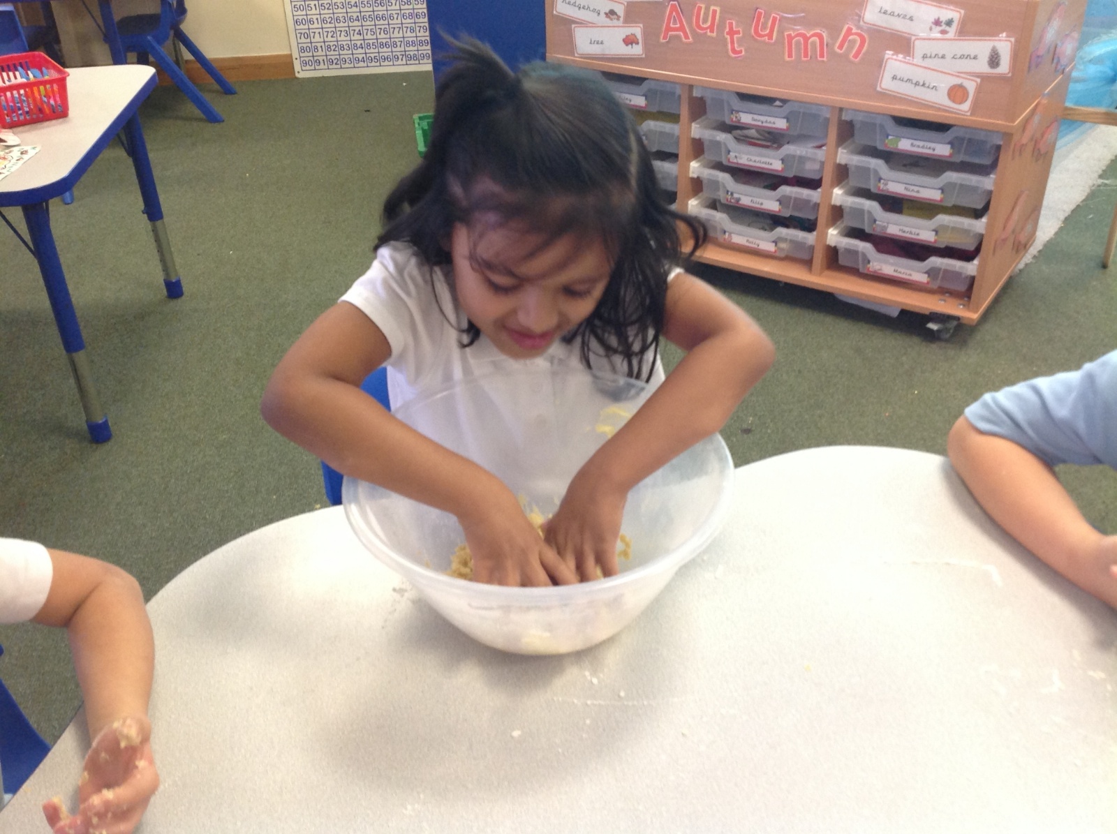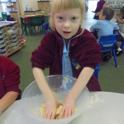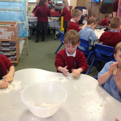 As part of our topic about jungle animals this week, we made some delicious snake biscuits using three ingredients: flour, sugar and butter. We had lots of fun mixing them together and shaping the dough into a snake shape, but best of all we enjoyed eating them!