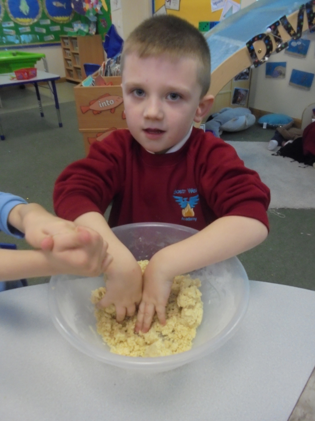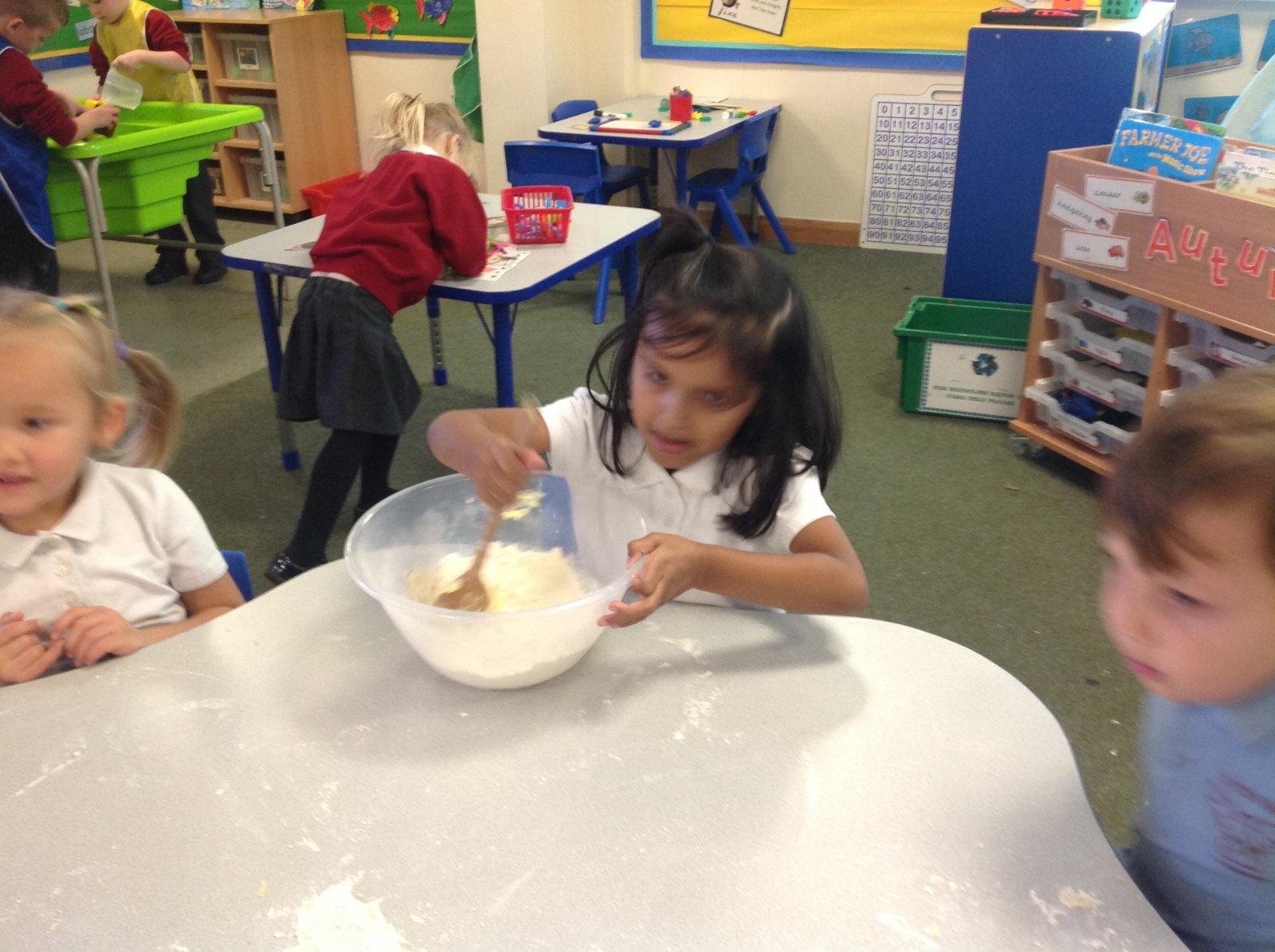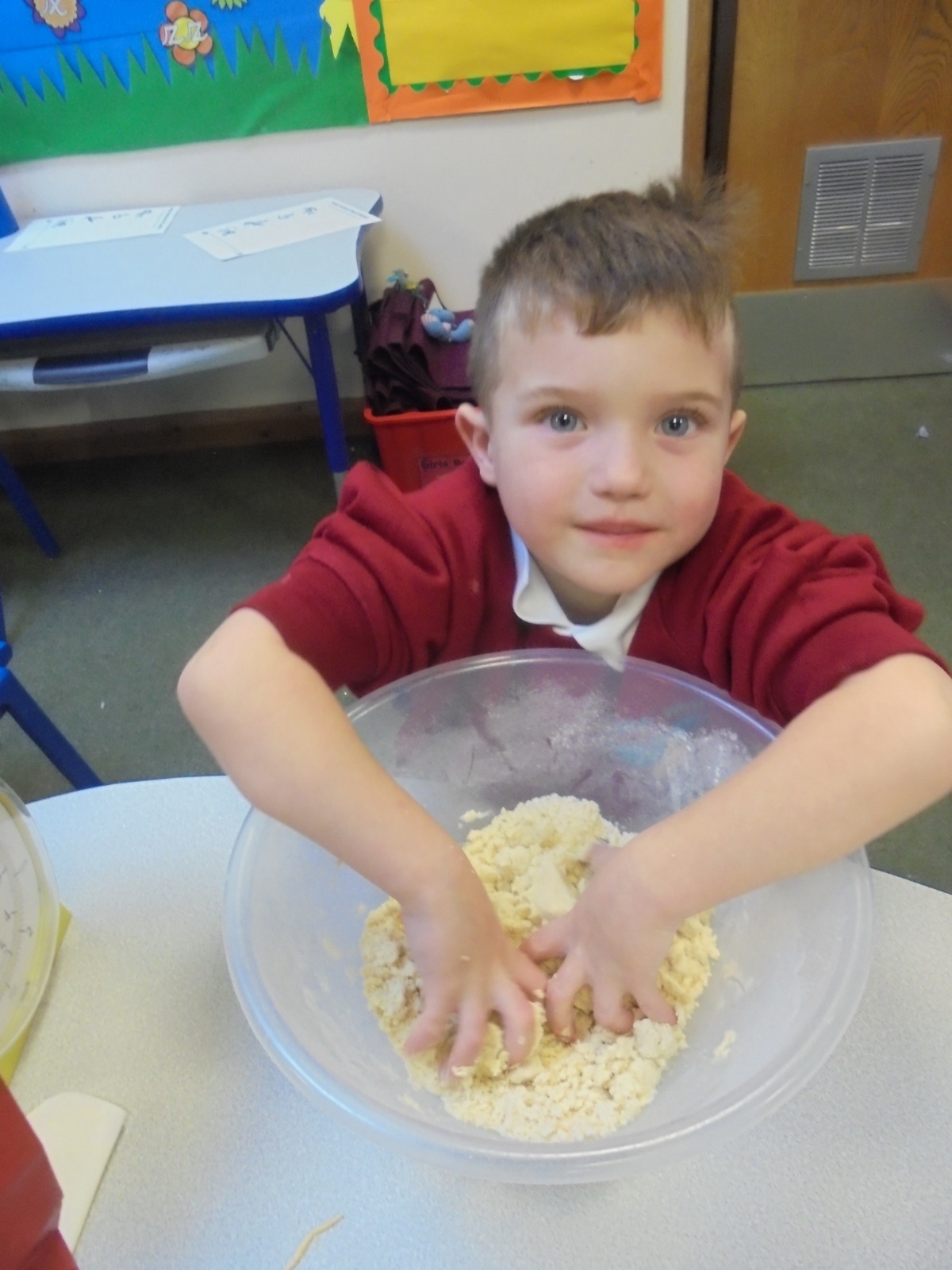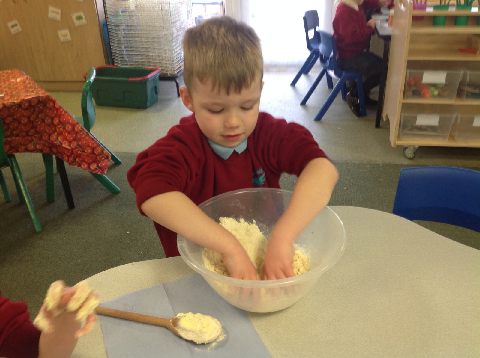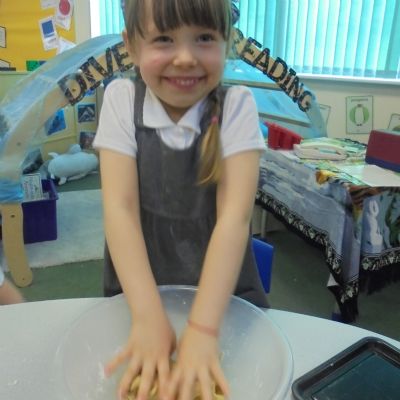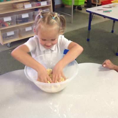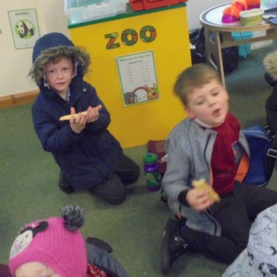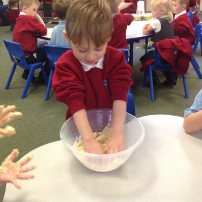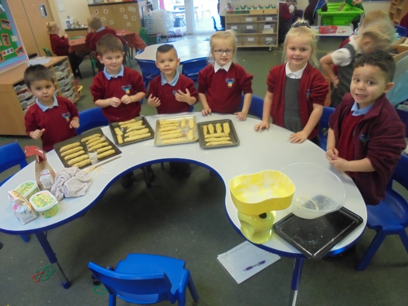 As part of our topic about jungle animals this week, we made some delicious snake biscuits using three ingredients: flour, sugar and butter. We had lots of fun mixing them together and shaping the dough into a snake shape, but best of all we enjoyed eating them!