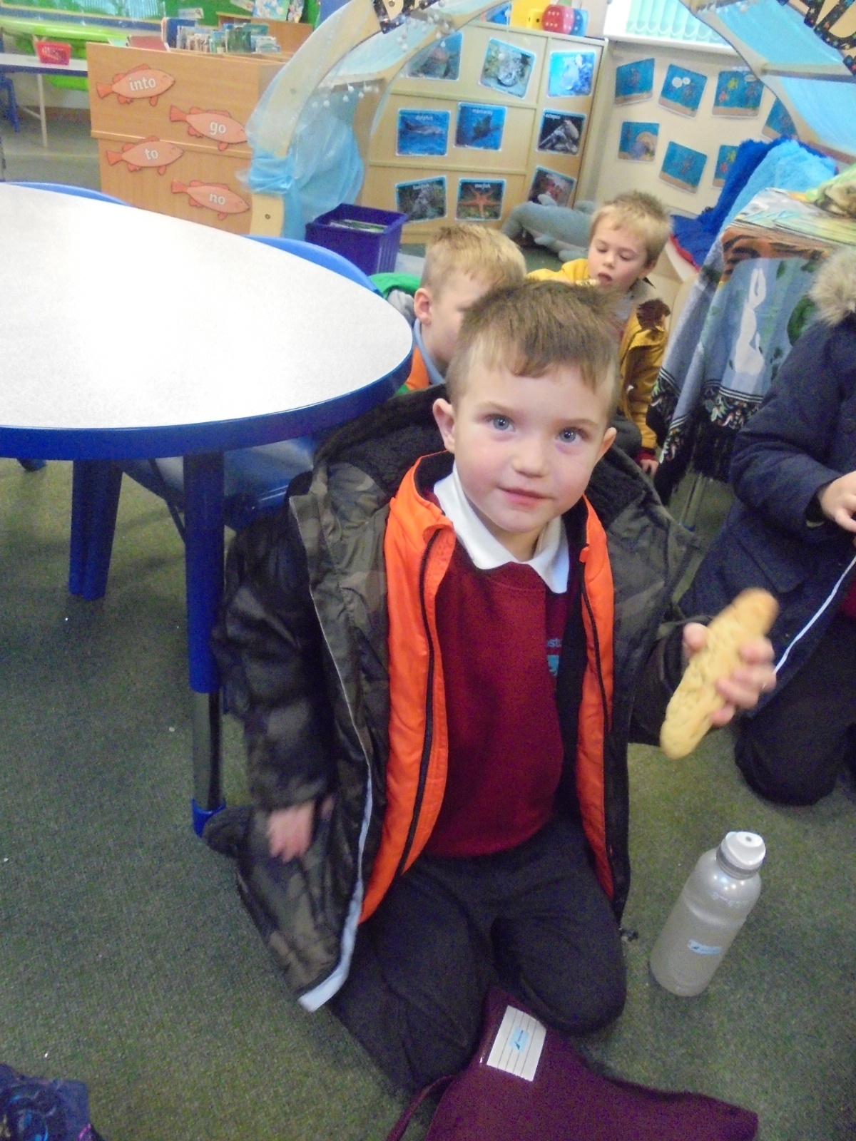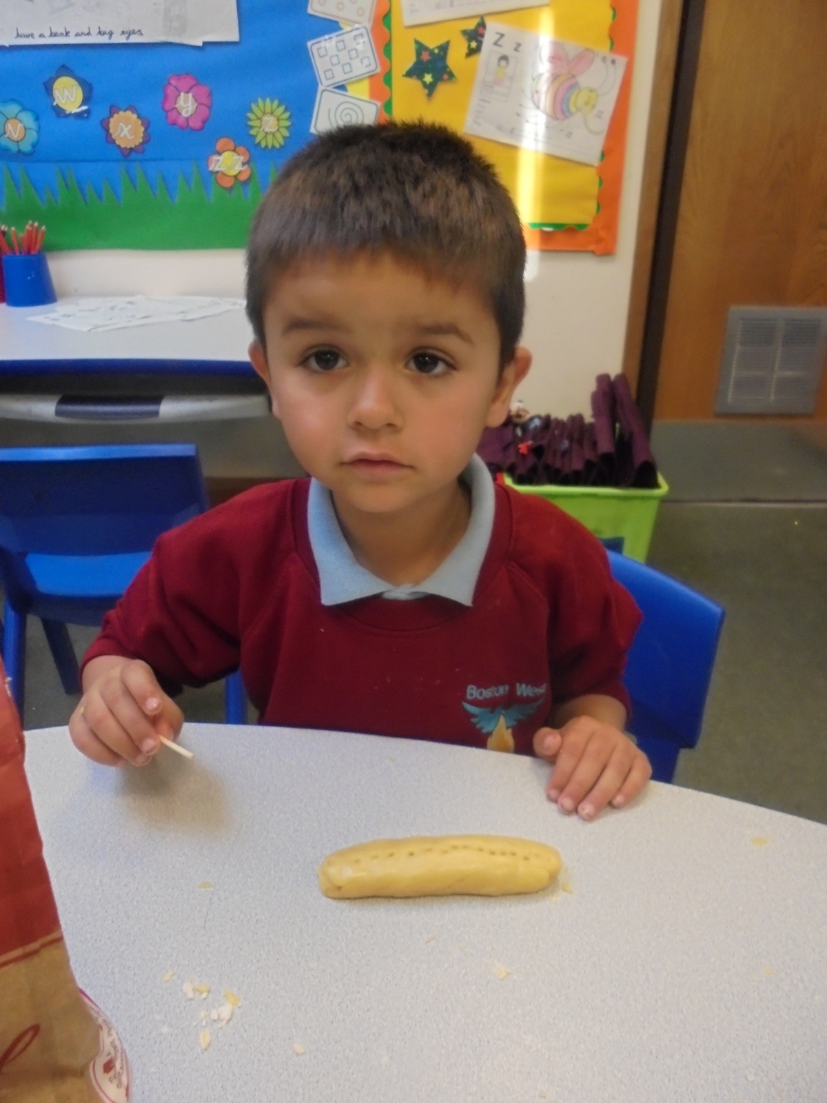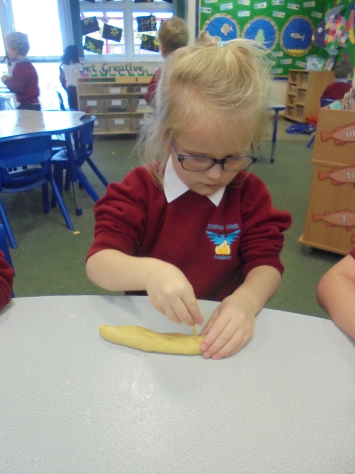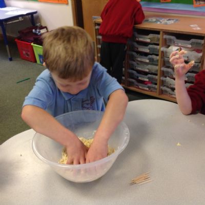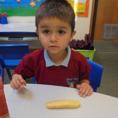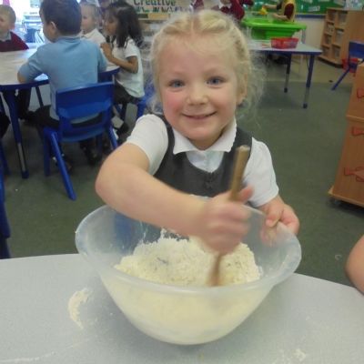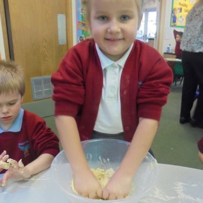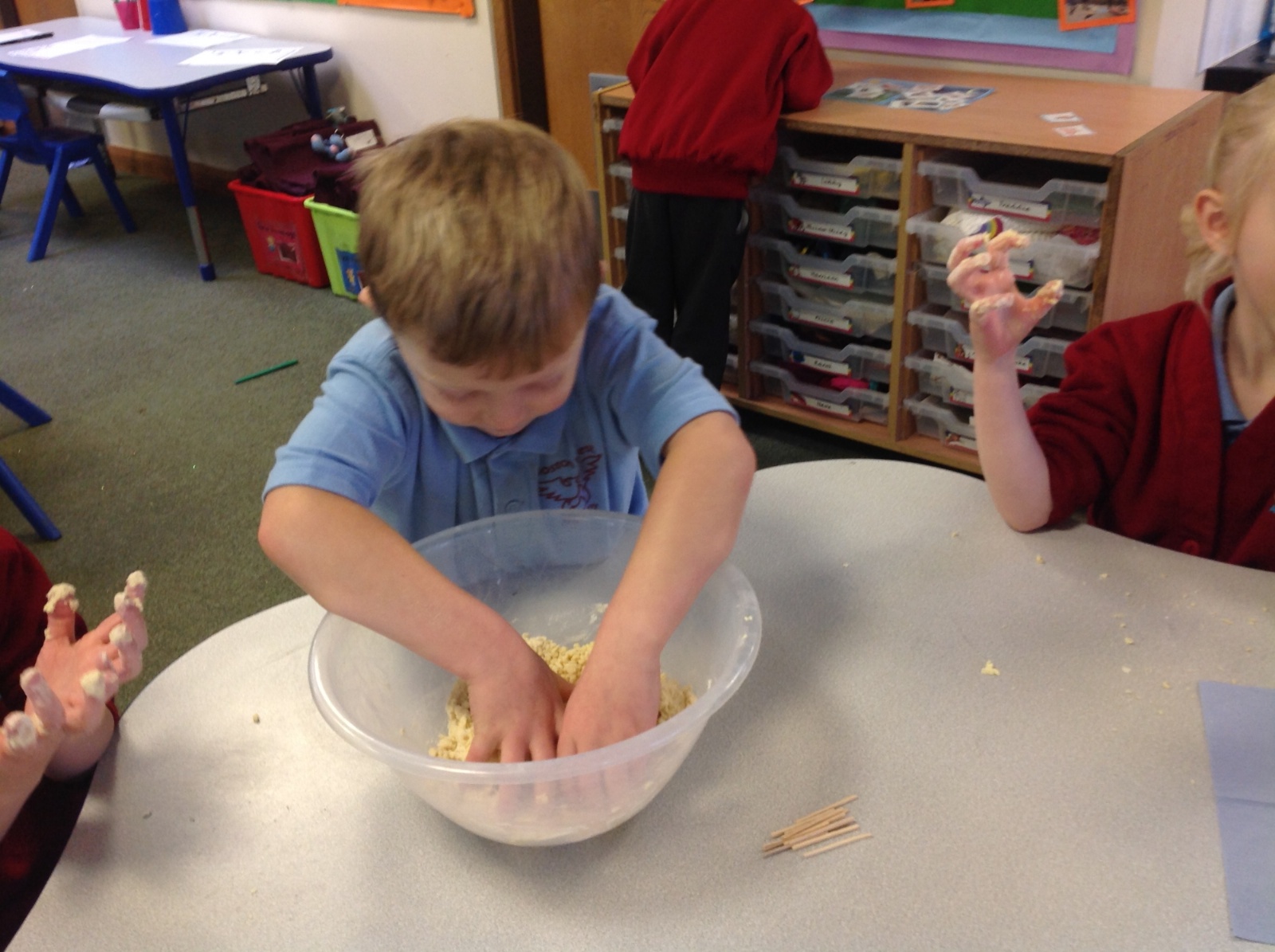 As part of our topic about jungle animals this week, we made some delicious snake biscuits using three ingredients: flour, sugar and butter. We had lots of fun mixing them together and shaping the dough into a snake shape, but best of all we enjoyed eating them!