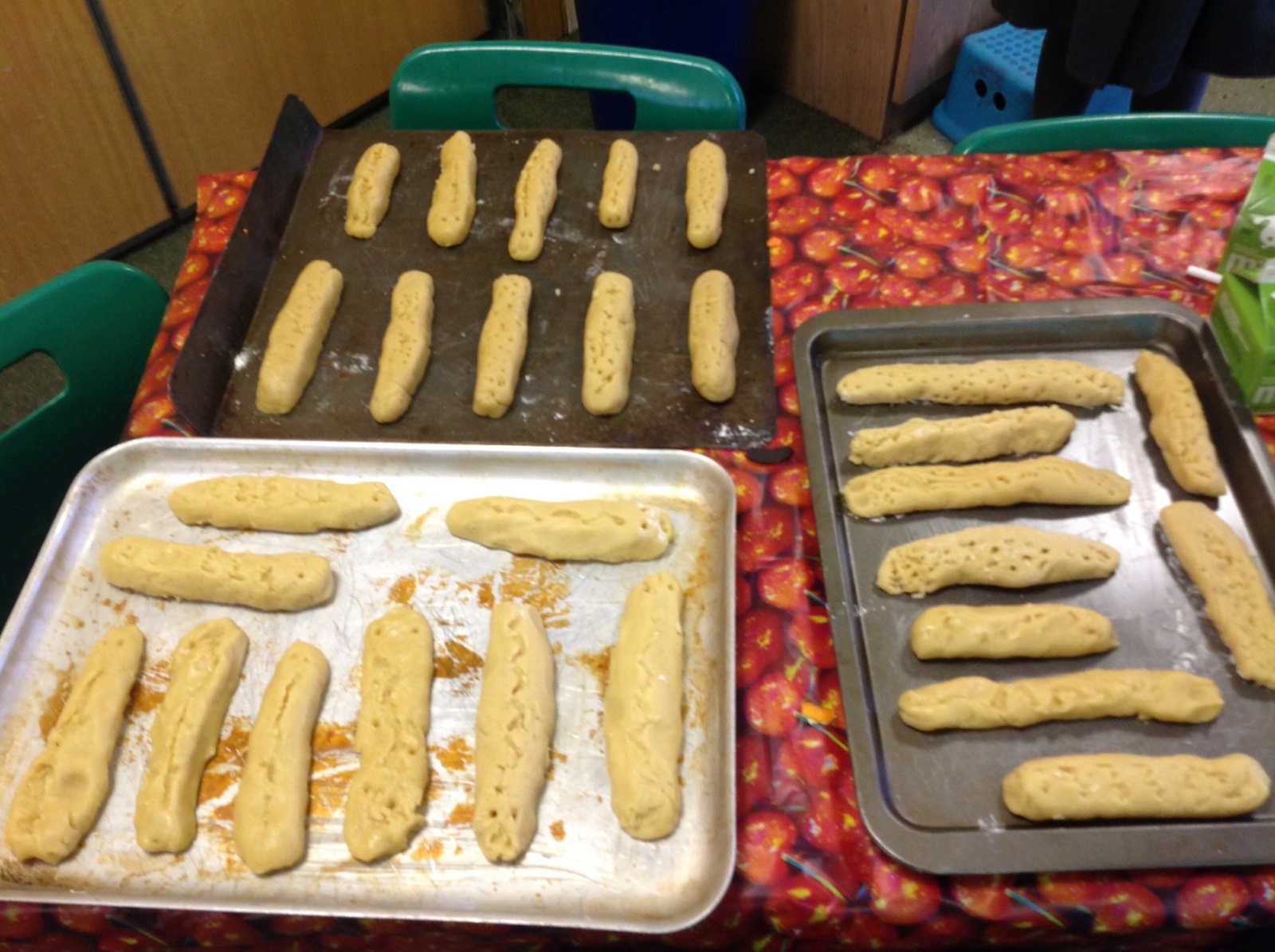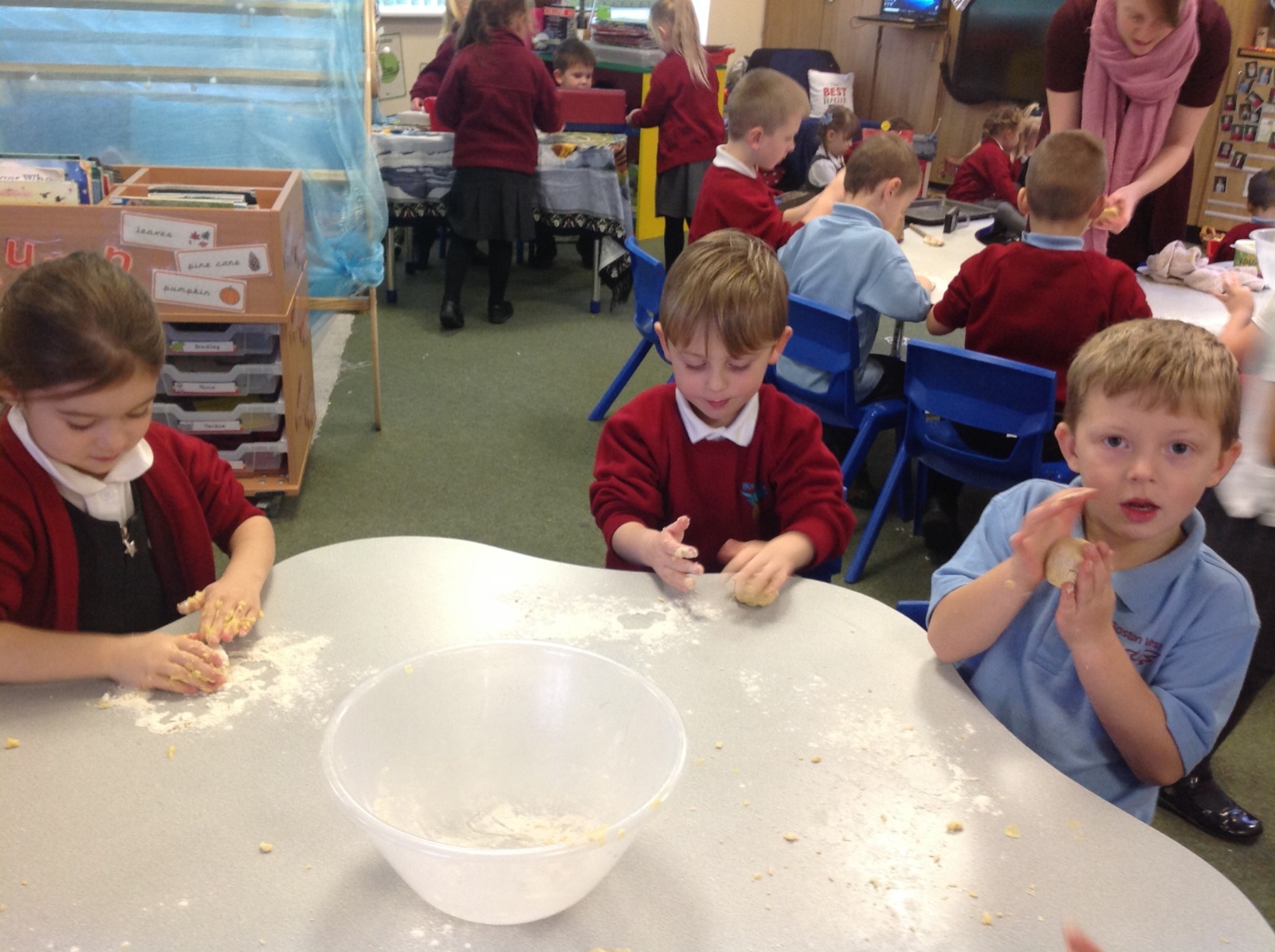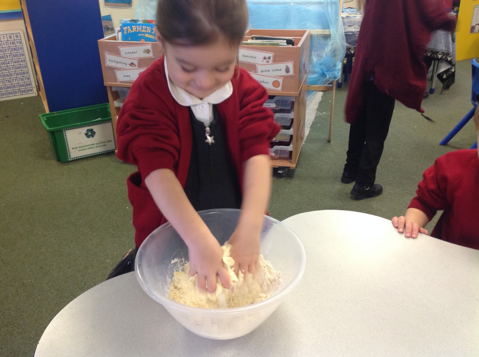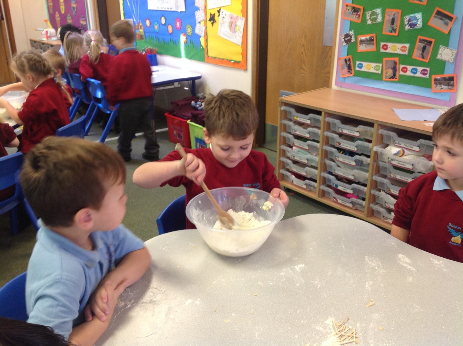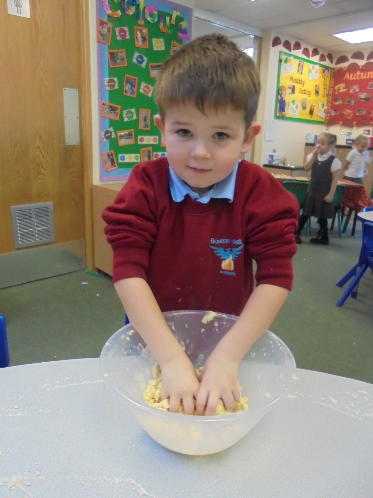 As part of our topic about jungle animals this week, we made some delicious snake biscuits using three ingredients: flour, sugar and butter. We had lots of fun mixing them together and shaping the dough into a snake shape, but best of all we enjoyed eating them!