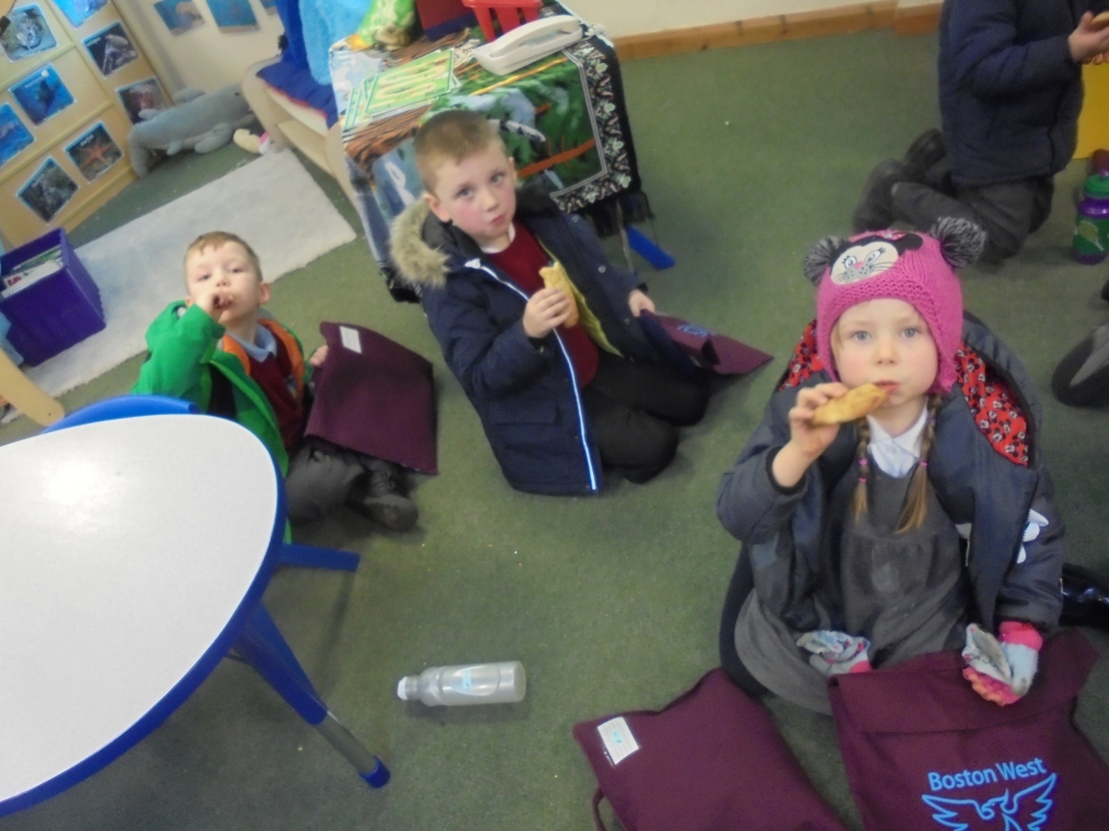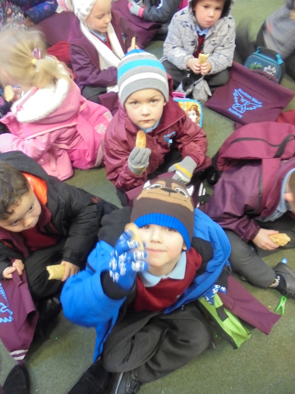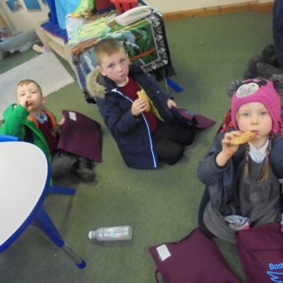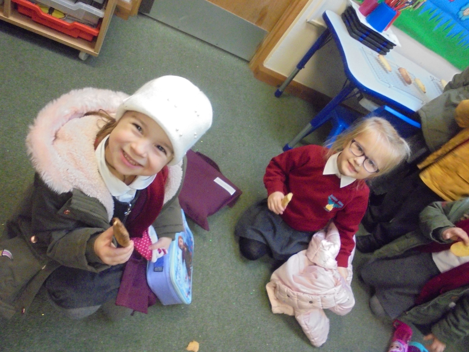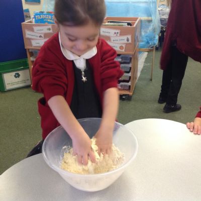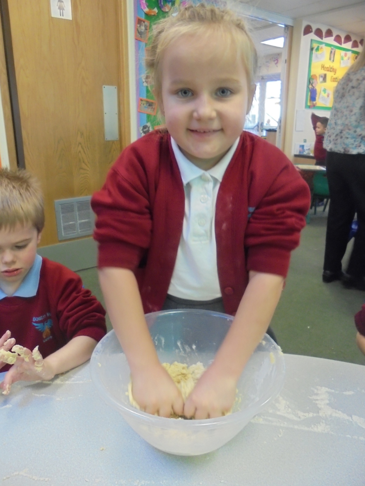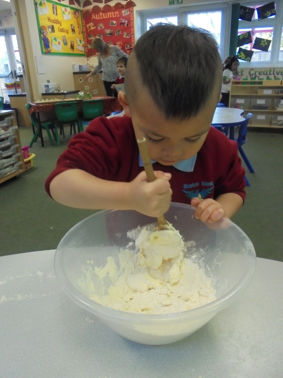 As part of our topic about jungle animals this week, we made some delicious snake biscuits using three ingredients: flour, sugar and butter. We had lots of fun mixing them together and shaping the dough into a snake shape, but best of all we enjoyed eating them!
