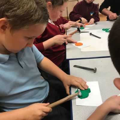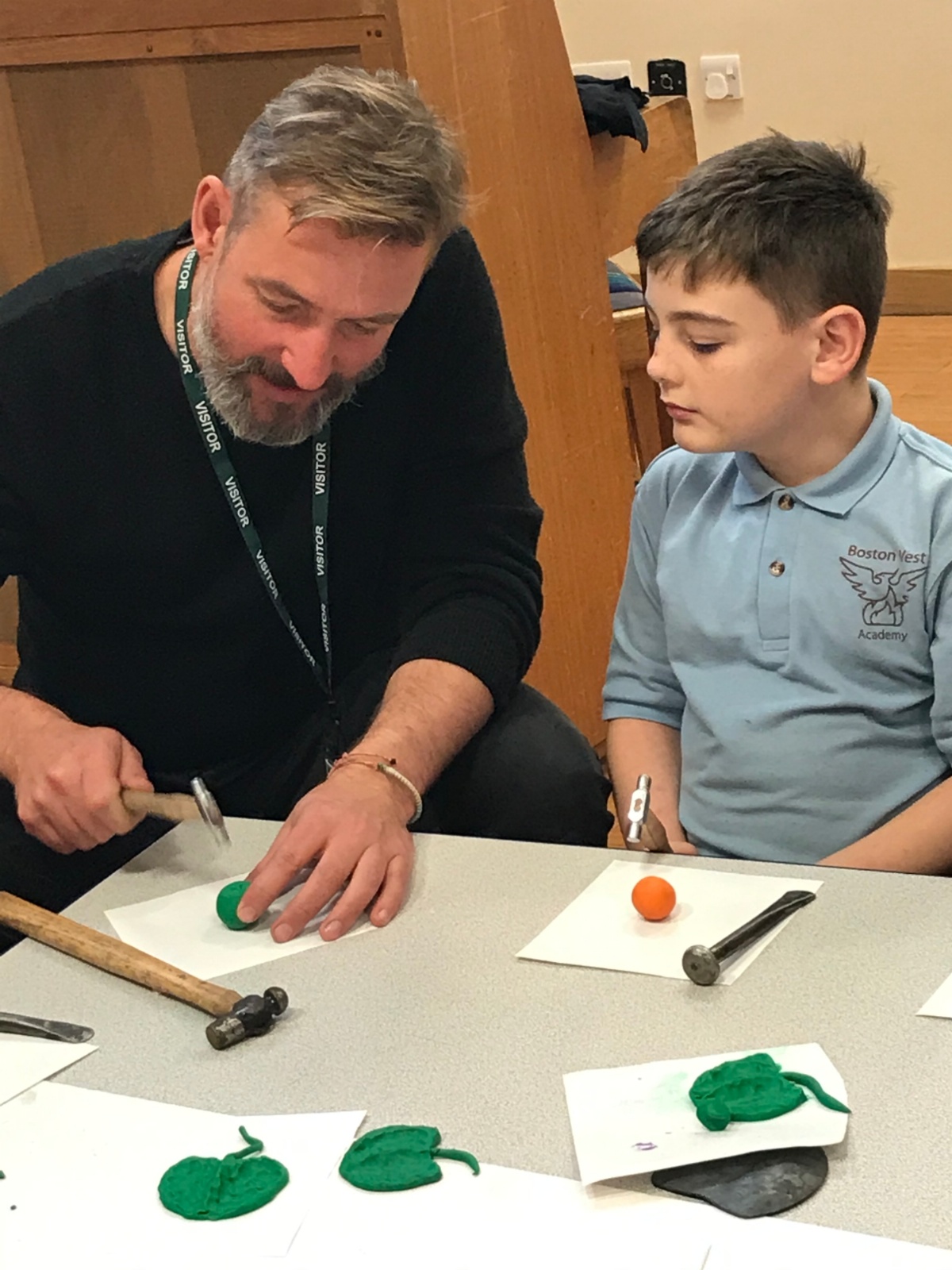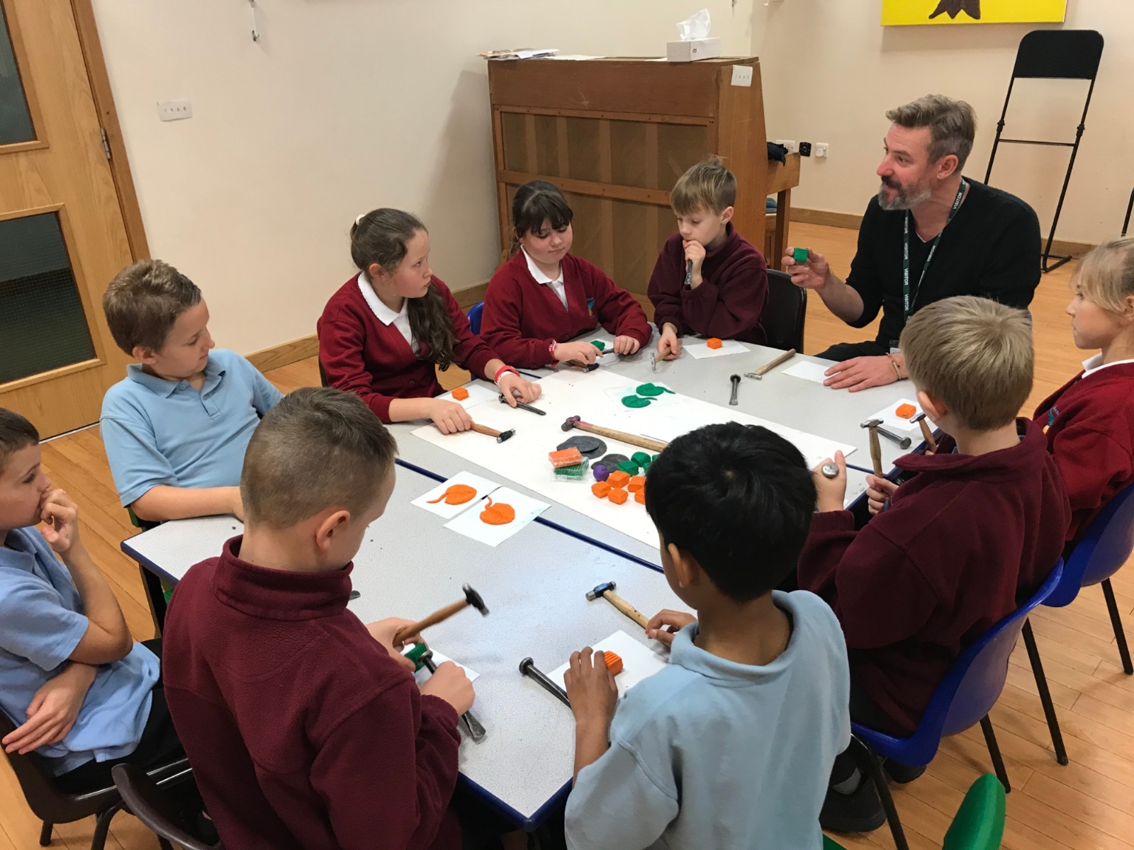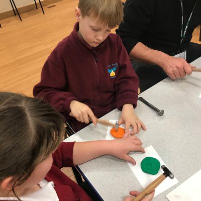 Two blacksmith artists, who are involved in a local project, came into school to talk about their work and delivered workshops for the year 5 children.