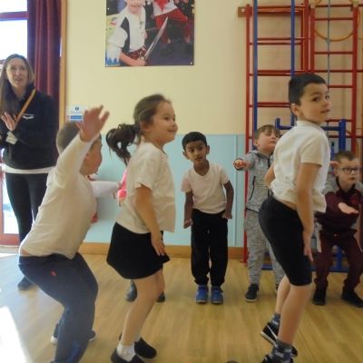 This week we were lucky enough to get a visit from gymnast Steve Frew, who has represented Scotland and Great Britain at various international gymnastics competitions. The children thoroughly enjoyed taking part in a fitness session, practising lots of different exercises!