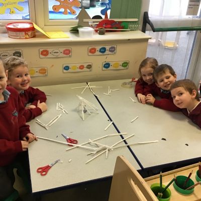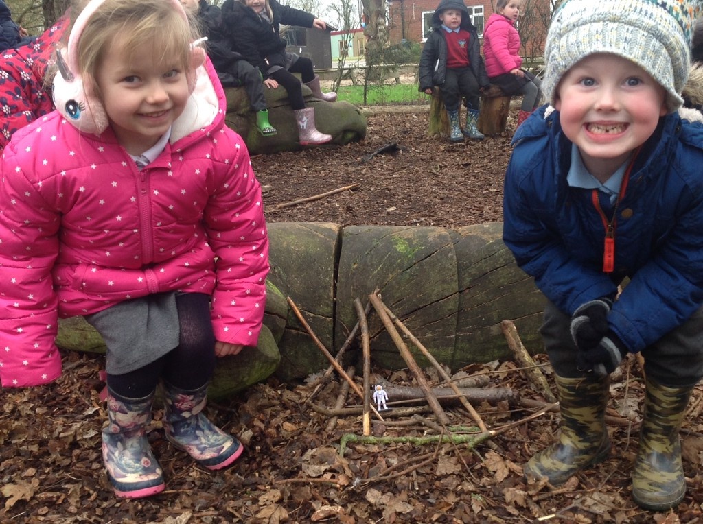 We had a great time working in groups to create a shelter for an astronaut stranded on the moon! We started off using various craft materials and then explored our forest area to create natural shelters using  leaves, sticks, mud and bark.
