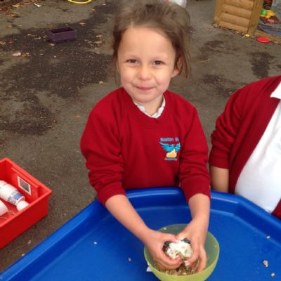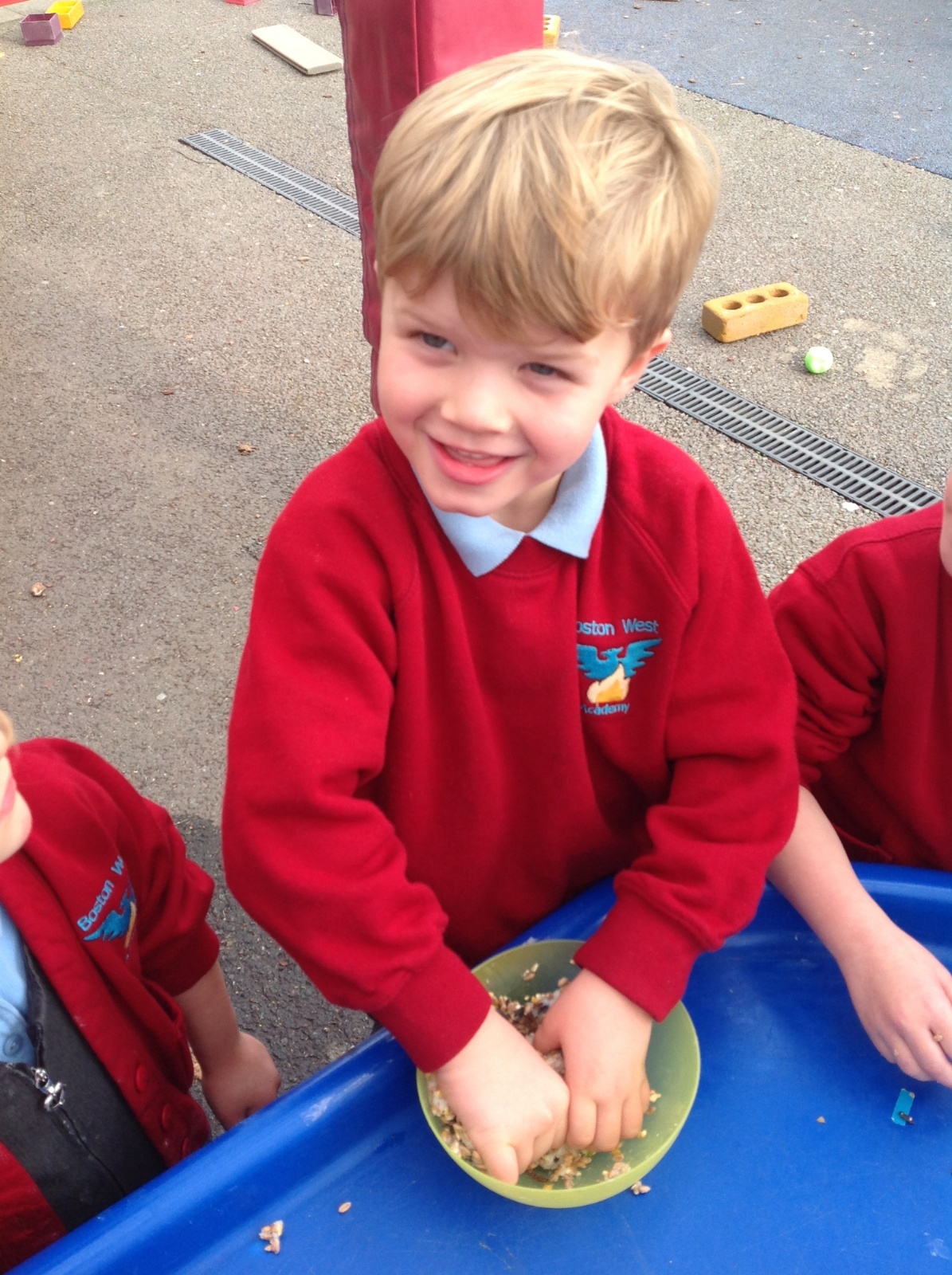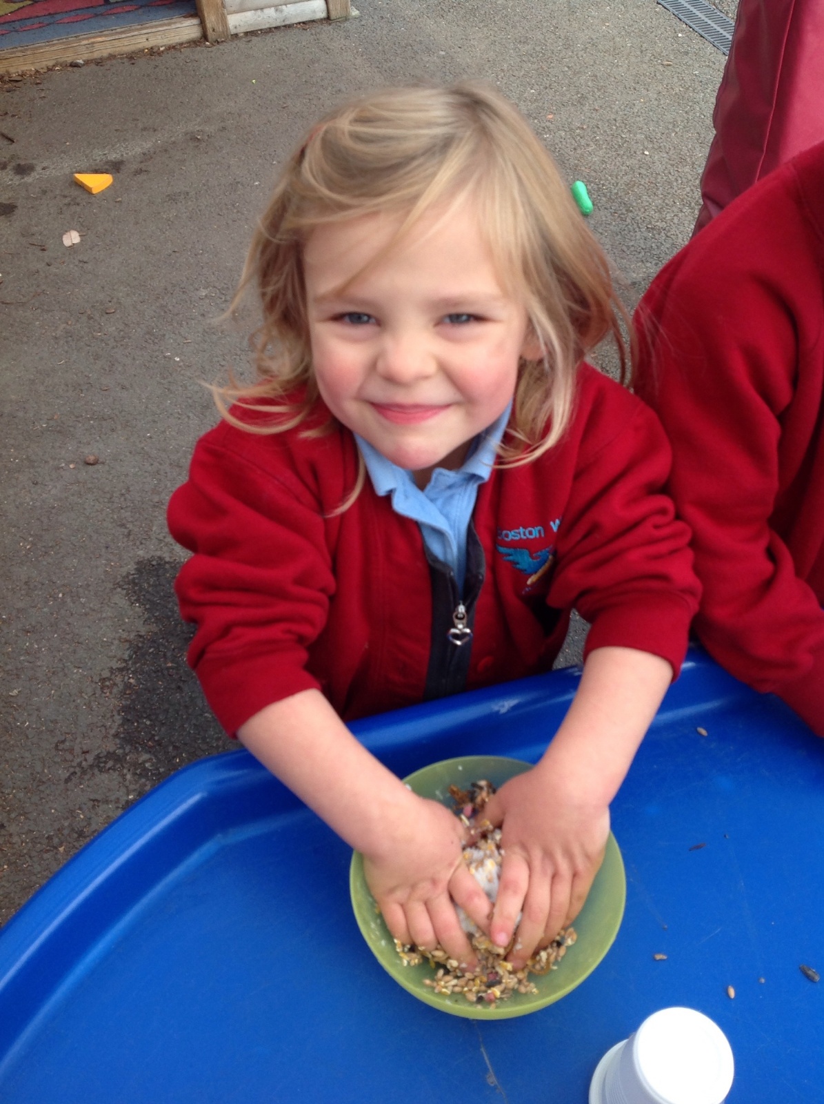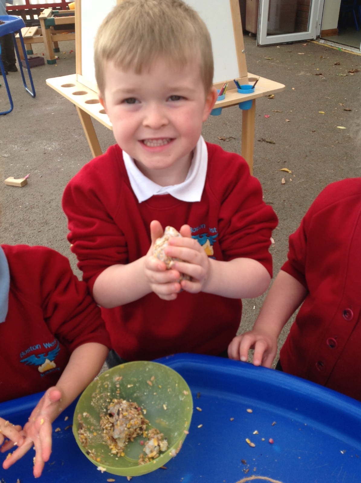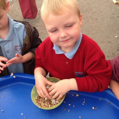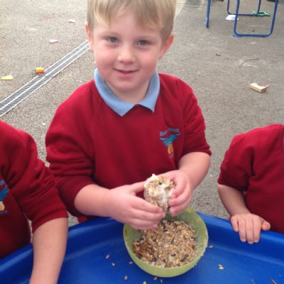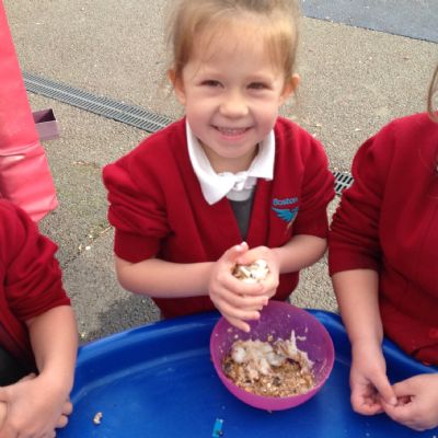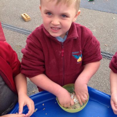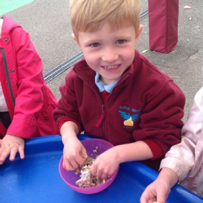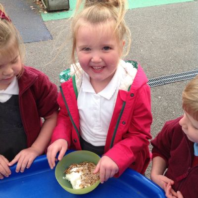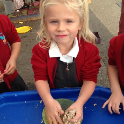 The children enjoyed learning about wildlife in the Autumn time and had great fun making bird feeders, mixing lard with bird seed and dried mealworms.