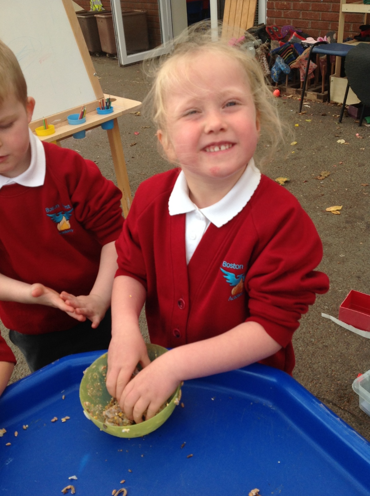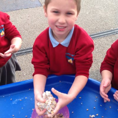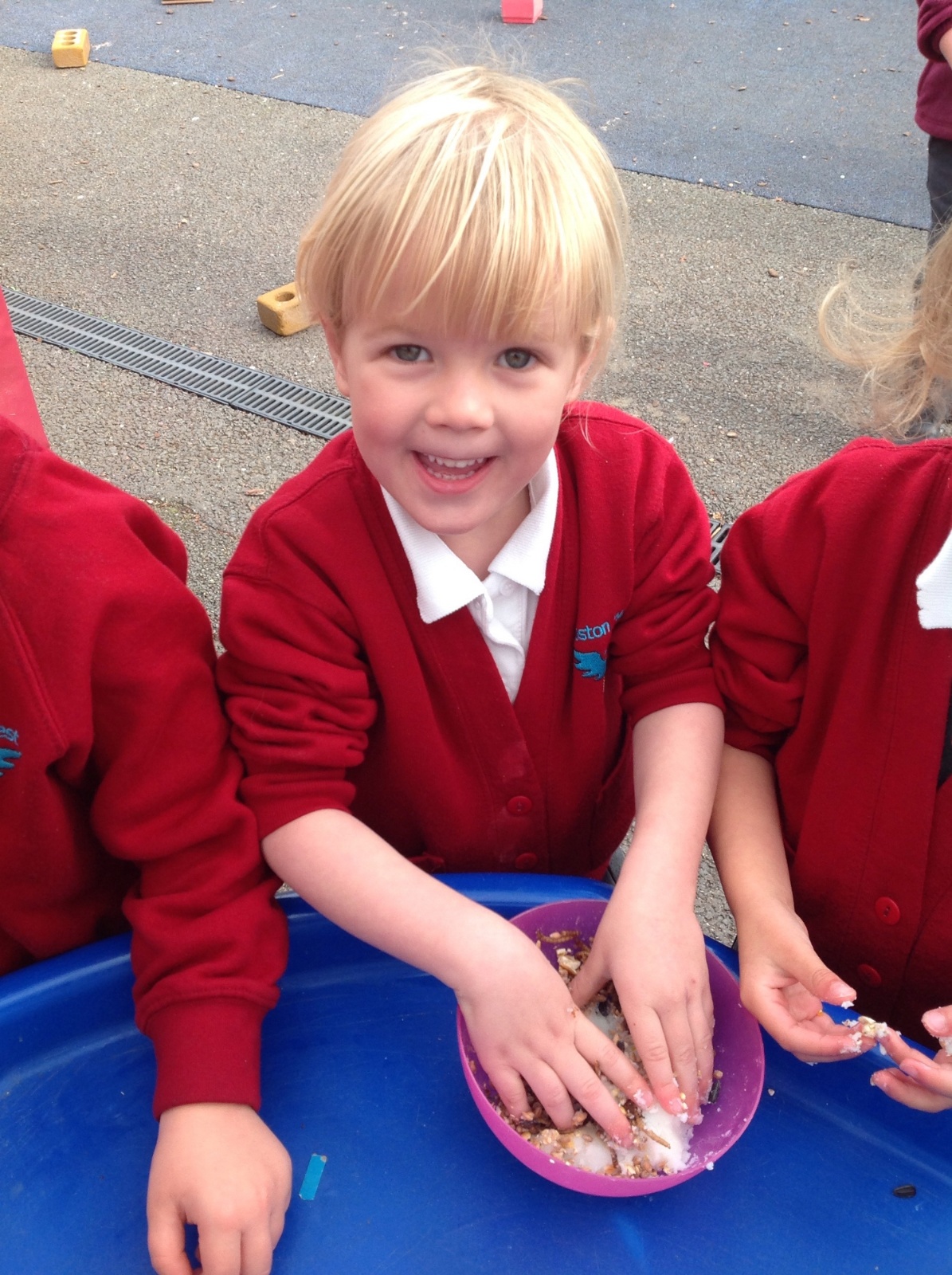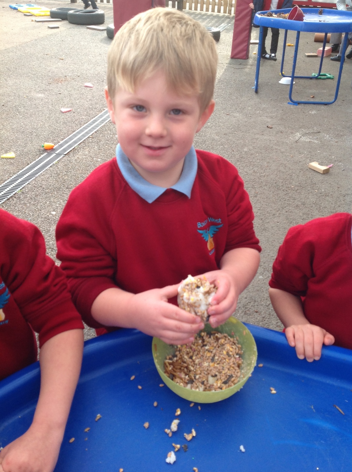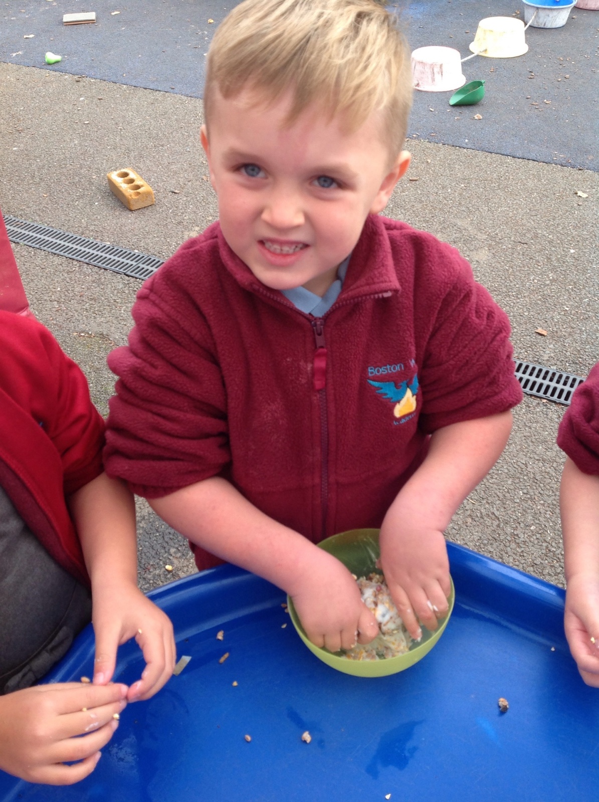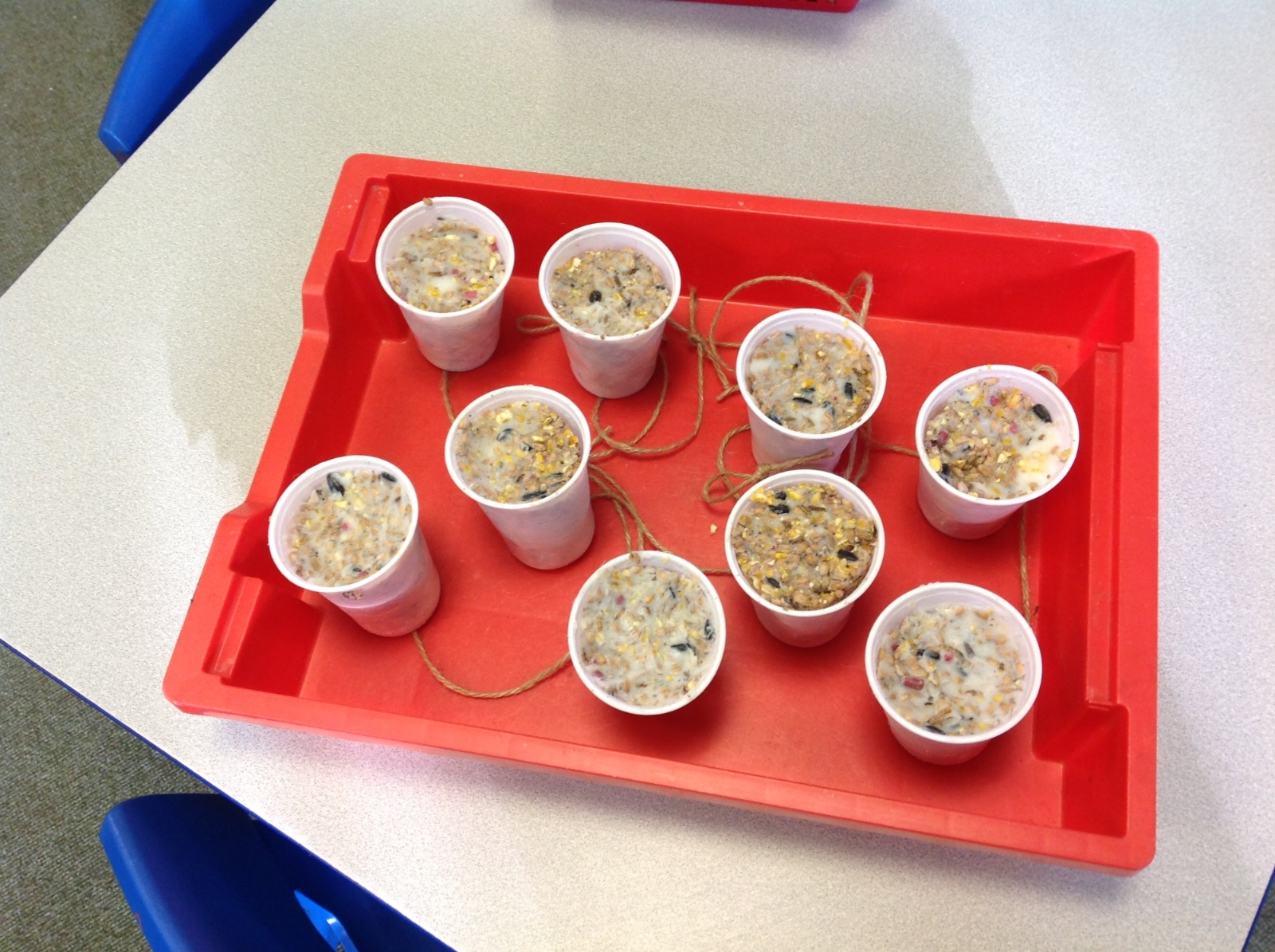 The children enjoyed learning about wildlife in the Autumn time and had great fun making bird feeders, mixing lard with bird seed and dried mealworms.