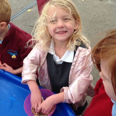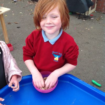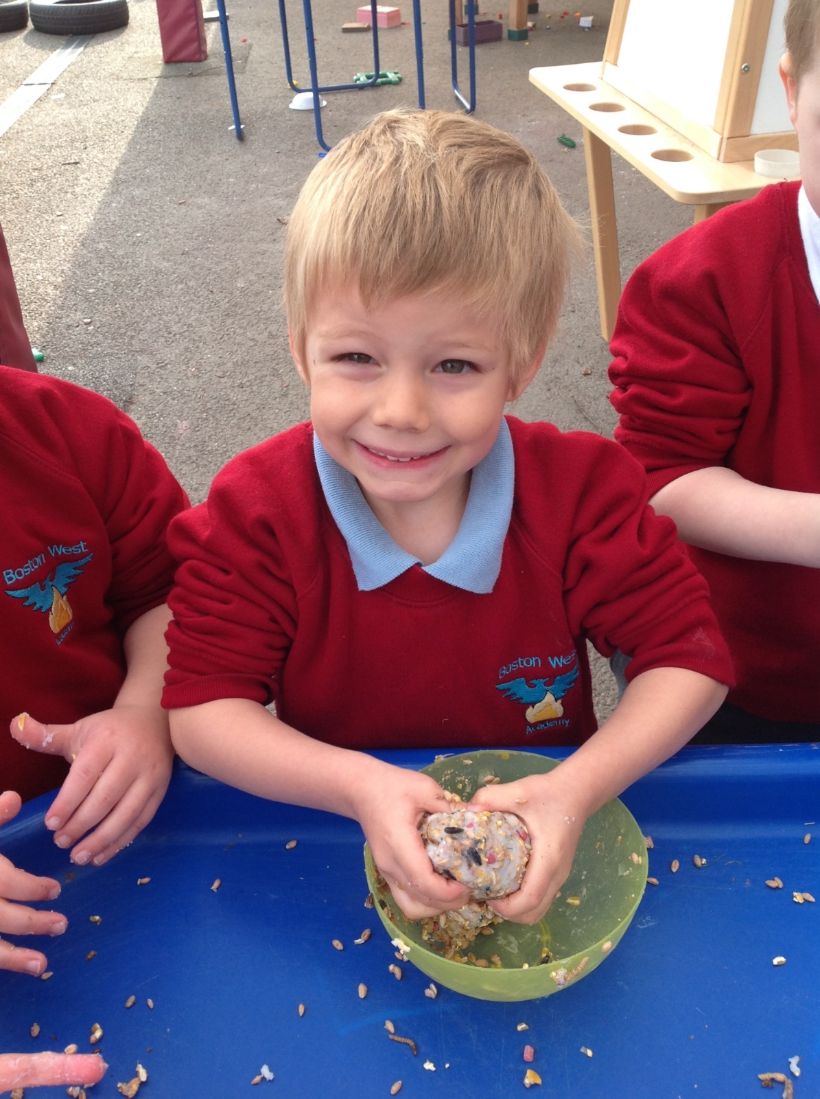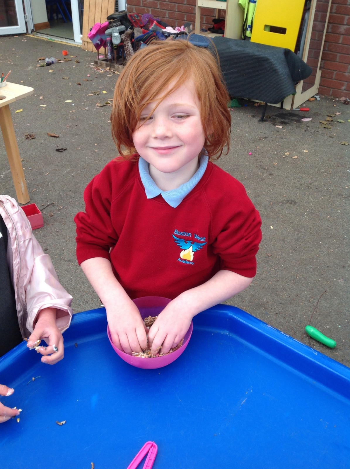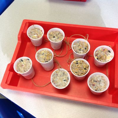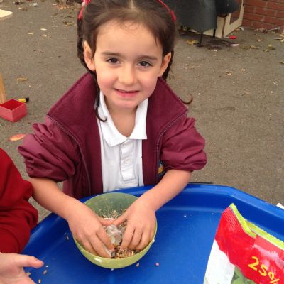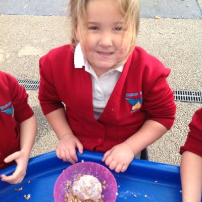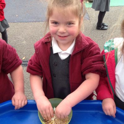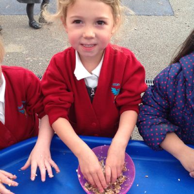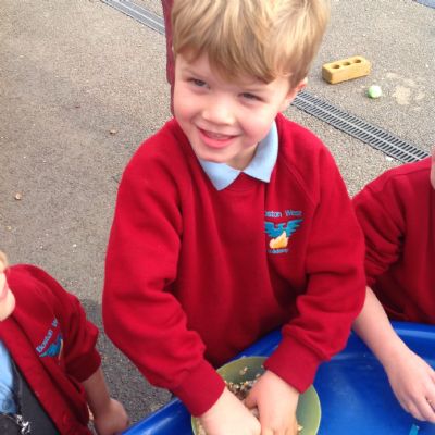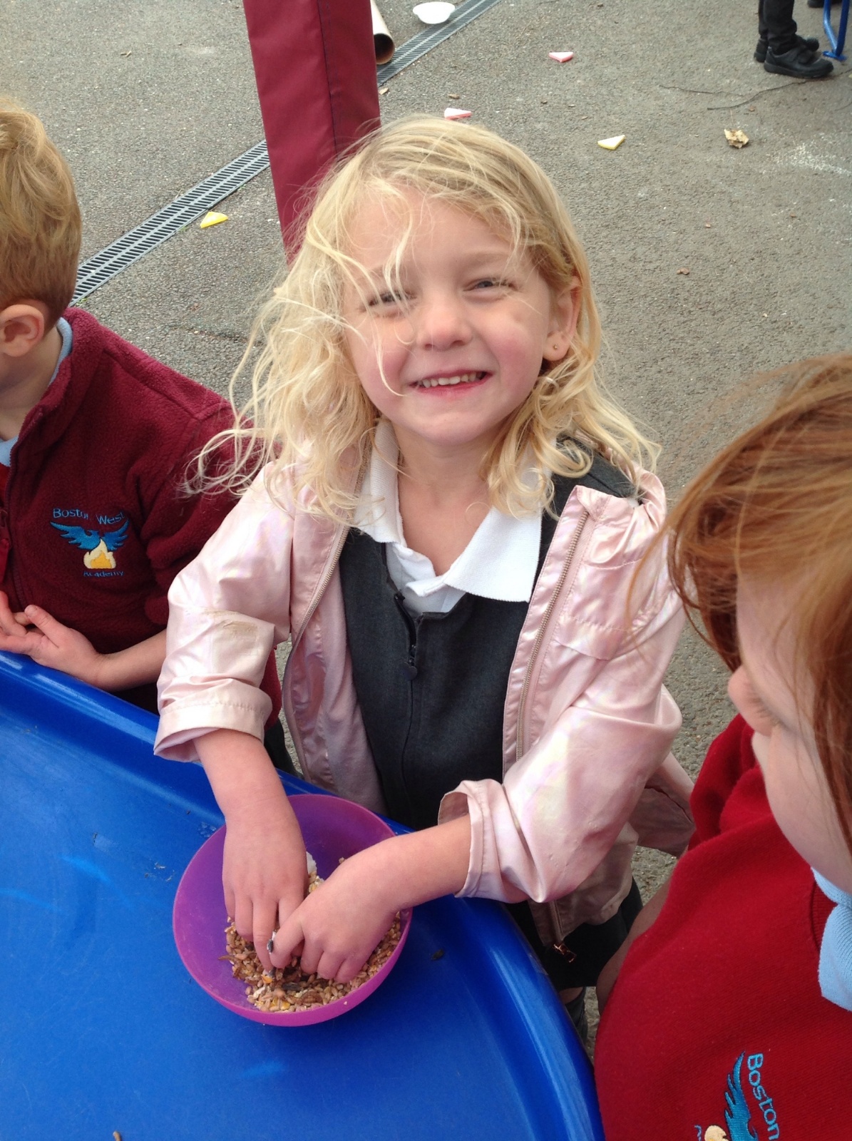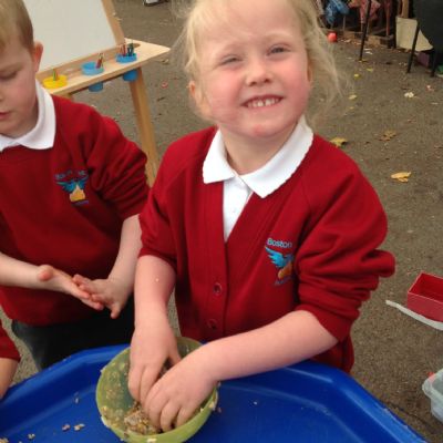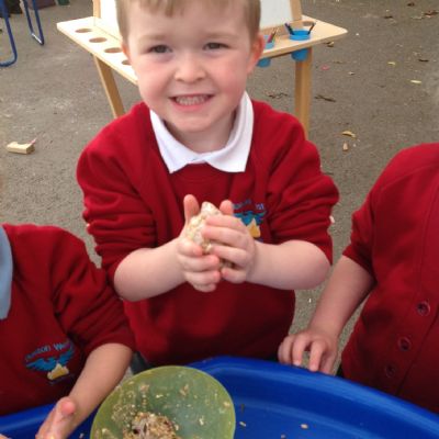 The children enjoyed learning about wildlife in the Autumn time and had great fun making bird feeders, mixing lard with bird seed and dried mealworms.
