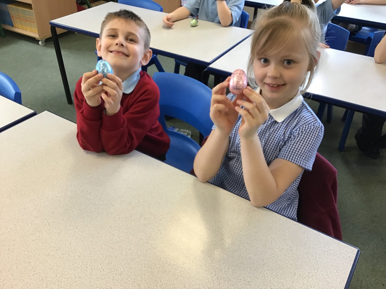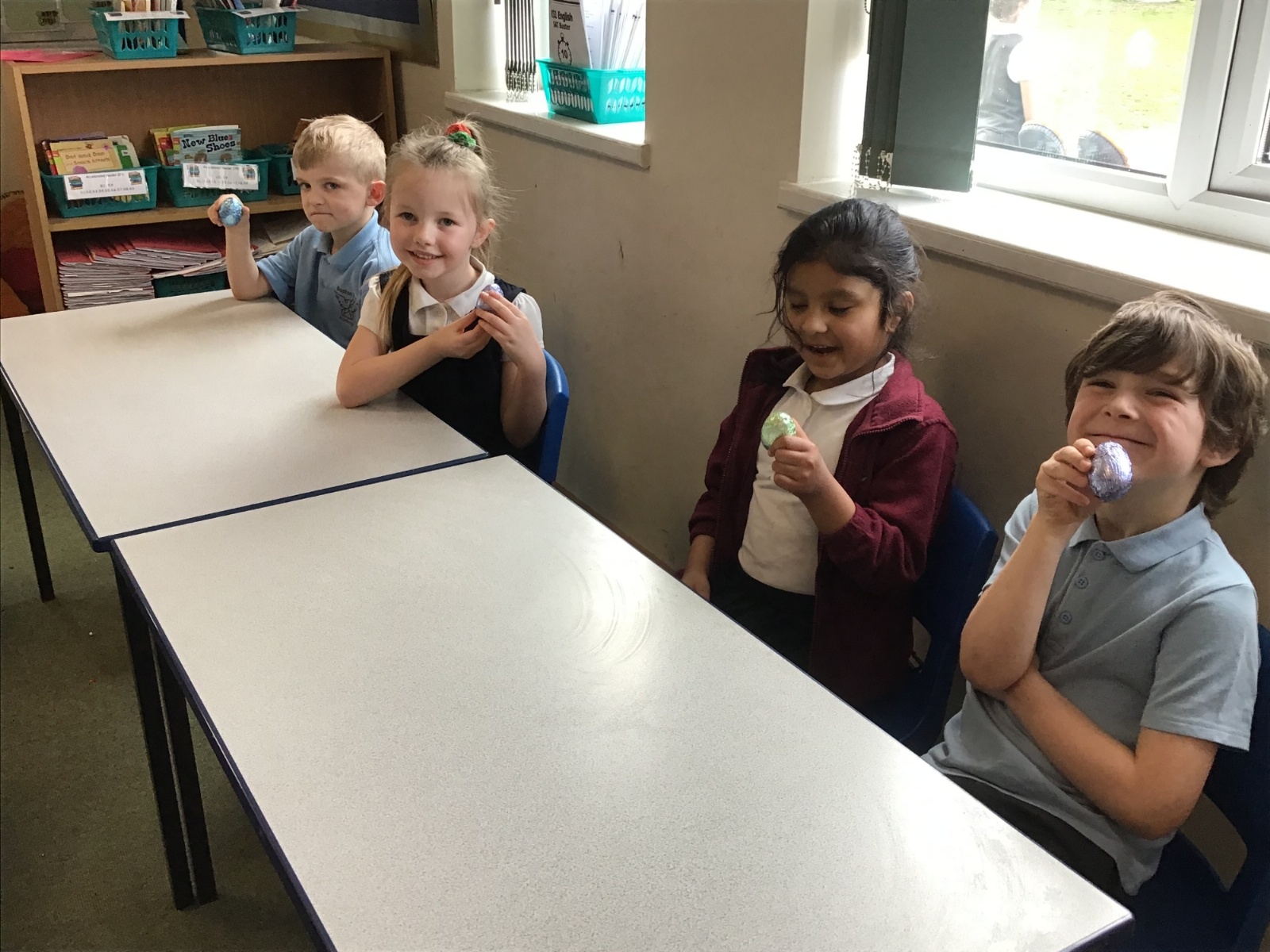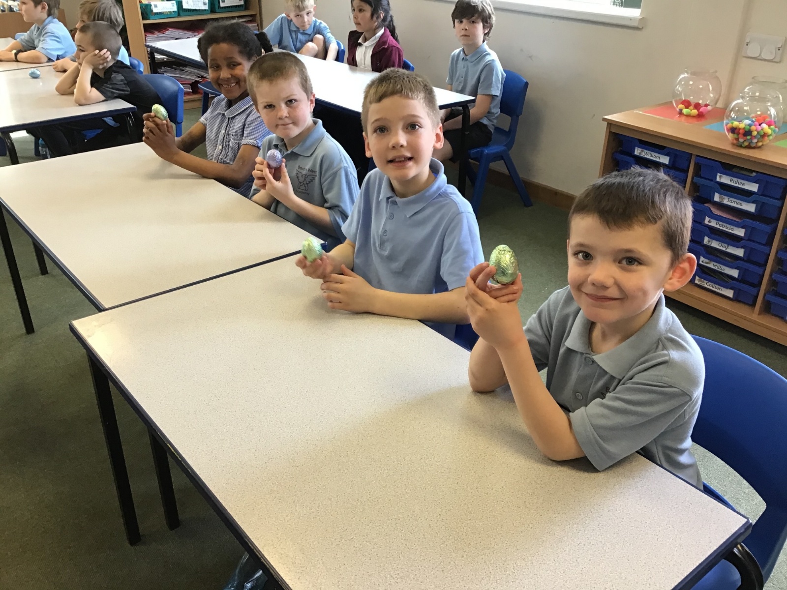 Today Miss Moore's Class enjoyed taking part in an Easter maths trail. The children first had to solve some maths problems before 'cracking' the code. When they did this they knew where to find their eggs! We all enjoyed our eggs this afternoon together.