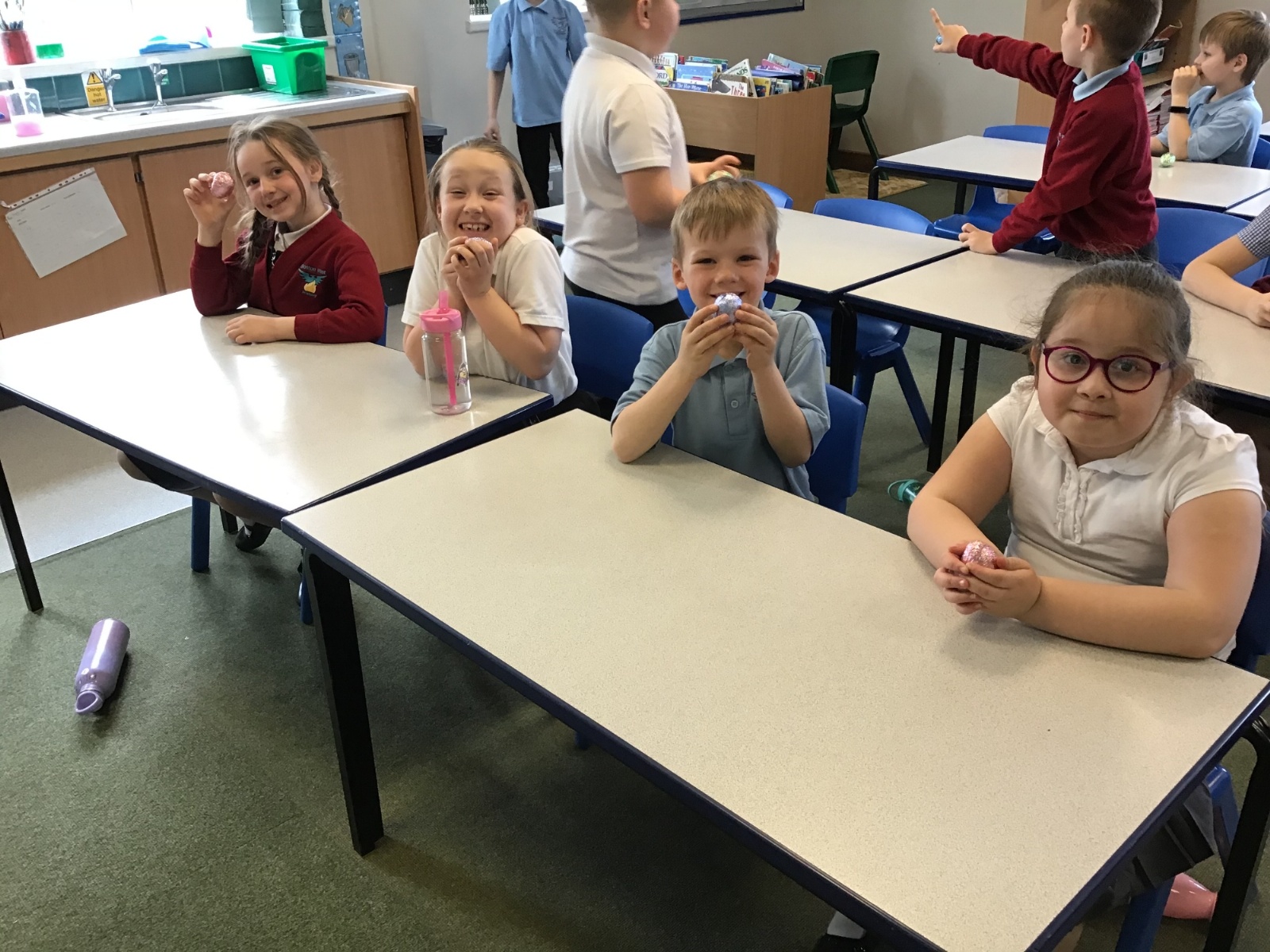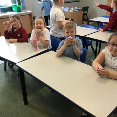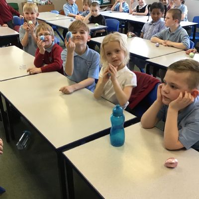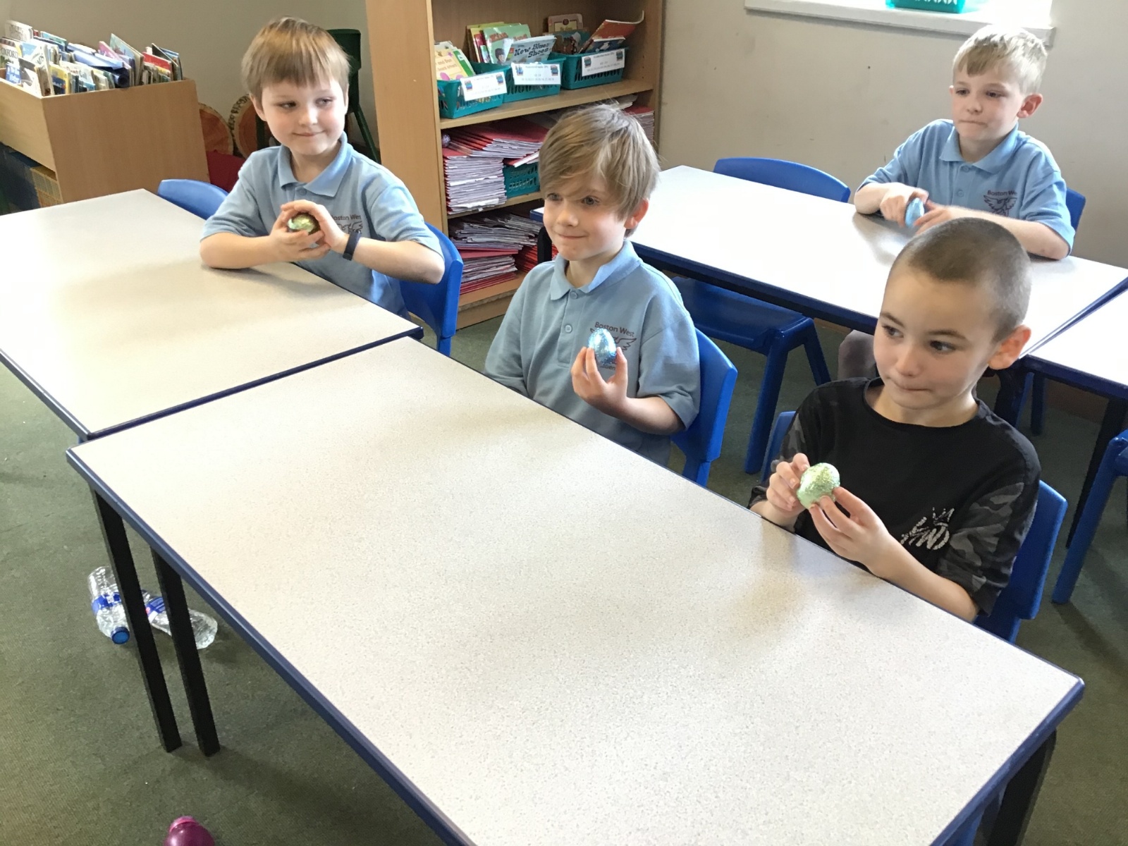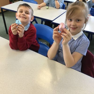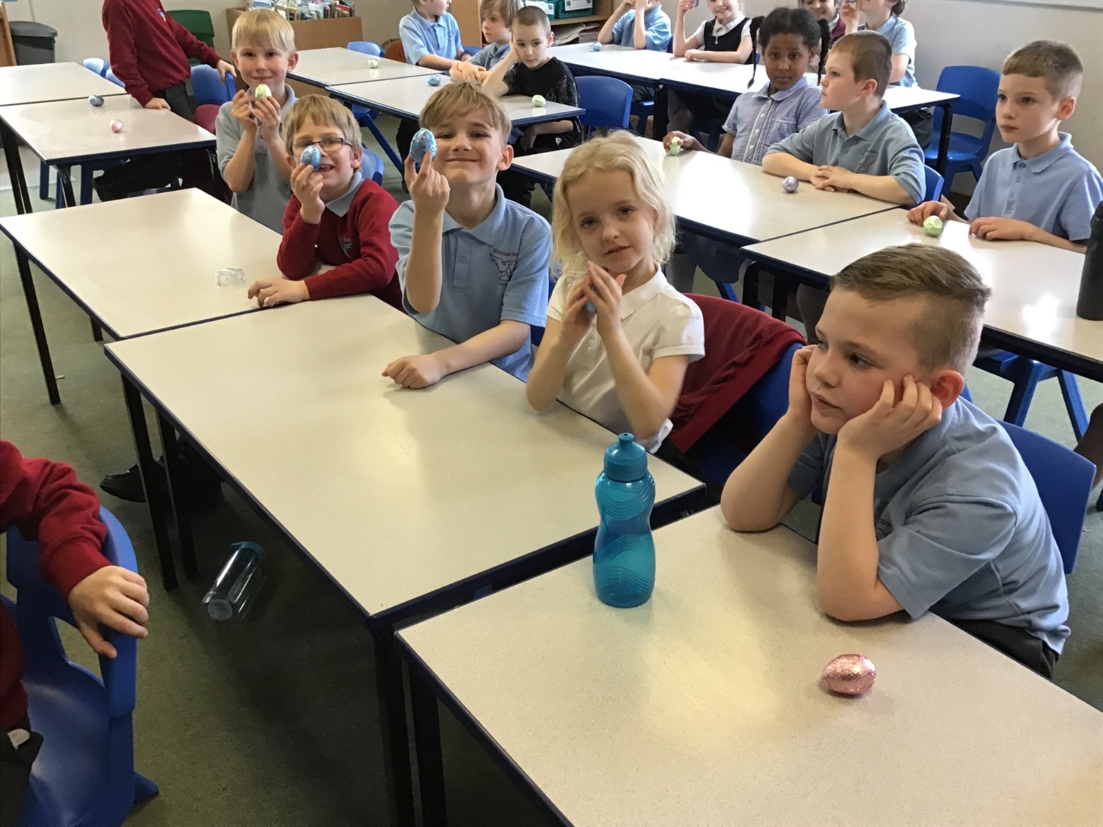 Today Miss Moore's Class enjoyed taking part in an Easter maths trail. The children first had to solve some maths problems before 'cracking' the code. When they did this they knew where to find their eggs! We all enjoyed our eggs this afternoon together.