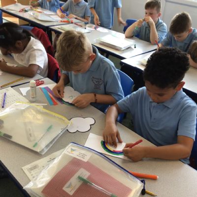 Miss Moore's Class have thoroughly enjoyed being reunited and spent their first day catching up with each other, talking about emotions and making some amazing all about me rainbows for the classroom!