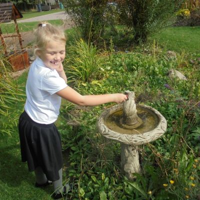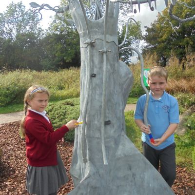 We have started learning about magnets and went outside to explore the Garden of Inspiration looking for magnetic objects.