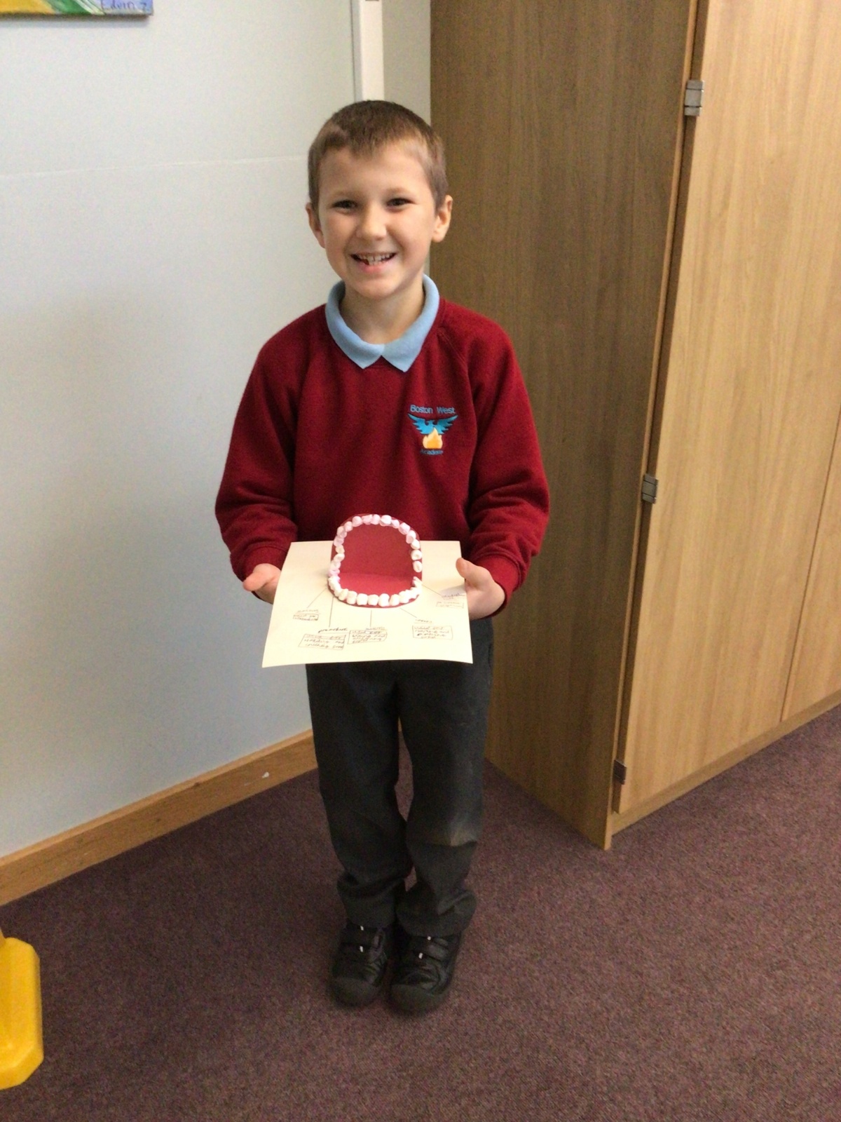 On Friday 12th November, the children made models of human teeth using marshmallows. They then modelled the teeth and decorated their poster with the names of human teeth and their functions using the knowledge they have gained from their science lessons.