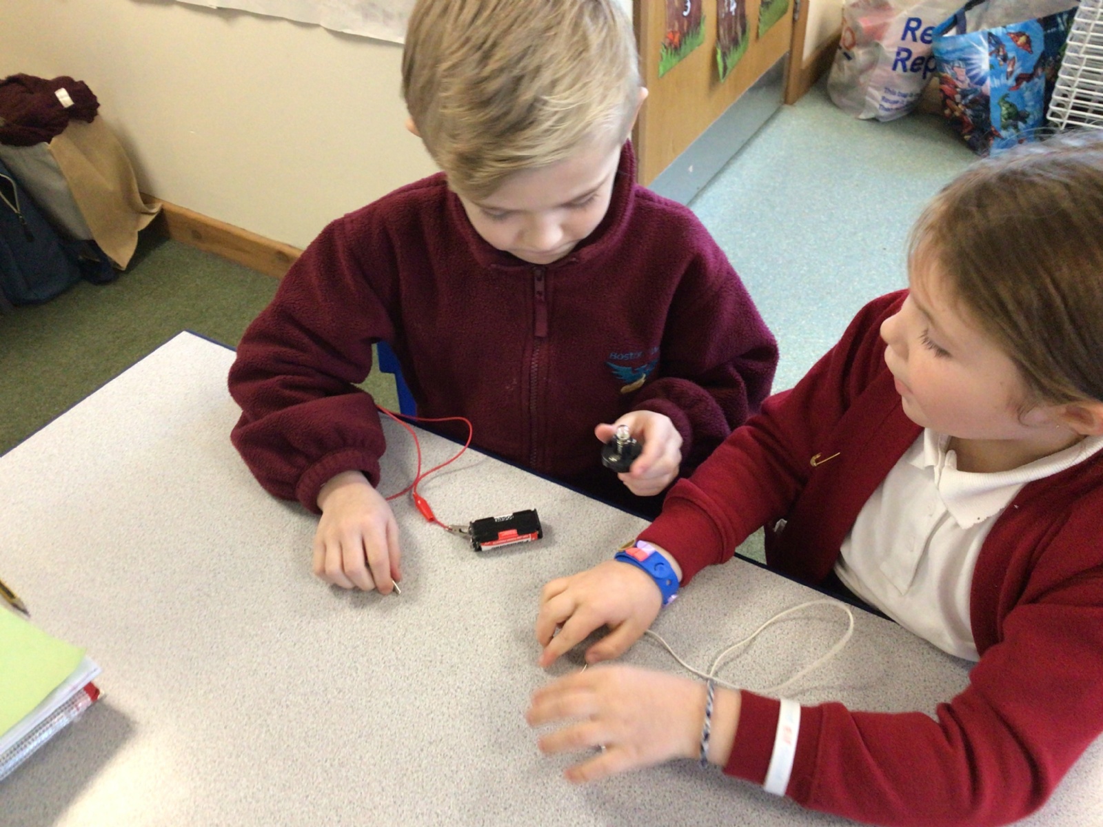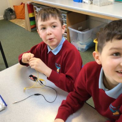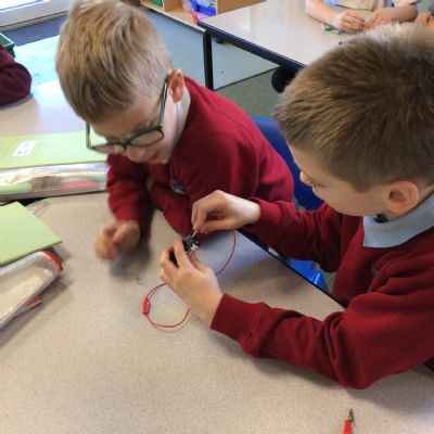 Miss Moore's class have really been enjoying their science topic this term about electricity. Today for the first time the children were able to use wires, batteries and bulbs to create a simple circuit. First they had to investigate without any input how to do this and then find out what would happen if the circuits had one or more bulb or battery. It was lots of fun!